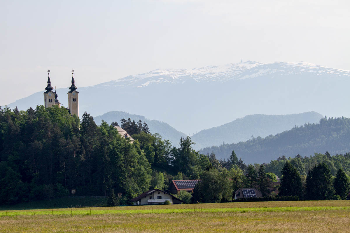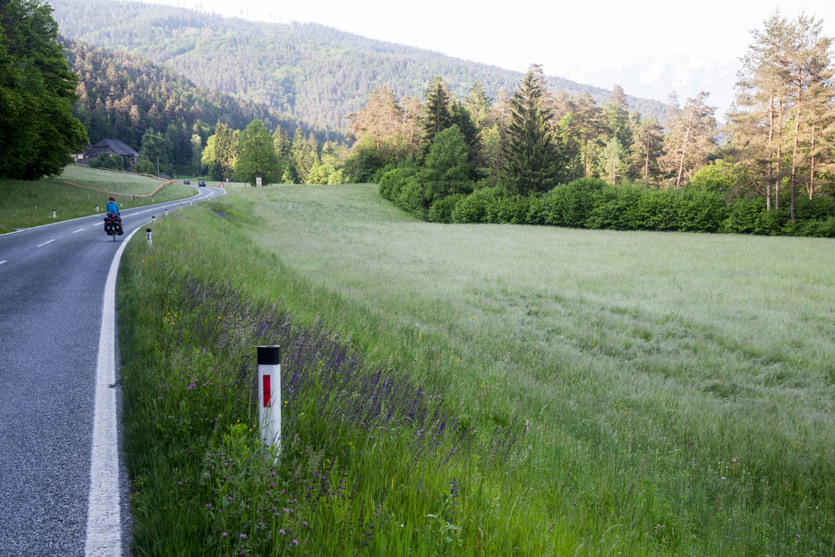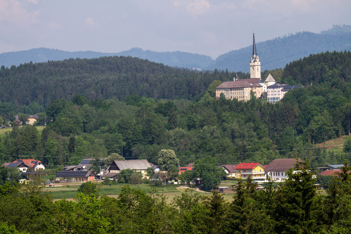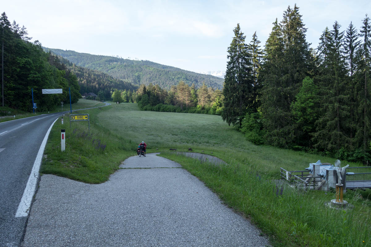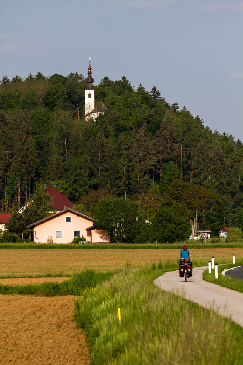 Once we reach a plateau the route we follow takes us through a couple of small towns, but no coffee to be found. Then, a downhill back down to the Drava River and a climb up on the other side. There are a couple of lakes and large stretches of forest. Mostly we follow bikepaths, sometimes short sections on roads.