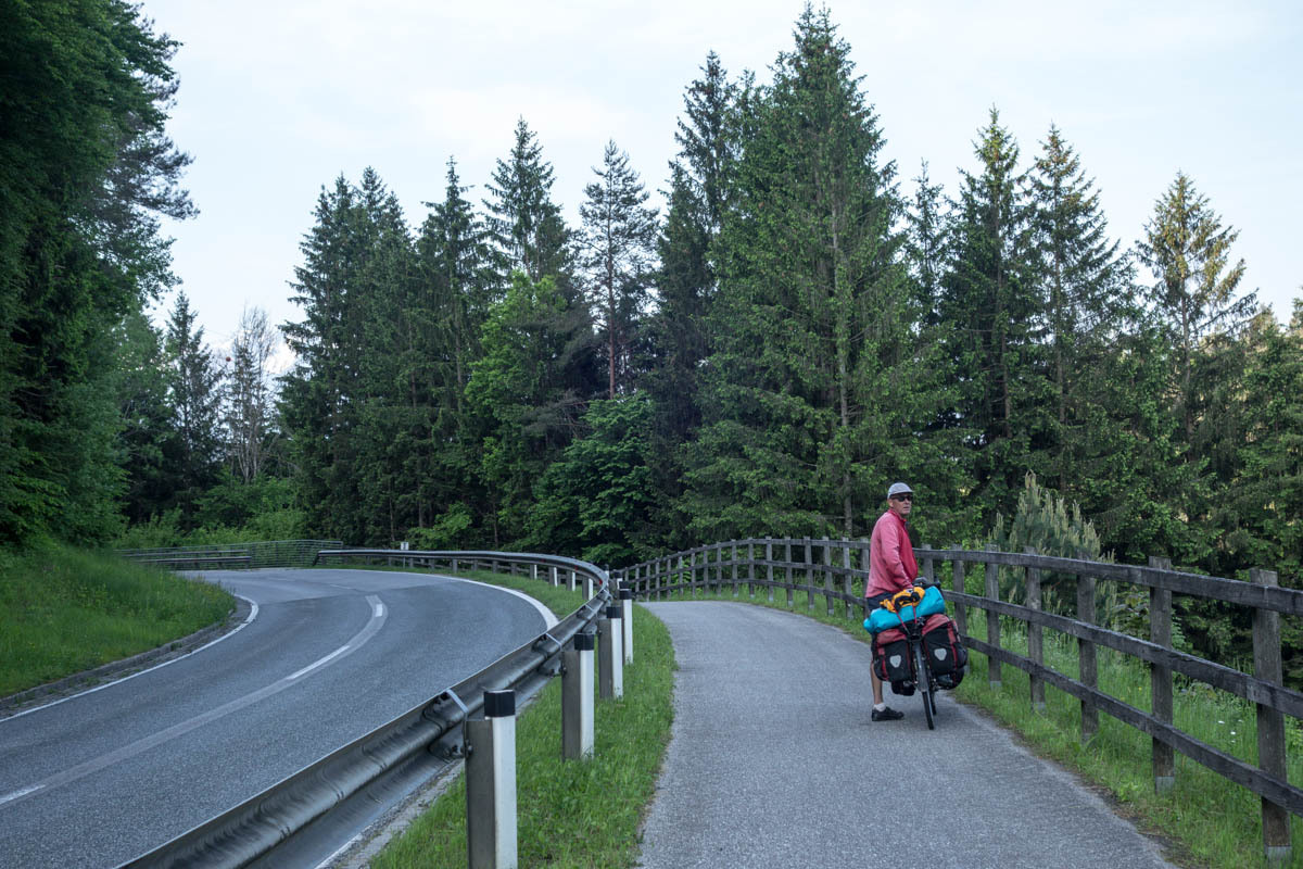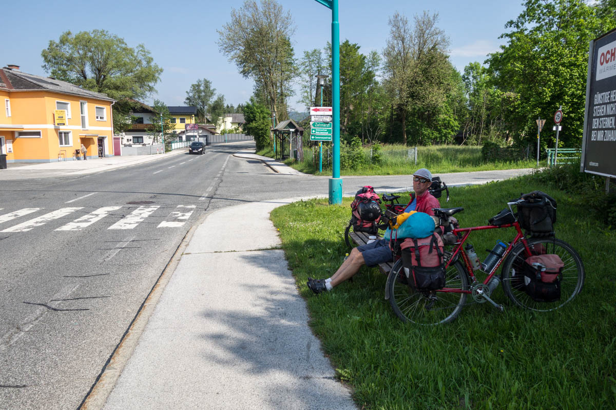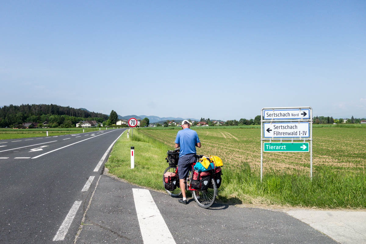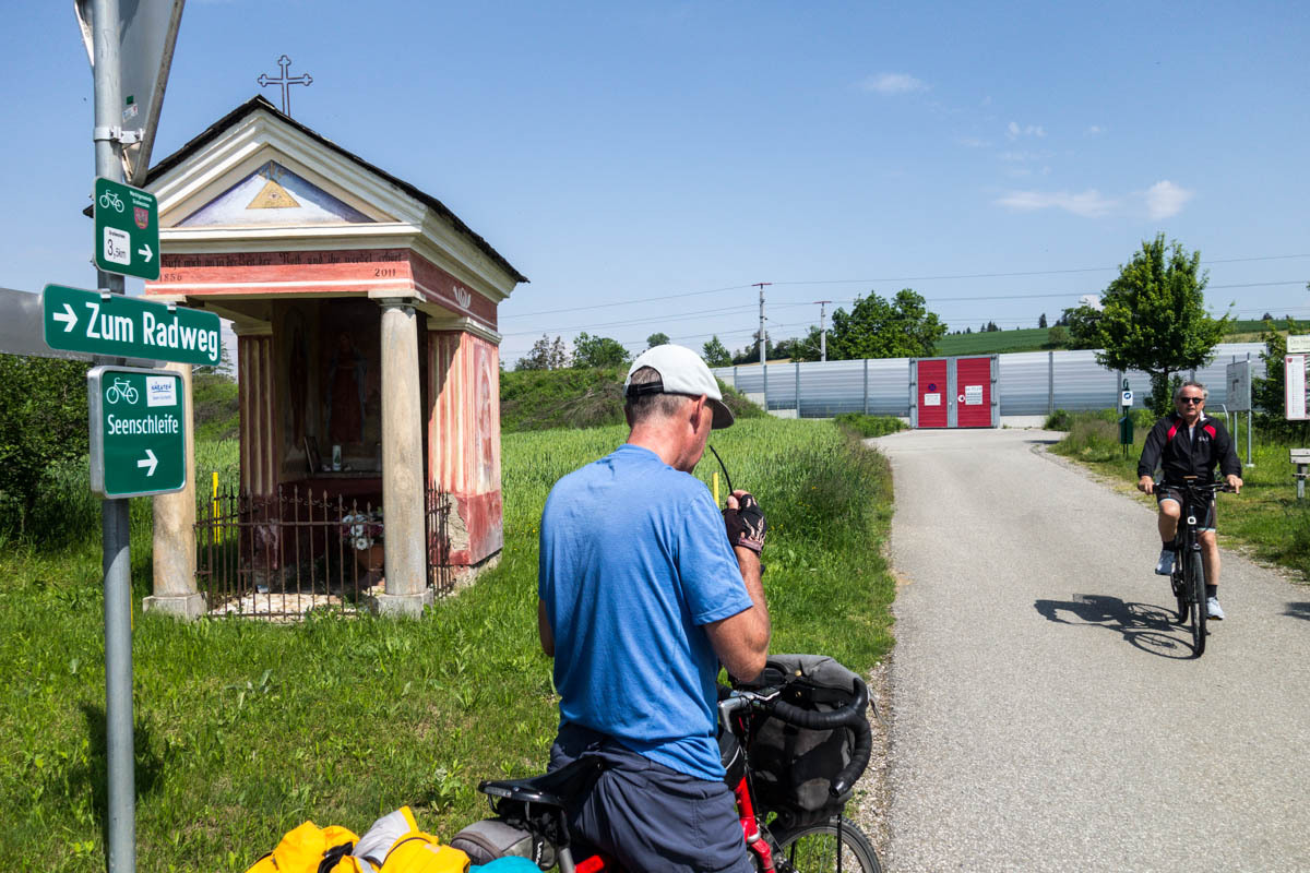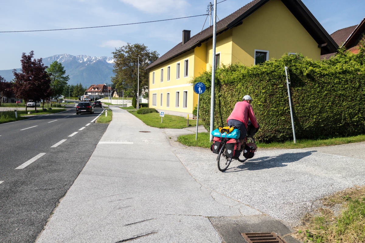 The local cyclist tells us yes this is the bike path to take to Klagenfurt