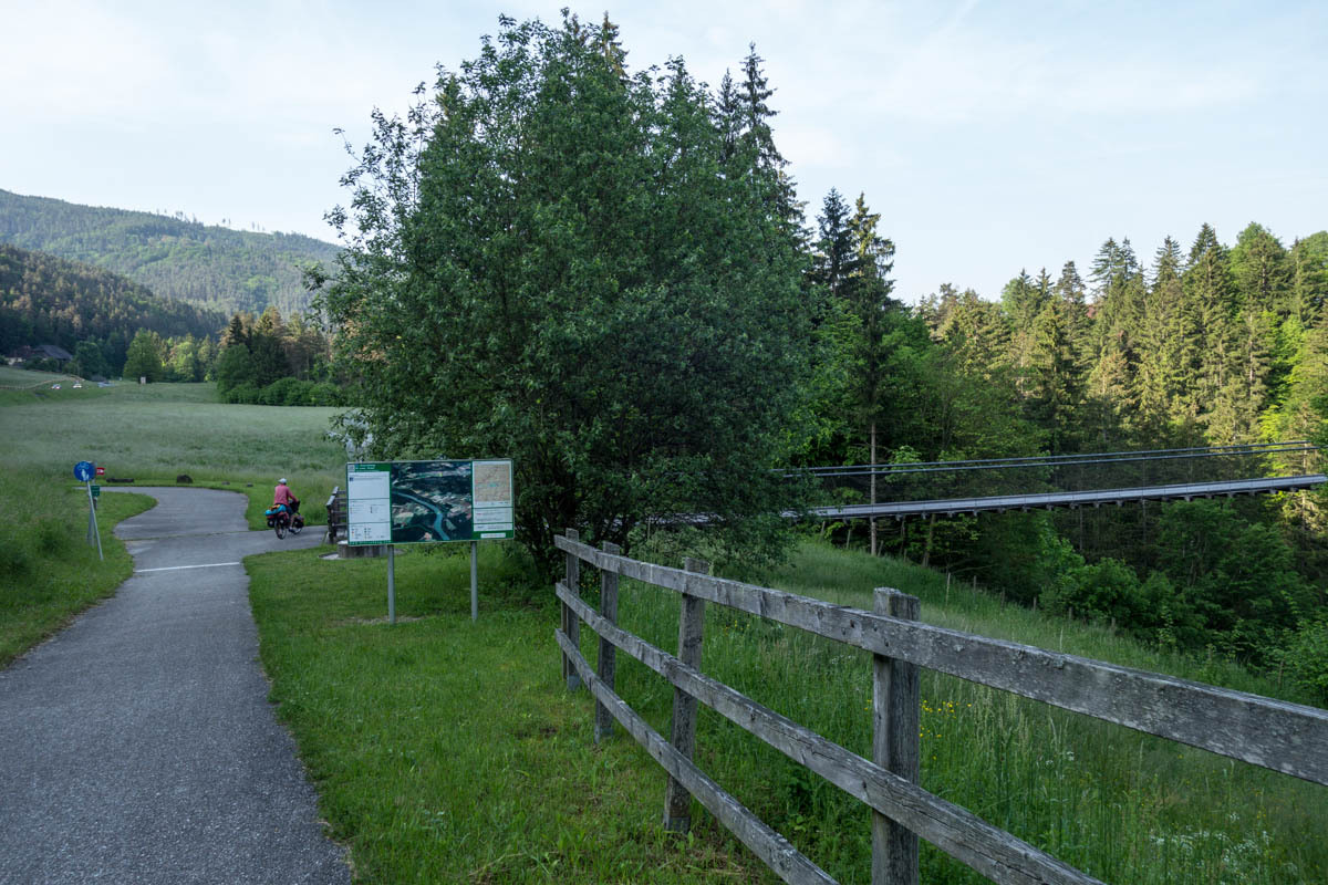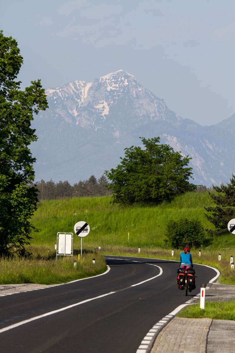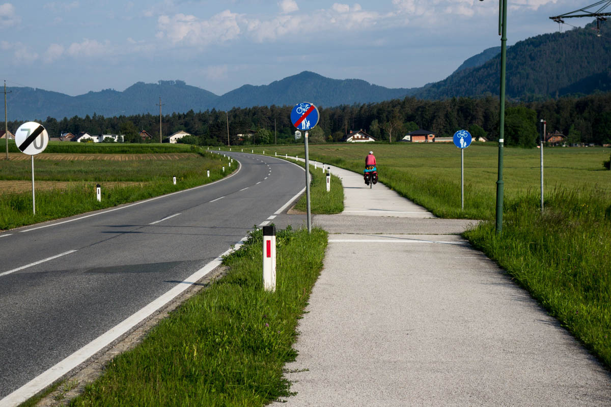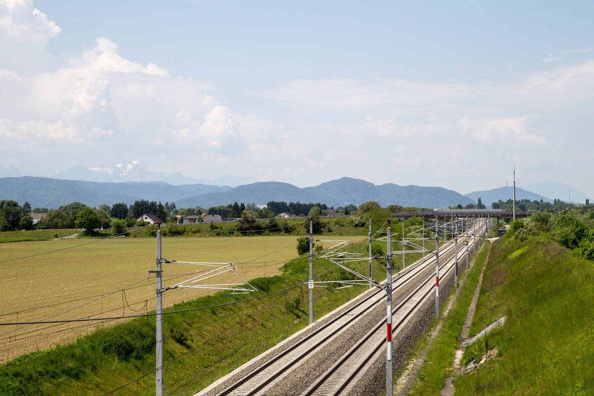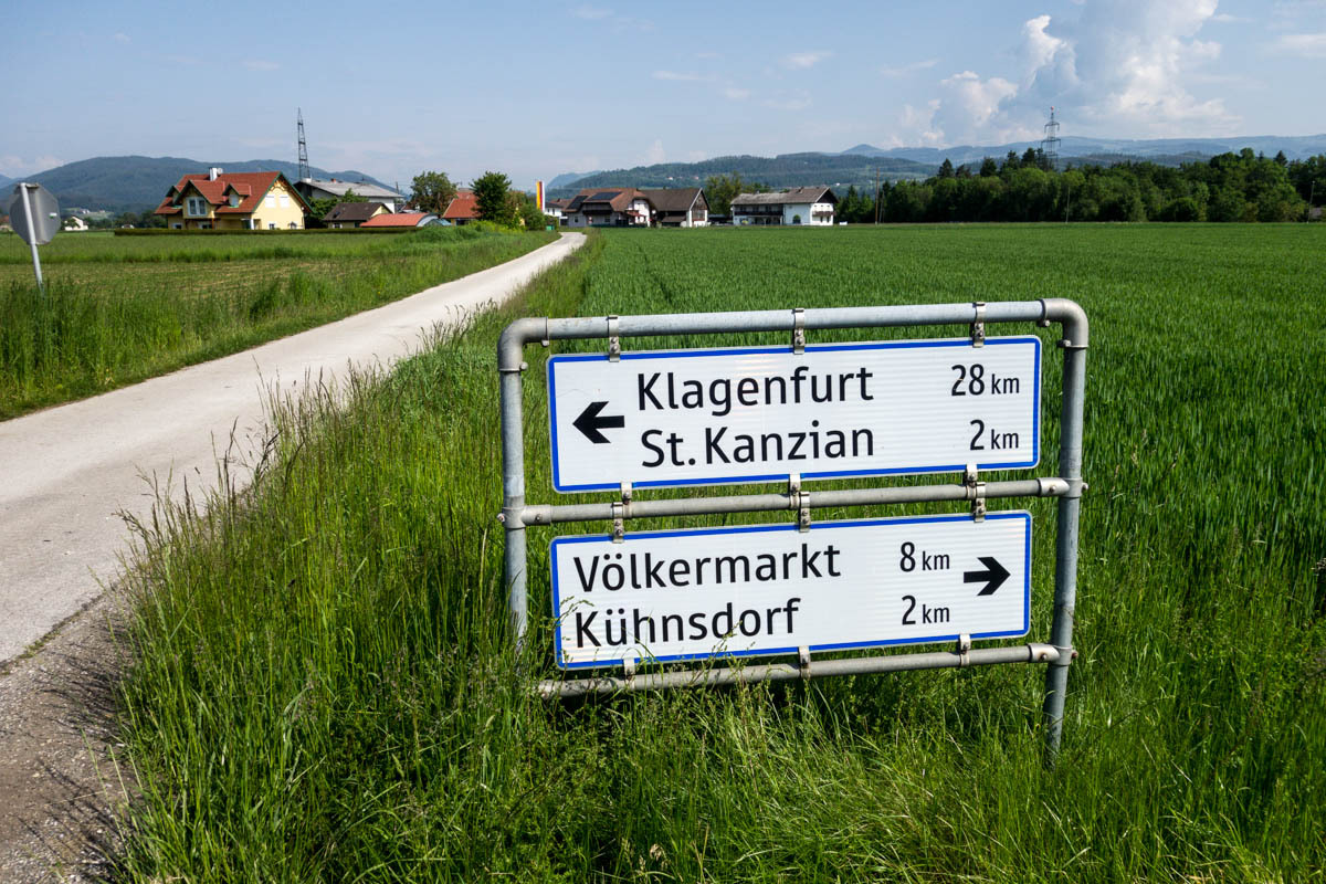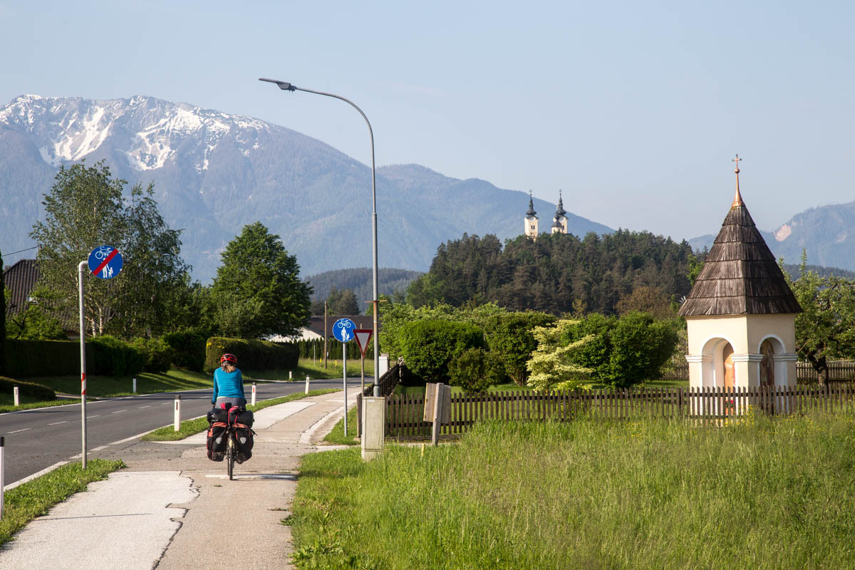 Still, there are no cafes for coffee to be found until we are quite close to Klagenfurt. The last ten kilometers is along a nice trail that follows a new railroad line. We zigzag our way to our Warmshowers host.