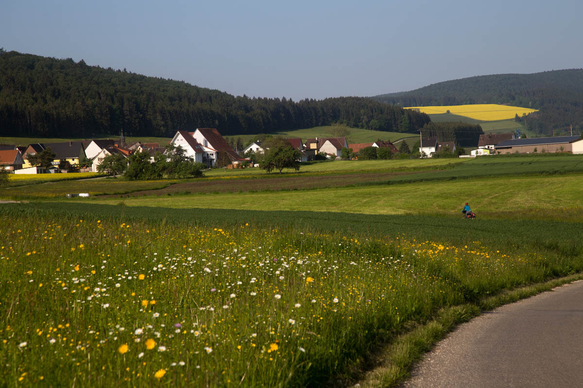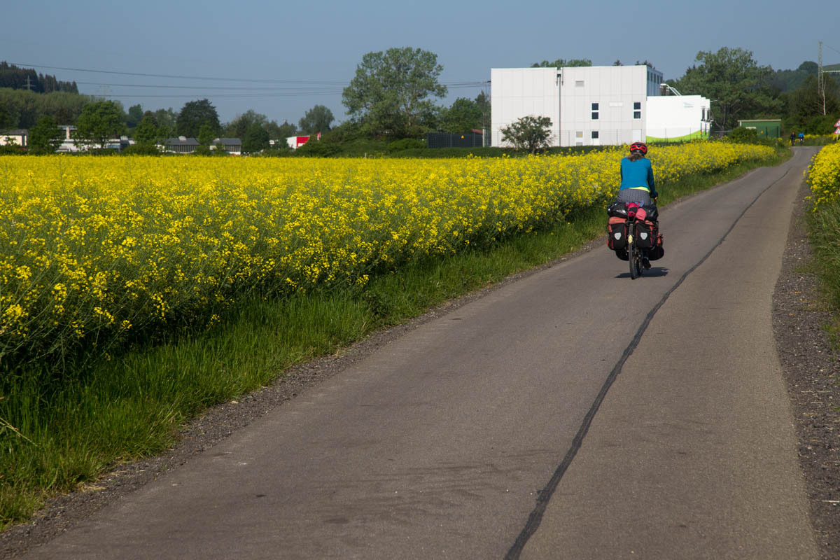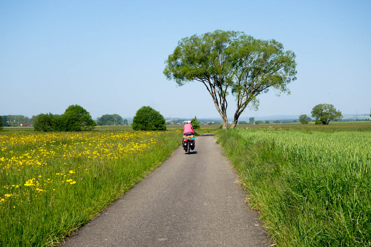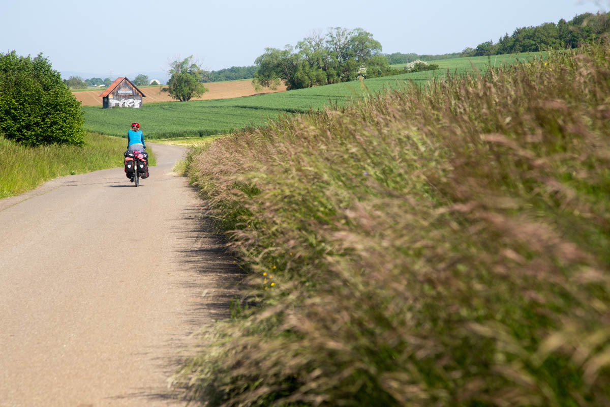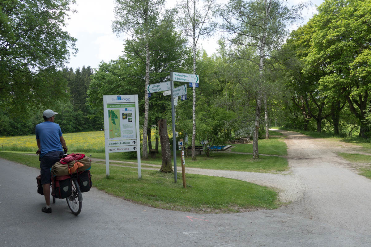 When we reach Donaueshingen, our first goal is to find the McDonalds, not necessarily for food, but to use their Wi-Fi. Both don’t seem available at first: they do not serve breakfast here and the Wi-Fi is down. The server helps us out though by giving the password to her own cellphone hotspot so we can check our emails. We have been trying to coordinate our meeting up with Maren and Chris tomorrow. There is an email that they will meet us tomorrow morning at eight at the campground we are headed for today.