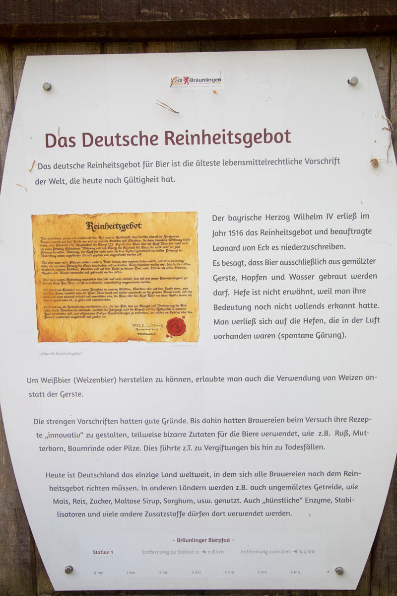 We ride around Donaueshingen a bit: first to the confluence for some photos, then into the city park and city center to the official start of the Donau bike route. On our way out of town we spot a Subway restaurant for lunch. Then another stop at the Lidl for some groceries.