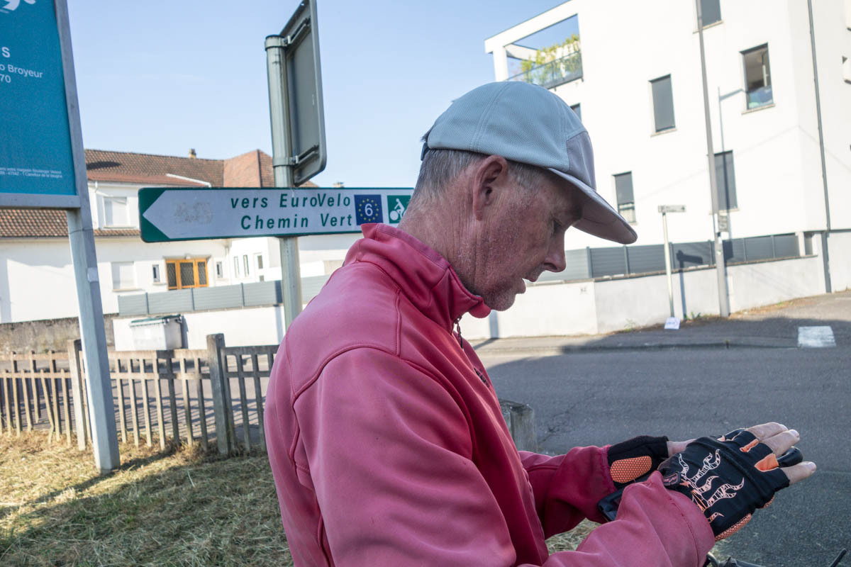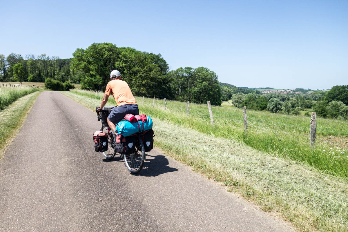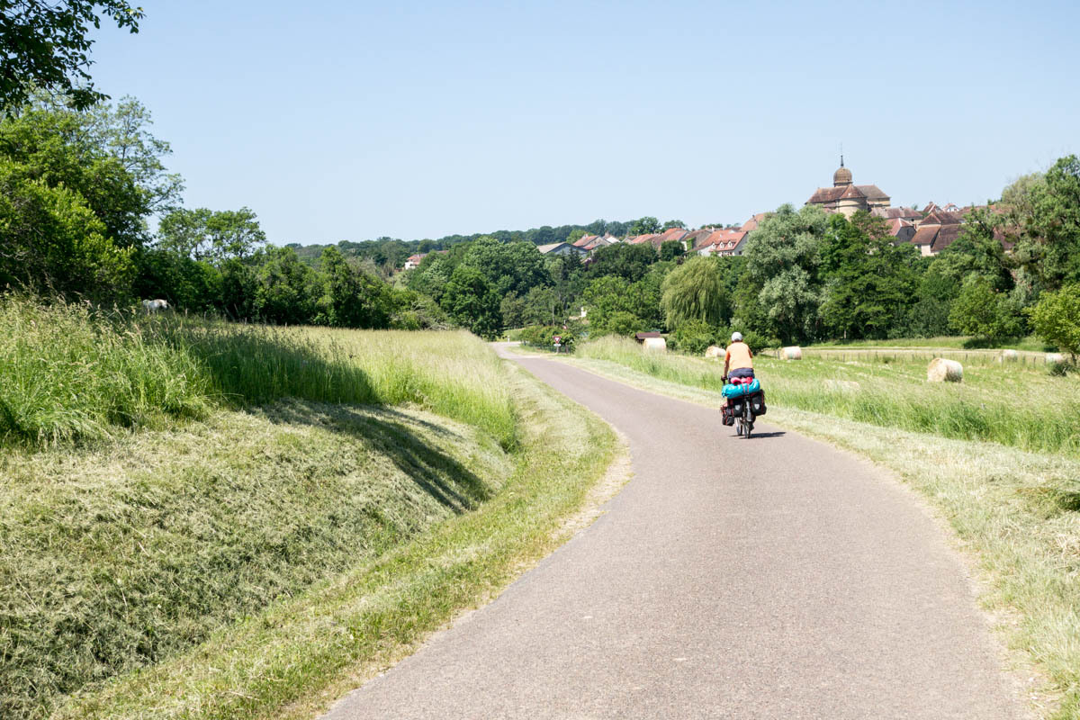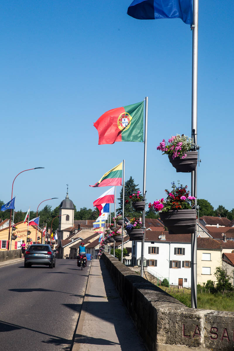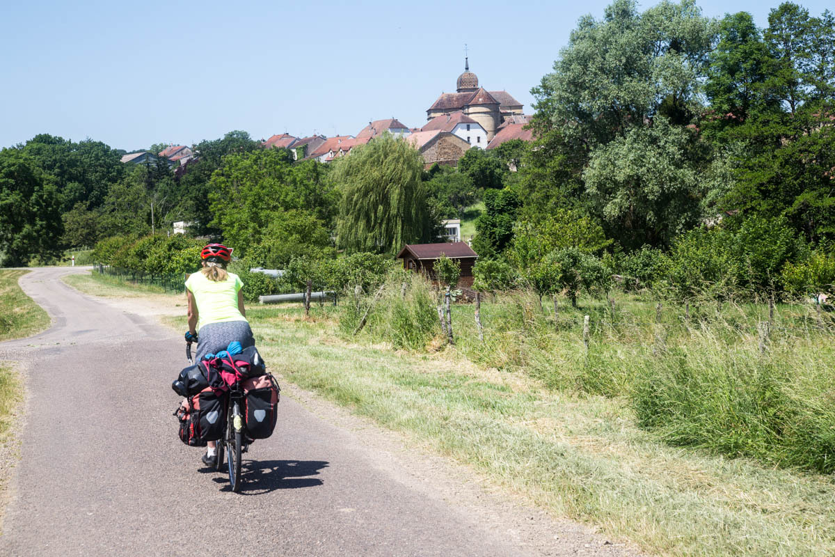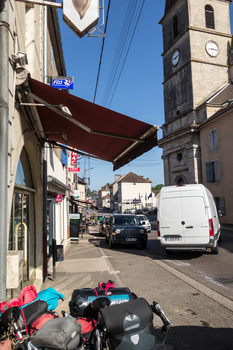 In the morning we have breakfast with Catherine and a friend who’s in town for a music performance. We say our goodbyes just before 8 and head out towards downtown Vesoul. Ride with GPS has a good route figured out for us, it is just very convoluted with many twists and turns requiring Patrick to check the tablet frequently.