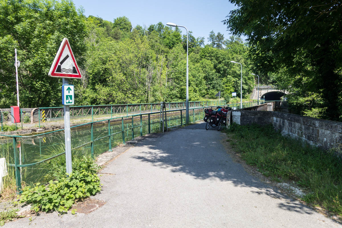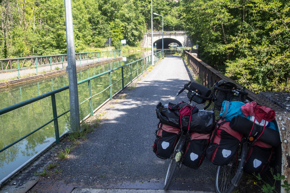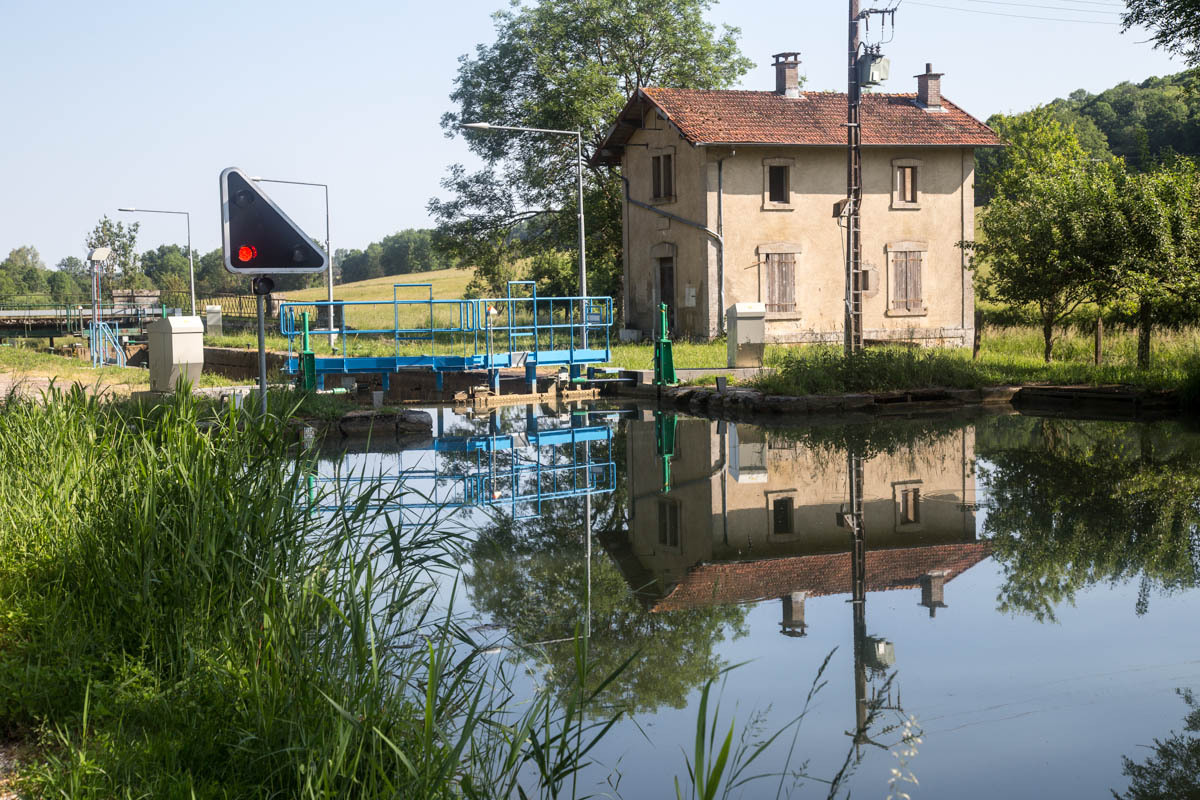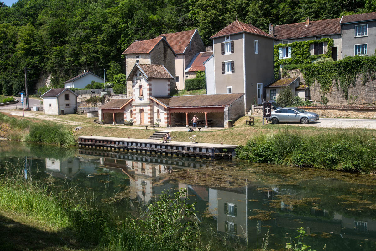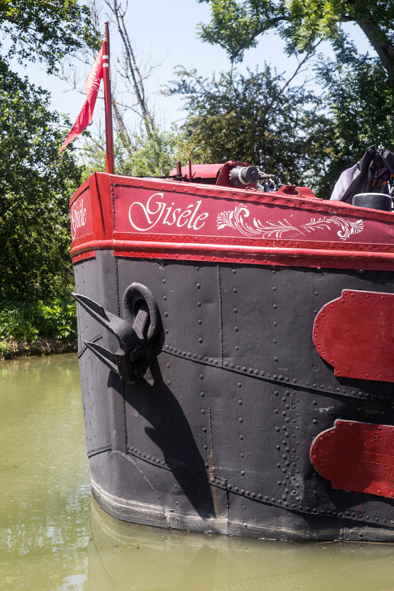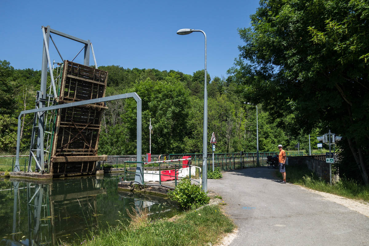 Coffee is good, but we are surprised at the 3 euro plus price tags these days. The bikepath is awesome it follows the canal that’s called the Champagne De Bourgogne Canal. We see a few pleasure boats and also a couple of freighters. Mostly the canal is empty with long stretches of solitude and at least 40 locks that we pass going downhill. The wind picks up in the afternoon, but most of the time we have good cover from the trees along the canal.