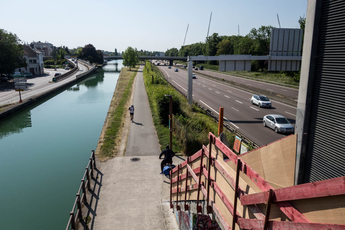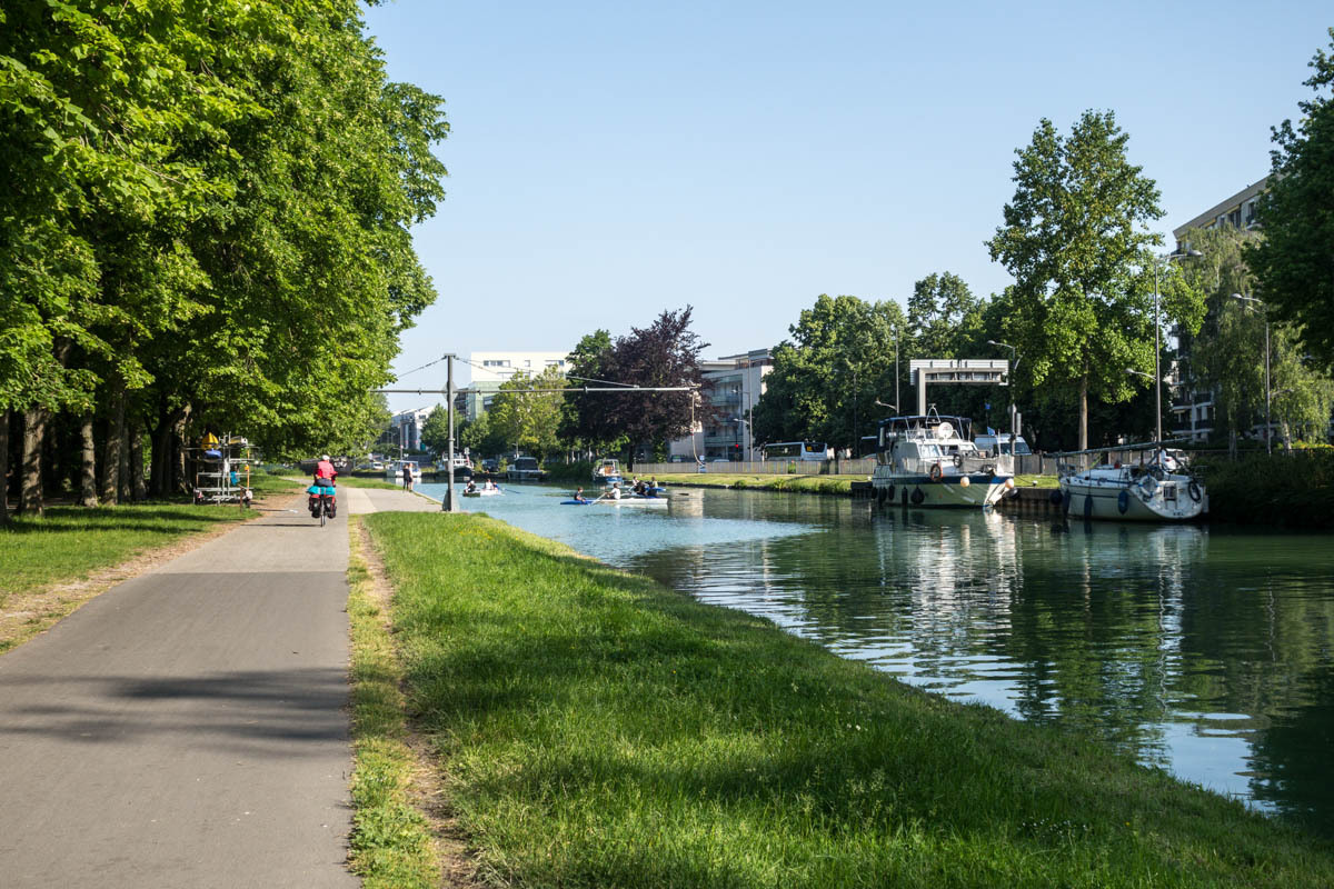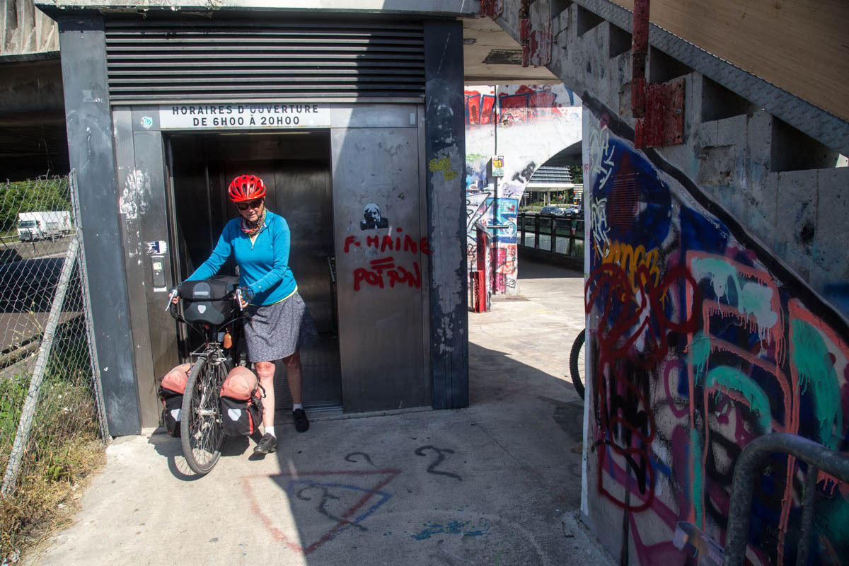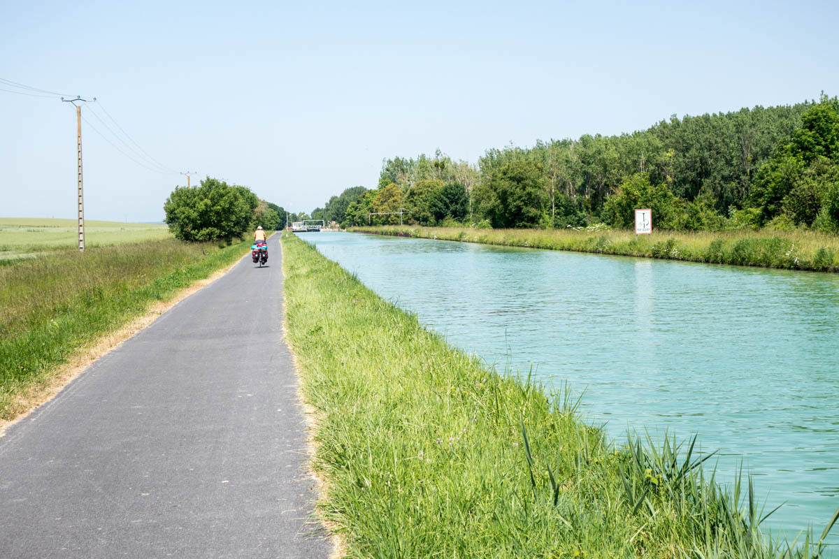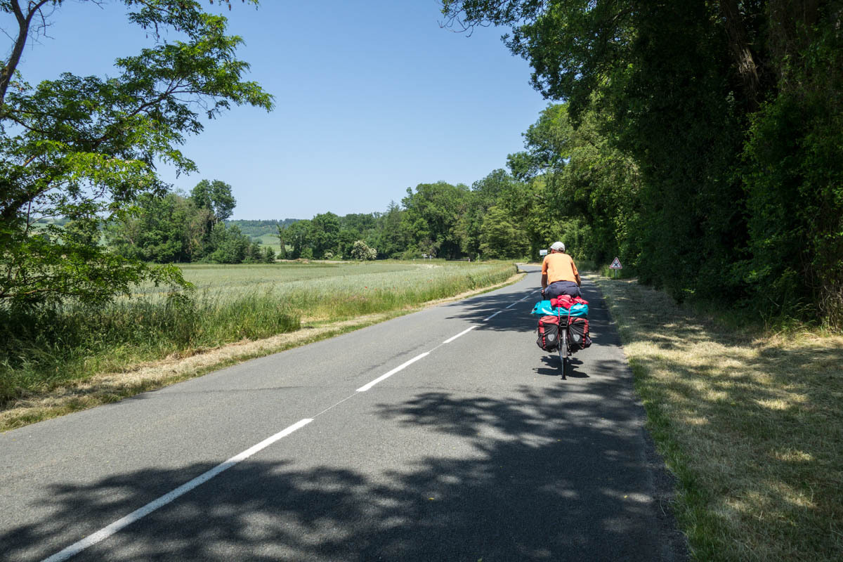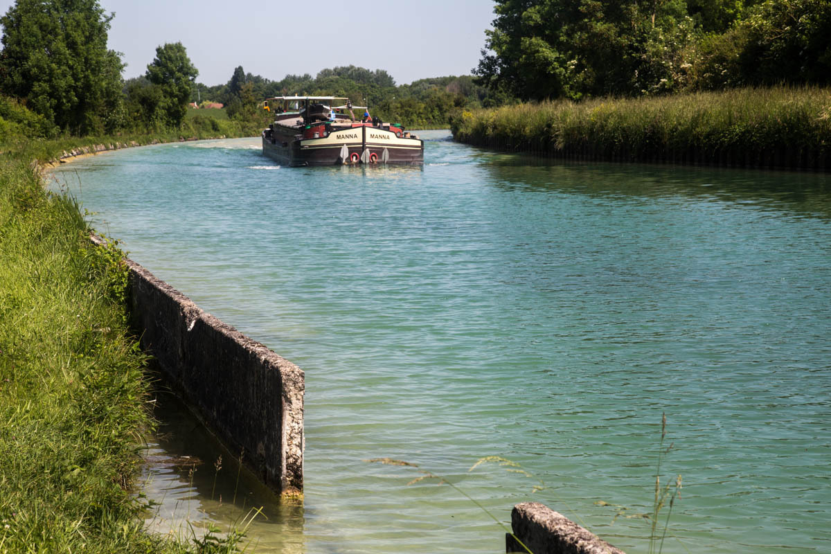 An elevator takes us back on the trail along the canal. Our canal ends though at a T junction at Berry de Lac, from there we go cross-country. Nico had warned us about this section of about 3km of single track in the tall grass. That means hills in these parts.