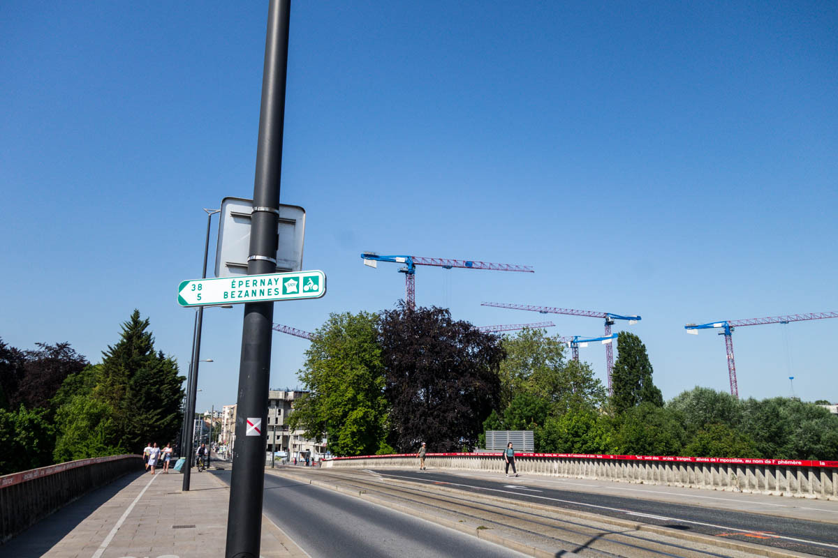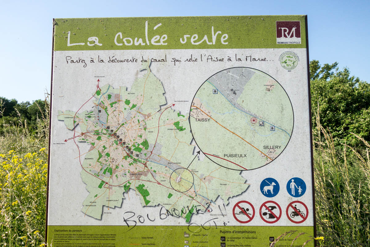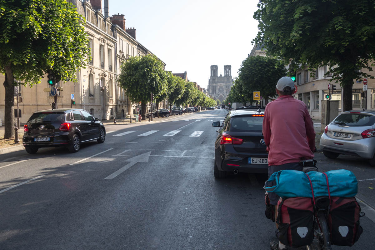 Today we are headed into Reims. The French pronounce it without the R and M, and start with the sound of a dog growl (according to Nico). It seems like nobody has understood where we are headed when they asked us because we always pronounced is Reims, but it sounds like “Grrrraies” or something like that.