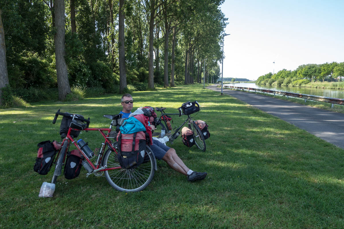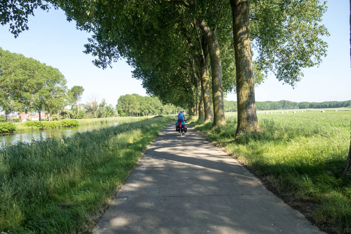 We cross the Belgium border and then onto a bikepath along the canal of the Schelde River.