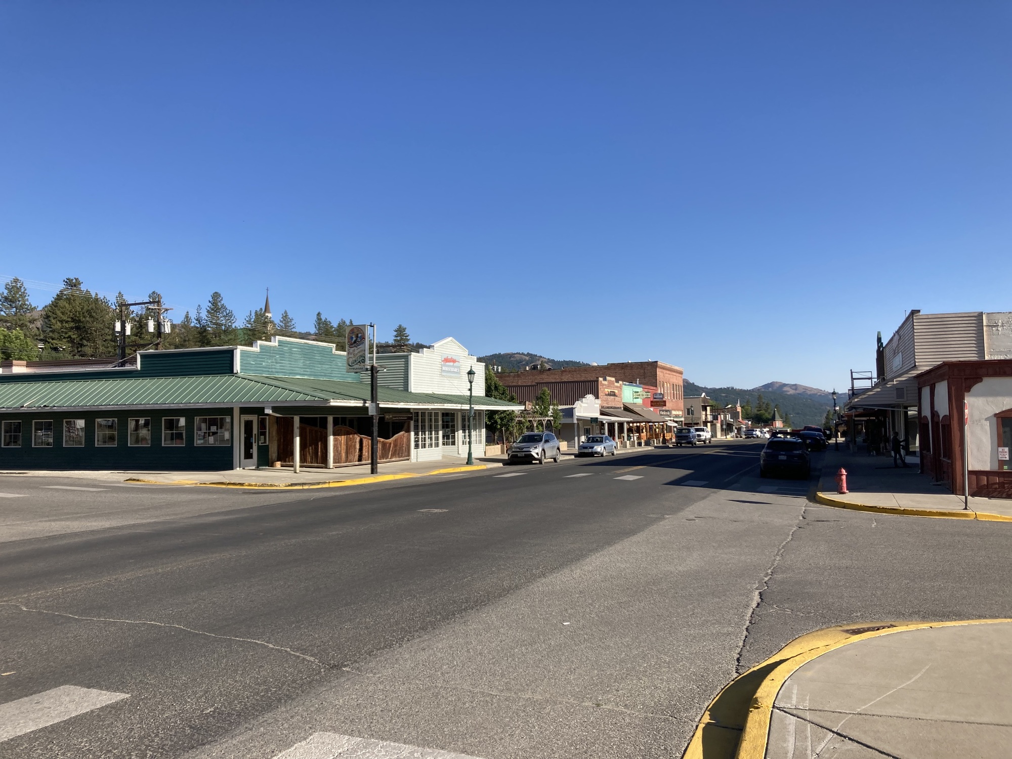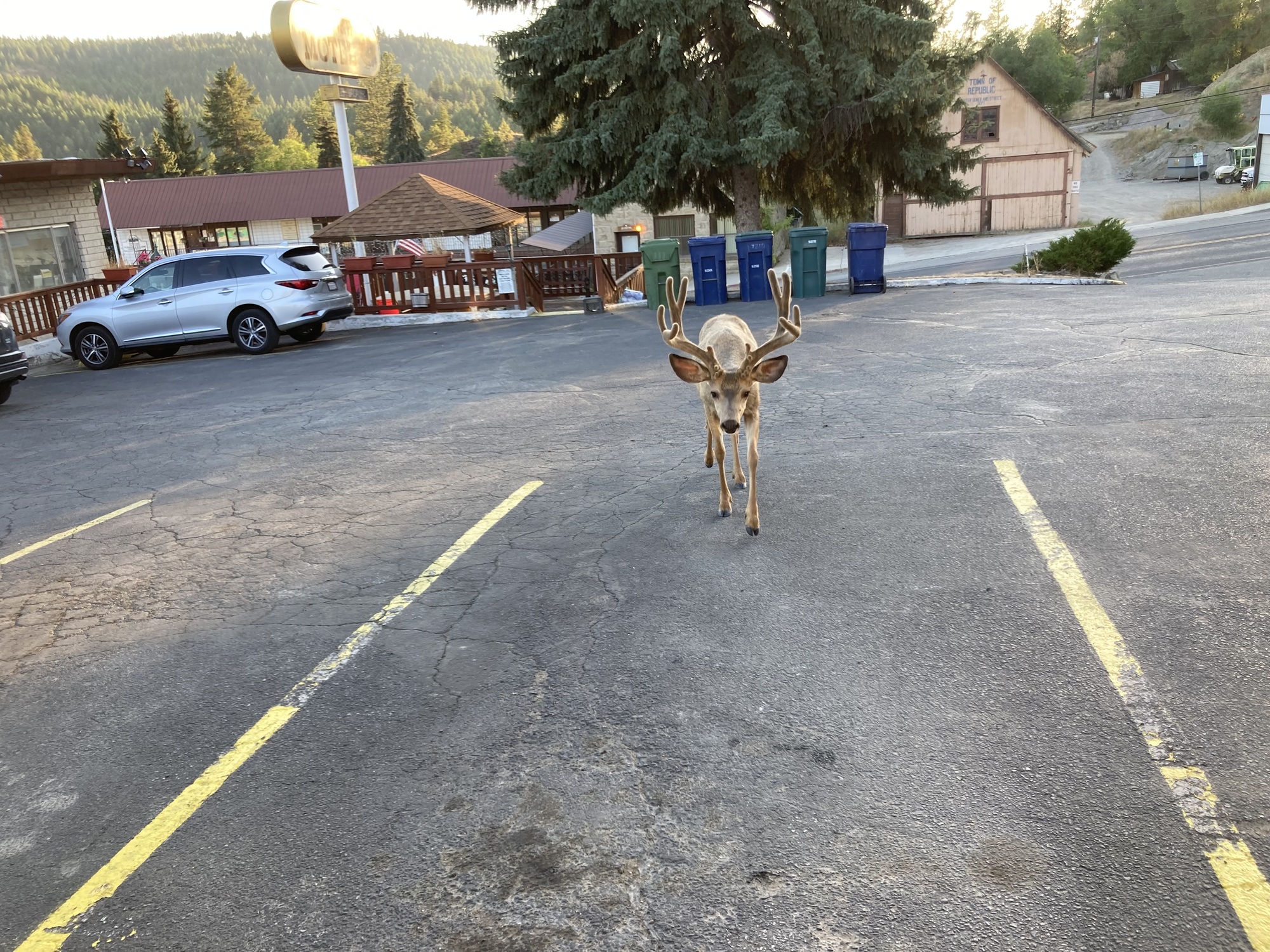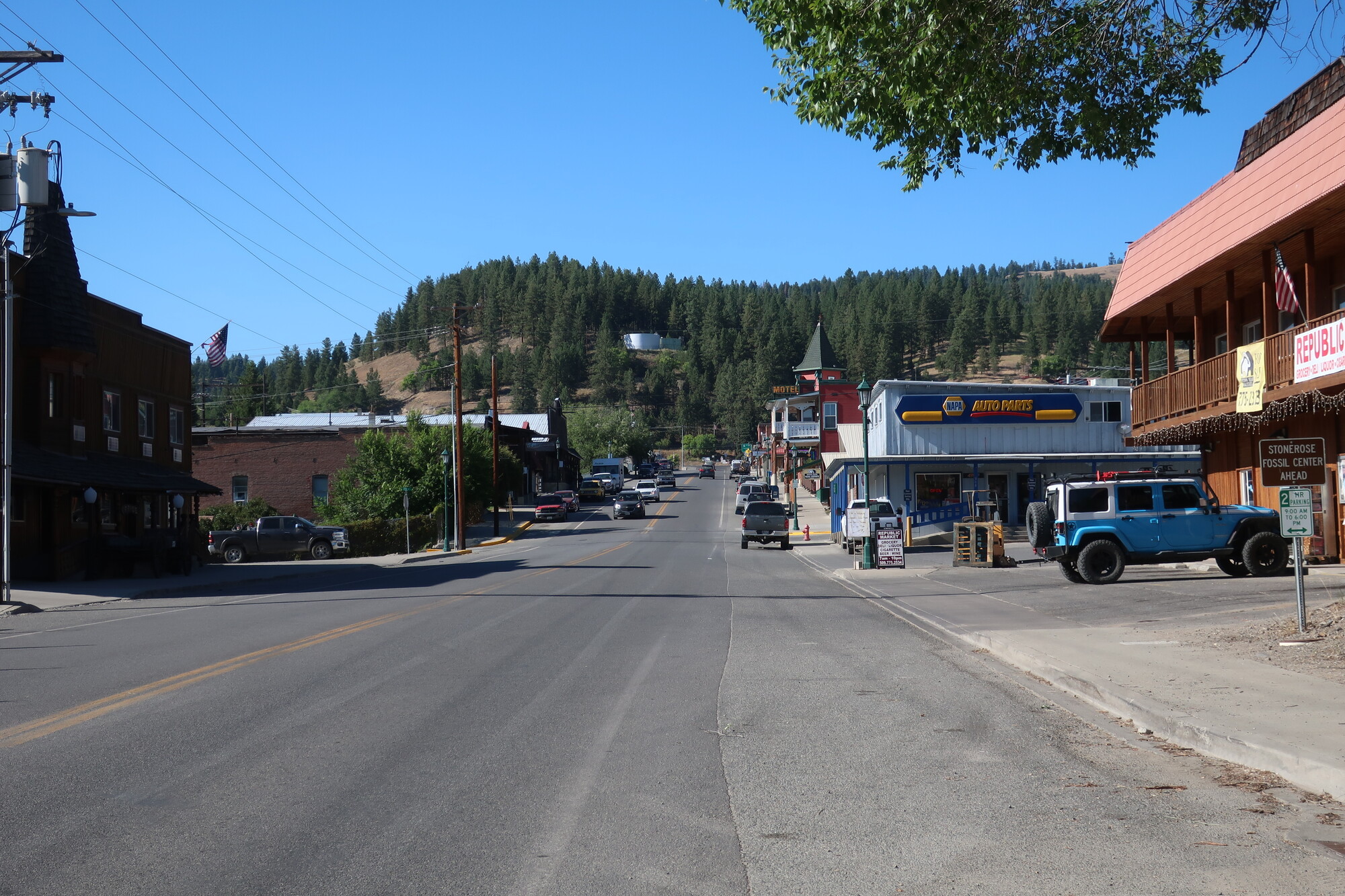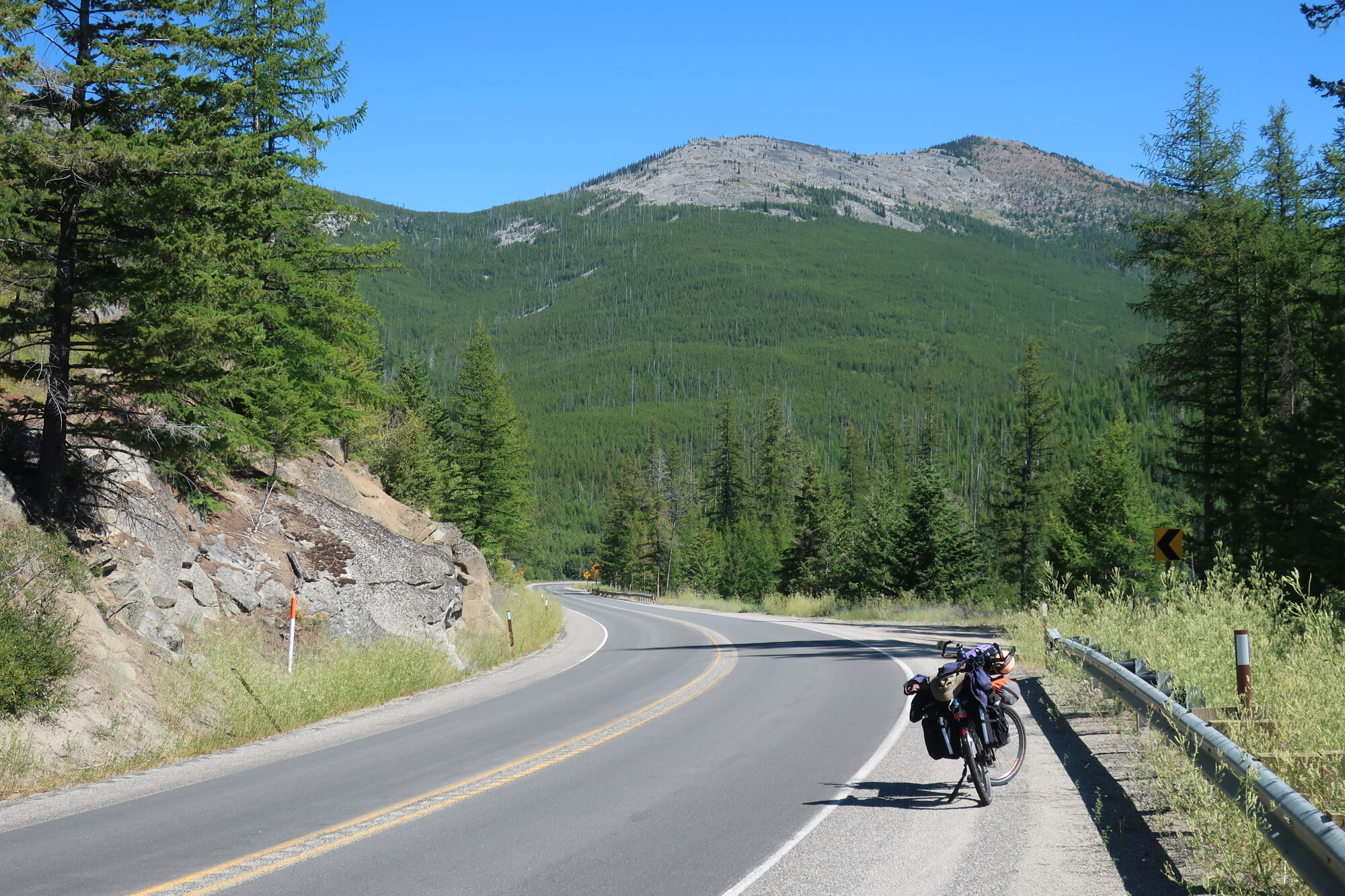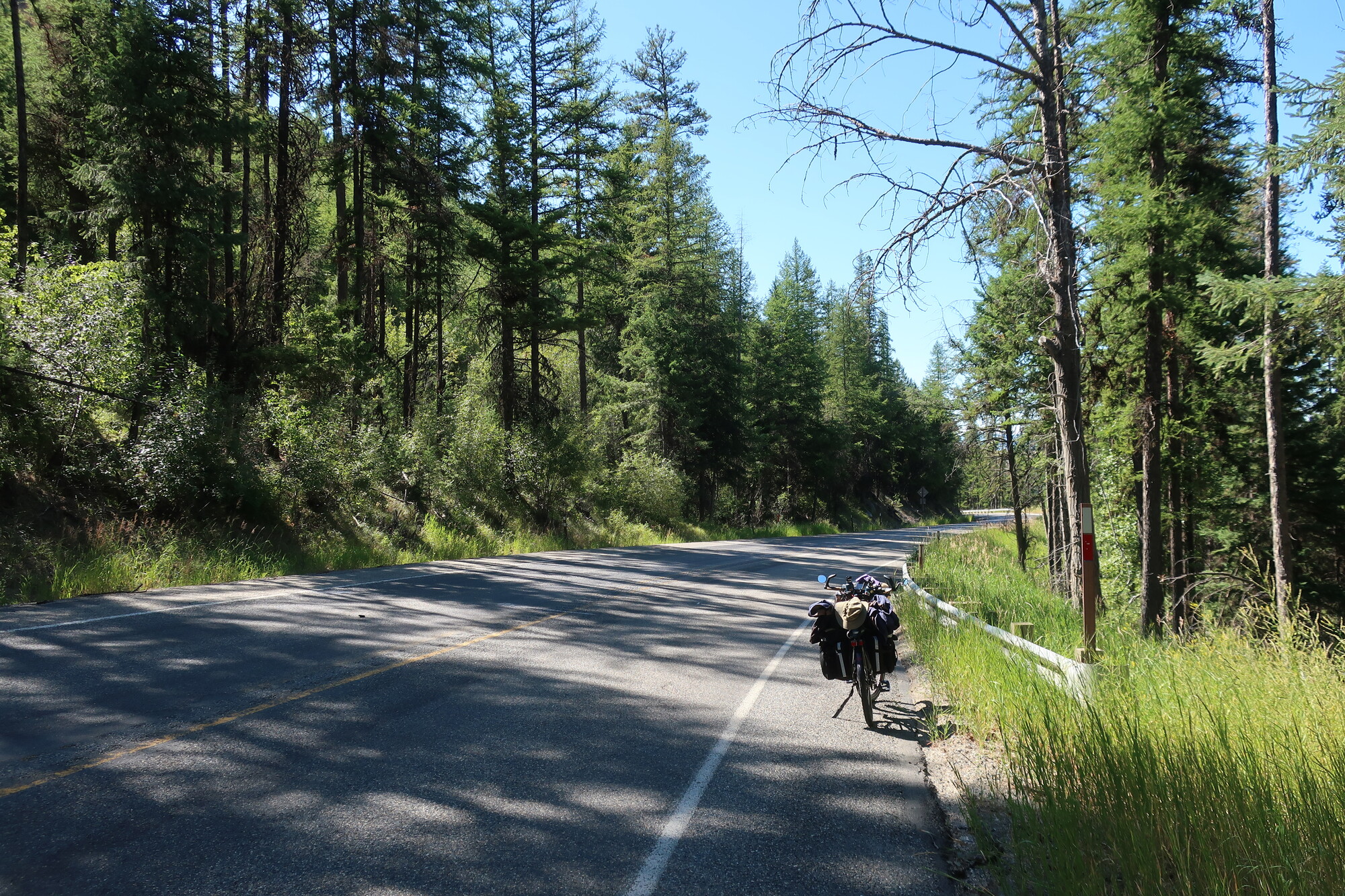 I woke up a minute before my alarm and was on the road before 6 am. A virtuous start to a difficult day. It was up hill from the get go, getting steeper the higher I went. Relentless grades, always up, never down for 25 long miles. I flew down the other side, so quickly I have little memory, only to meet more steep hills arriving in the vertical town of Republic. It was definitely the most challenging day of this trip, and one that I’ll remember, if only for its endlessness. I’m so pleased with myself for recognizing that today was going to be a tough one and booking a room at the Klondike Motel with its excellent hot shower, quiet air conditioner, and nice firm bed.
