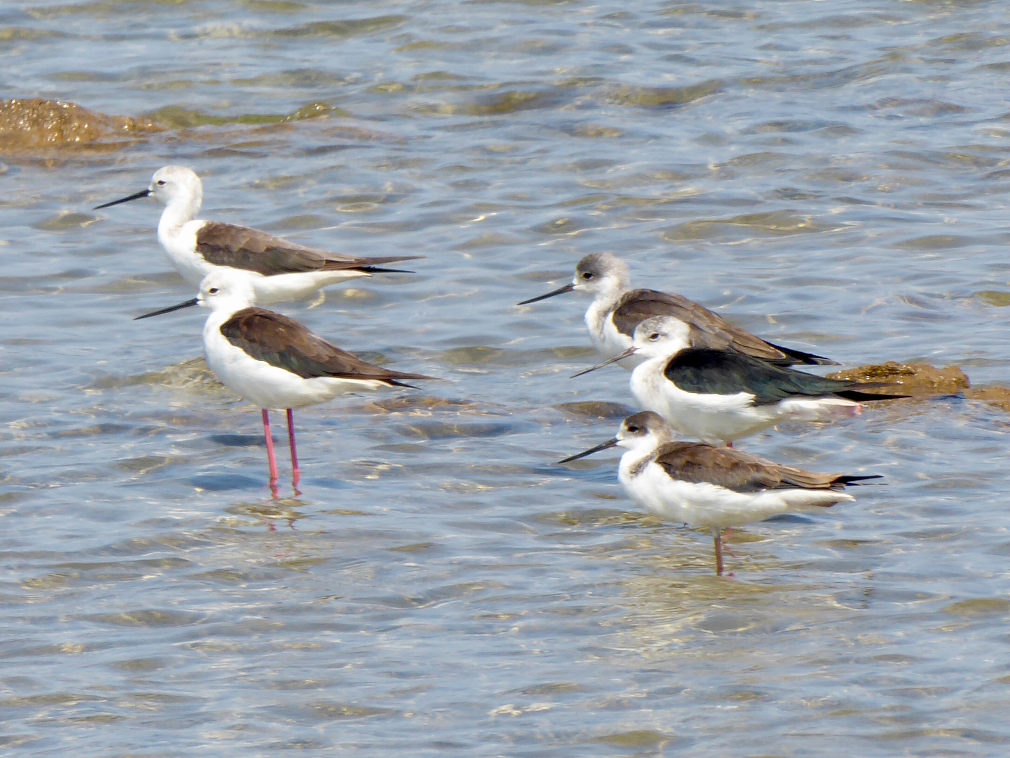 I think these are black winged stilts, part of a group of about thirty wading in the salt flats by Luka Dubrovachka. Right environment, right season, but listed as critically endangered in Croatia so I’m not sure.