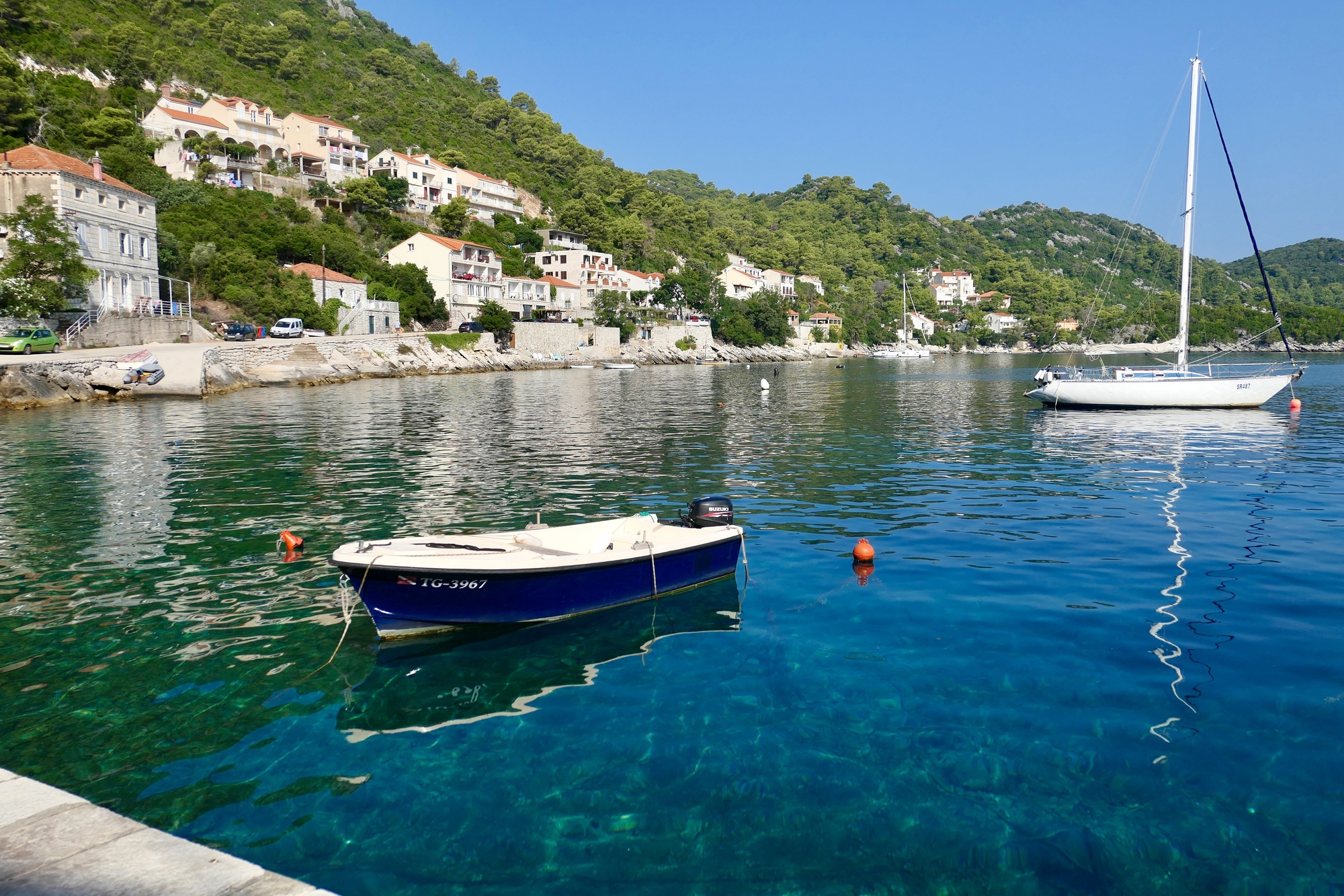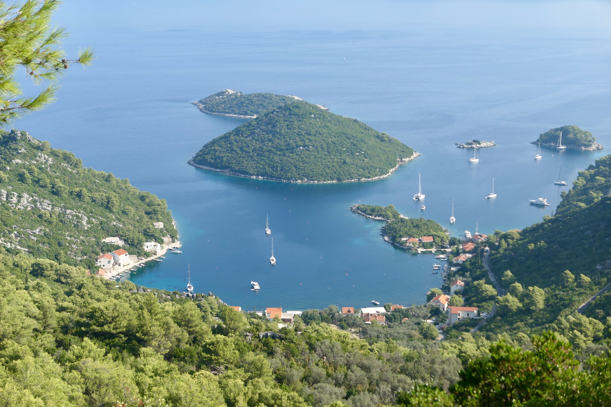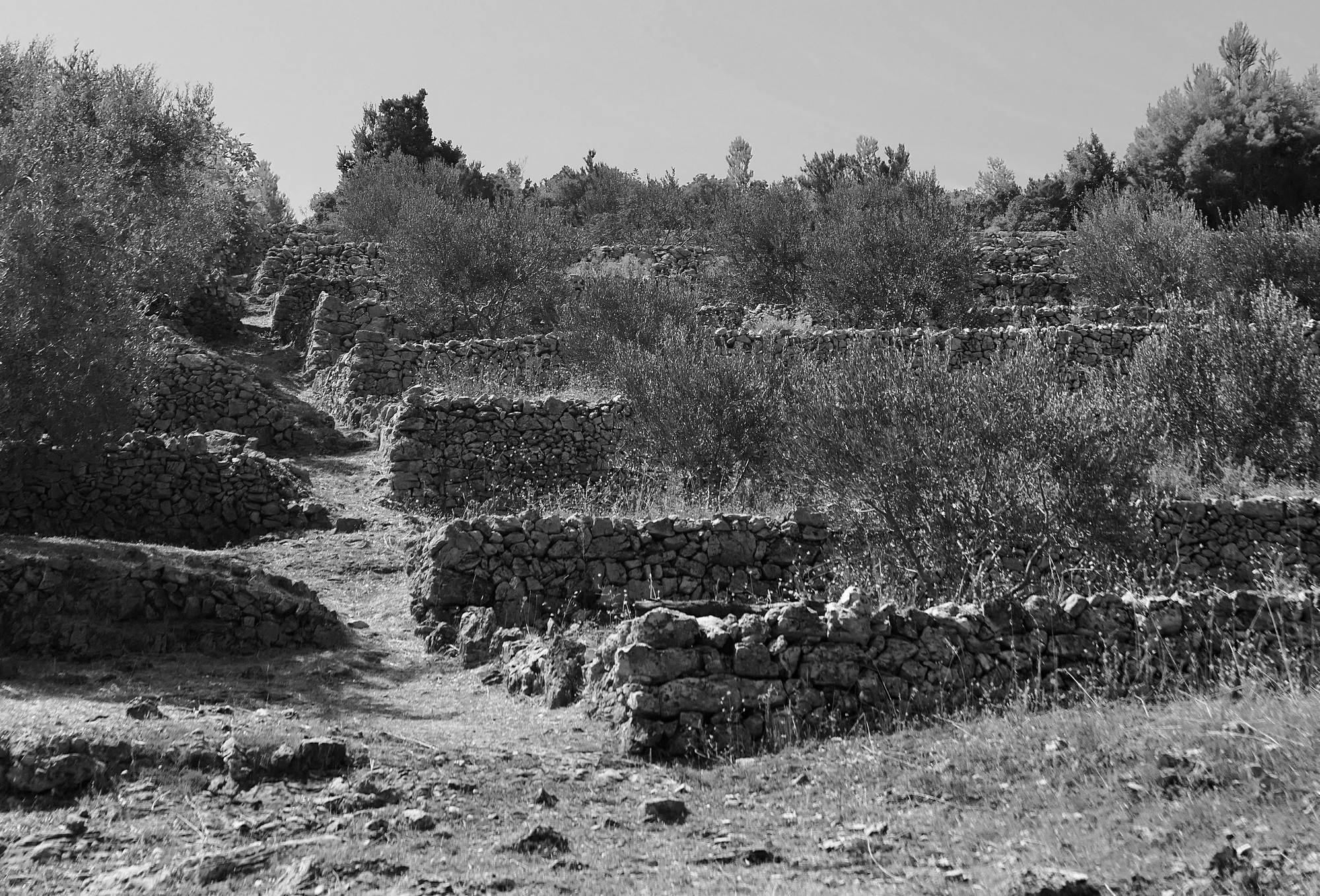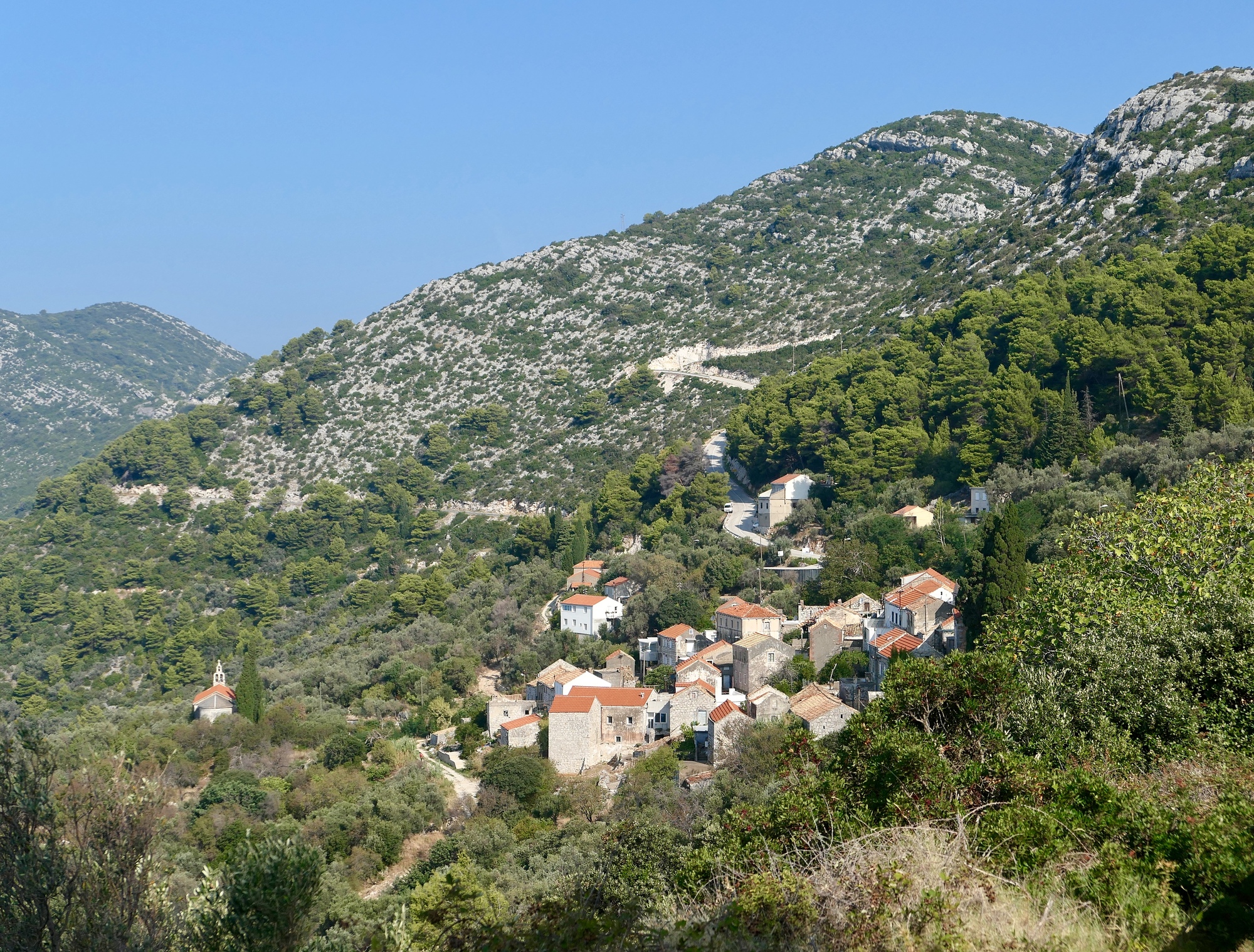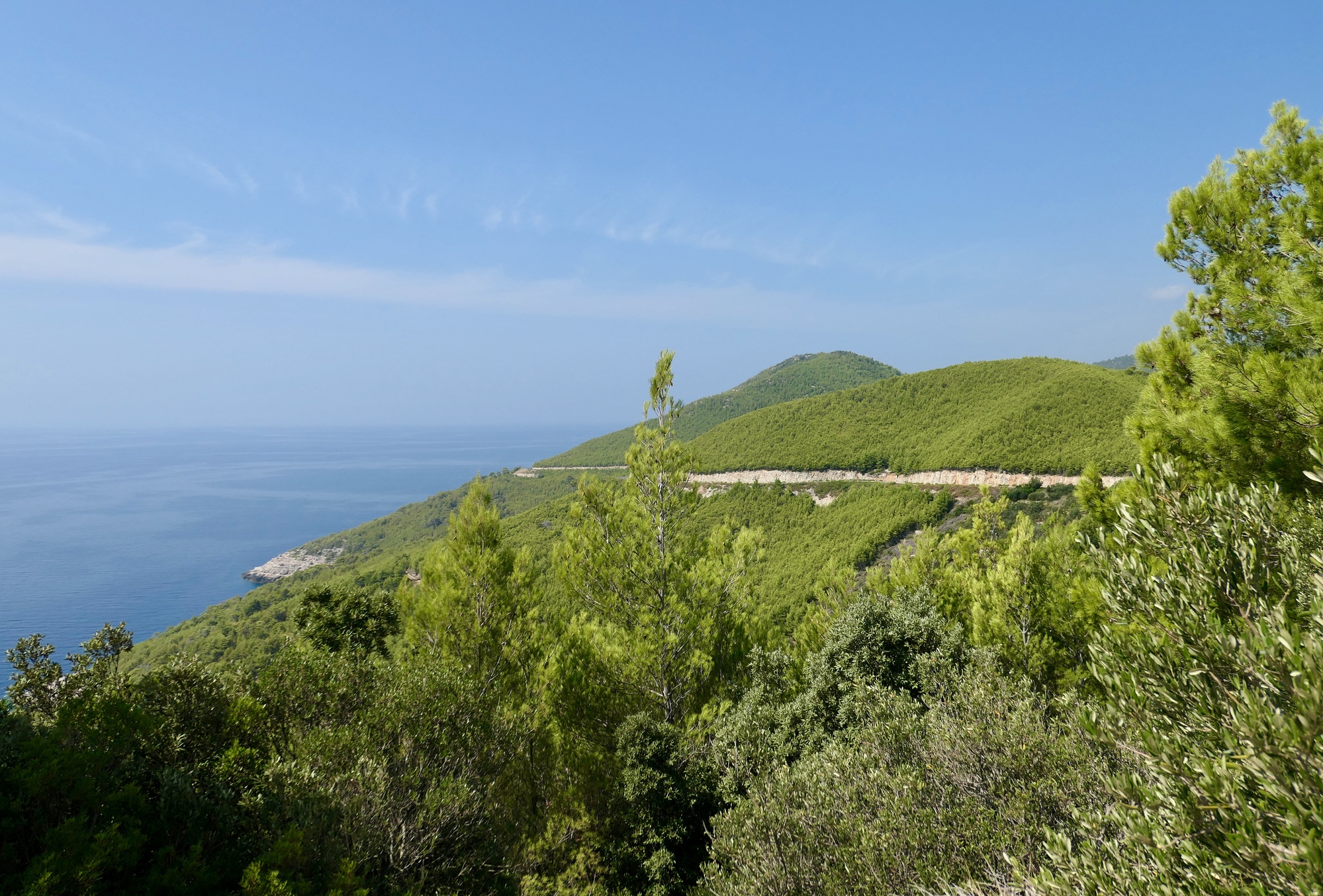 Most of the north end of the island is very lush, green, and densely wooded. Old walls and untended old olive rows suggest it was cultivated not that long in the past though.