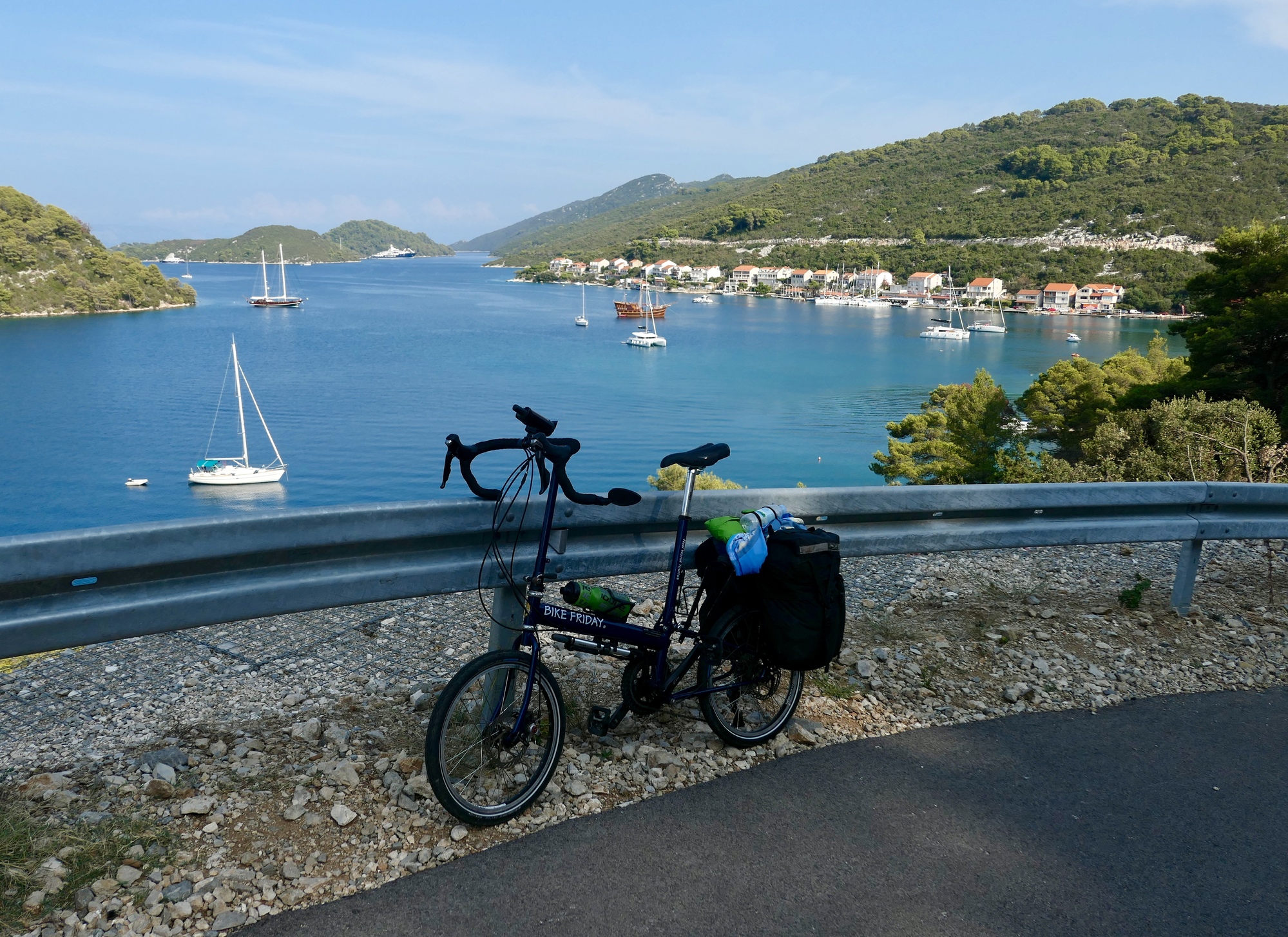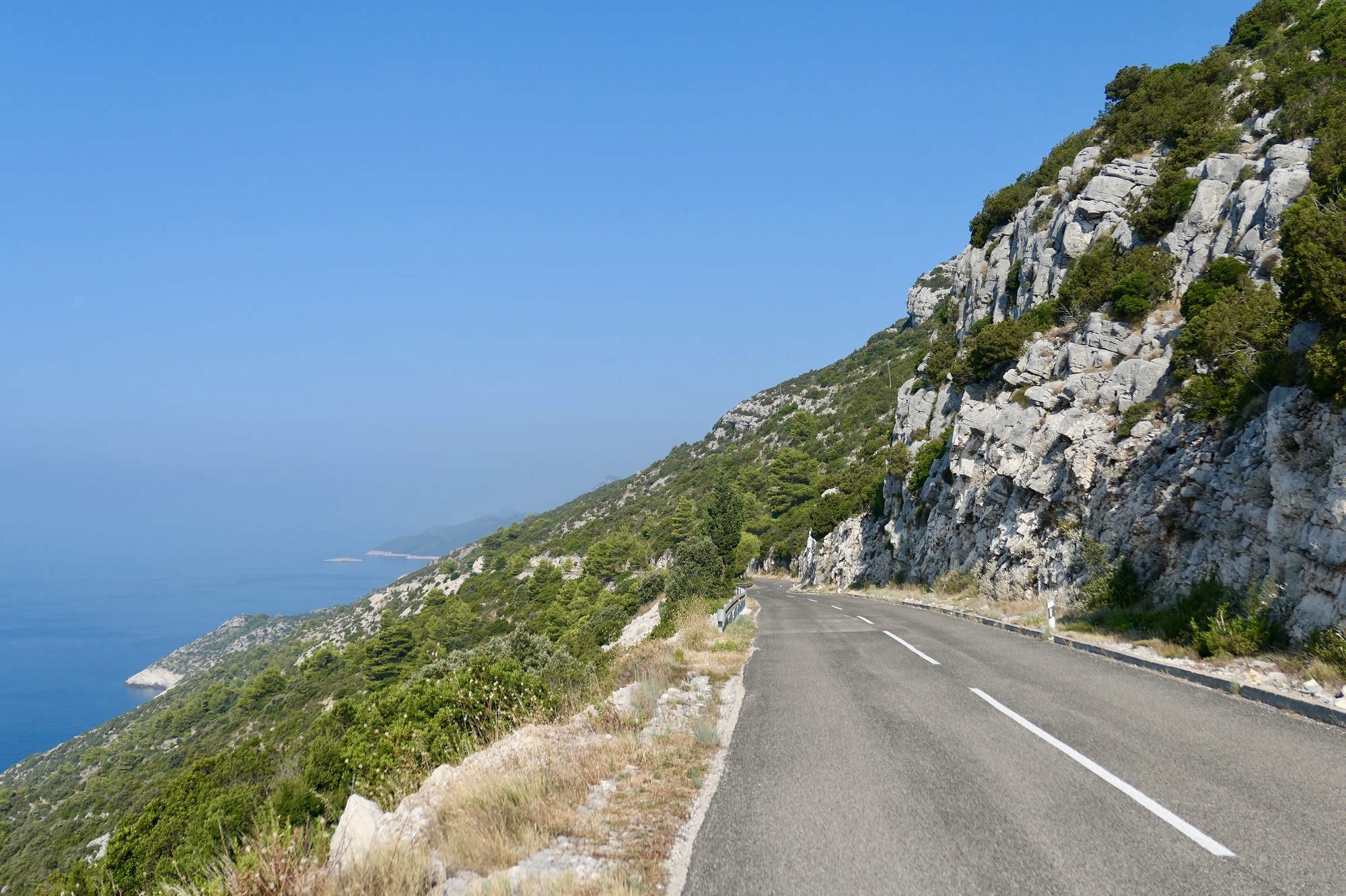 After breakfast we bike to the north end of the island, where we will catch the late afternoon catamaran to Korcula. We start riding north at 11, and there’s still enough shade on the road that ts not too oppressive yet.