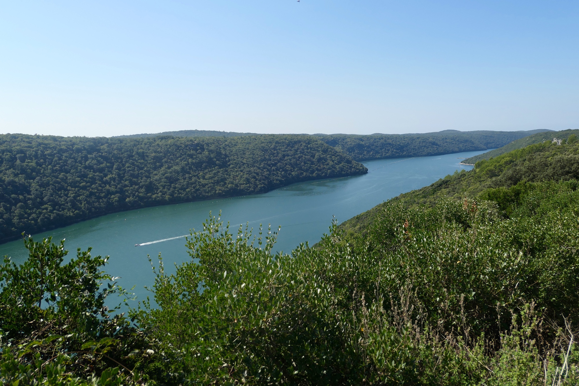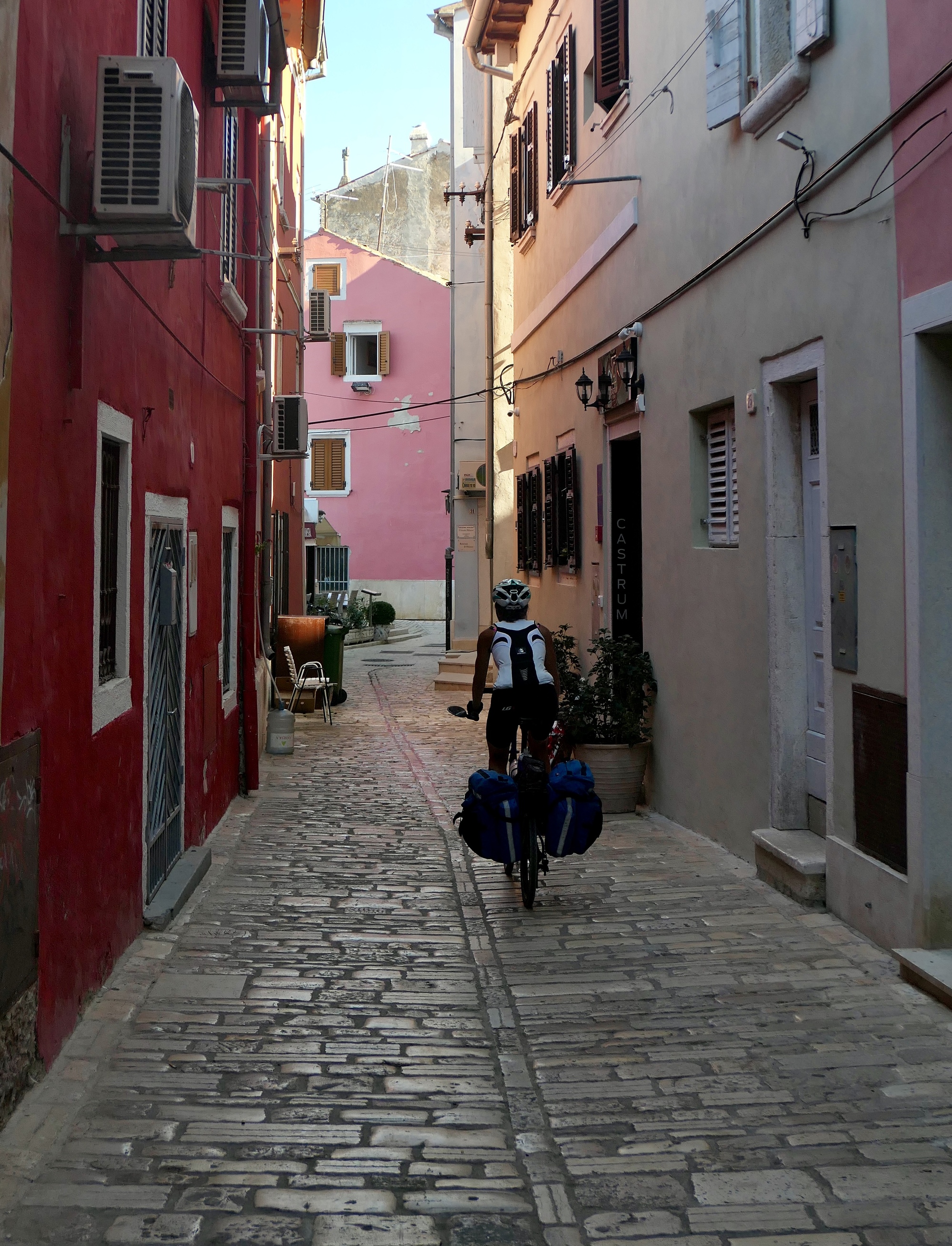 A short ride today, to the next major attraction up the Istrian coast. It would be even shorter if we could hop over the Lim Fjord, an eight mile finger that penetrates the coastline just north of Rovinj. The ride has the hybrid character we’ve come to expect here - a fifty fifty blend of beautiful, relaxed riding on empty lanes and some rather more tense miles when we share the road with cars, buses and campers racing to get to their destination that precious one minute faster.