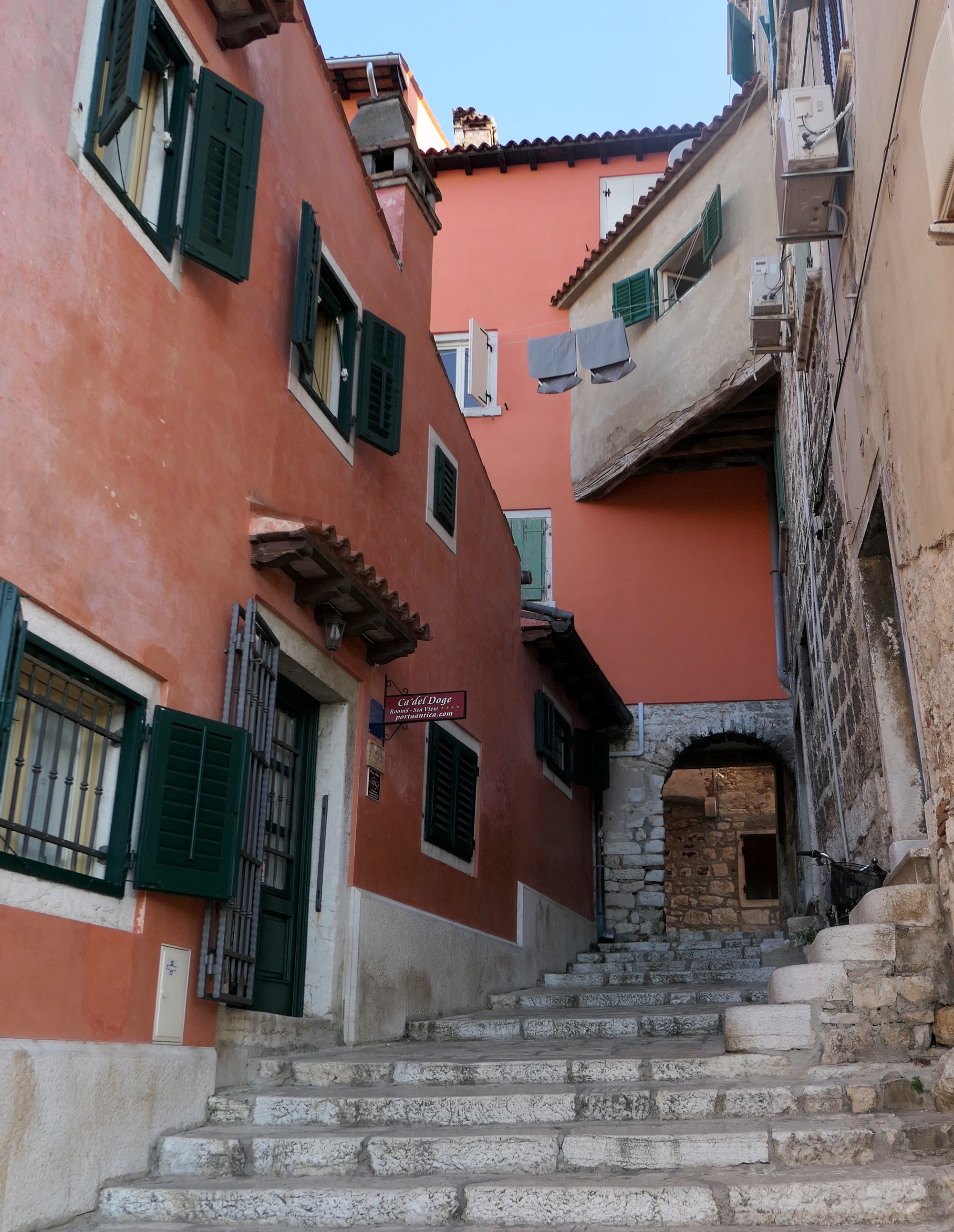 We arrive at the outskirts of Porec at one, and stop at a cafe for a lunch salad before checking into our room at two. We’re staying in a pleasant, inexpensive apartment a bit away from the old town. It has a lot going for it, but surprisingly does not have A/C. We’re lucky that the temperatures have started to drop a bit, or we would have been significantly uncomfortable.