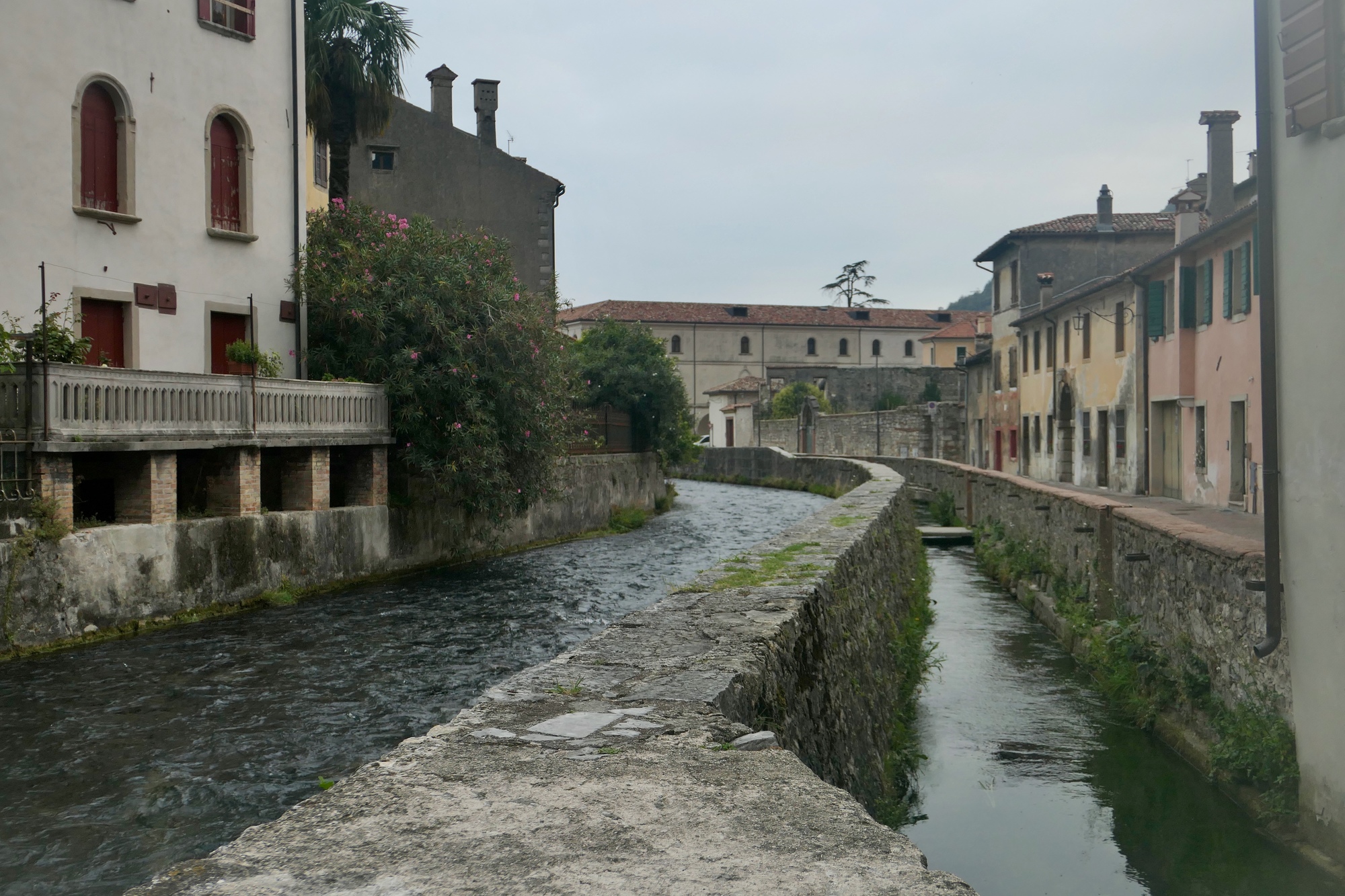 Vittorio Treviso was formed by joining two smaller towns. The southern one is lined with elegant mansions, mostly hidden behind tall fences and hedges.