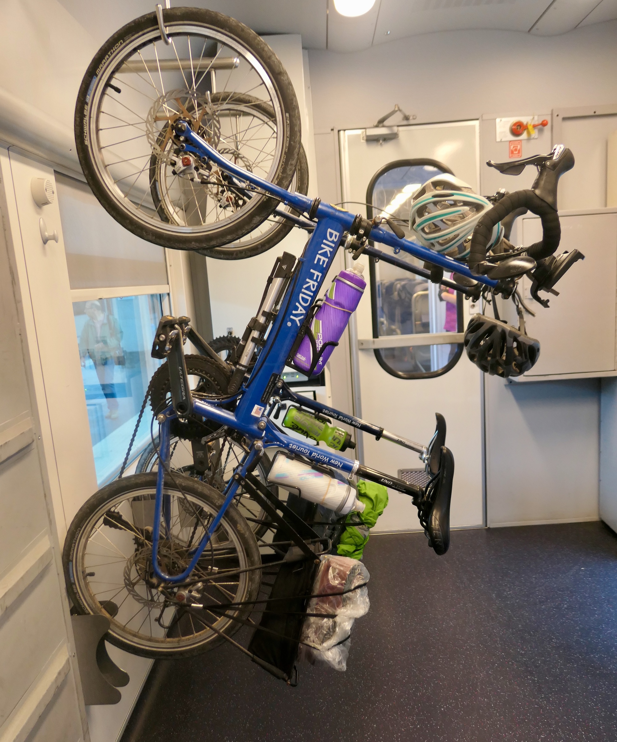 We began the day by walking back up to our hotel to retrieve our bikes. I didn’t mention yesterday that we had to relocate to a more central apartment yesterday (also belonging to the hotel) because there wasn’t room for us for both nights in the hotel itself. afterwards we coasted back down and found the only open coffee shop (it’s early Sunday AM, and almost everything is closed still) for a fast breakfast before biking over to the train station to catch our 9 o’clock departures for Treviso. Our coffee server, an upbeat young man, is a delight - he beams when quickly he brings over Rachael’s second cup, announcing ‘Super cappuccino, super fast!’
