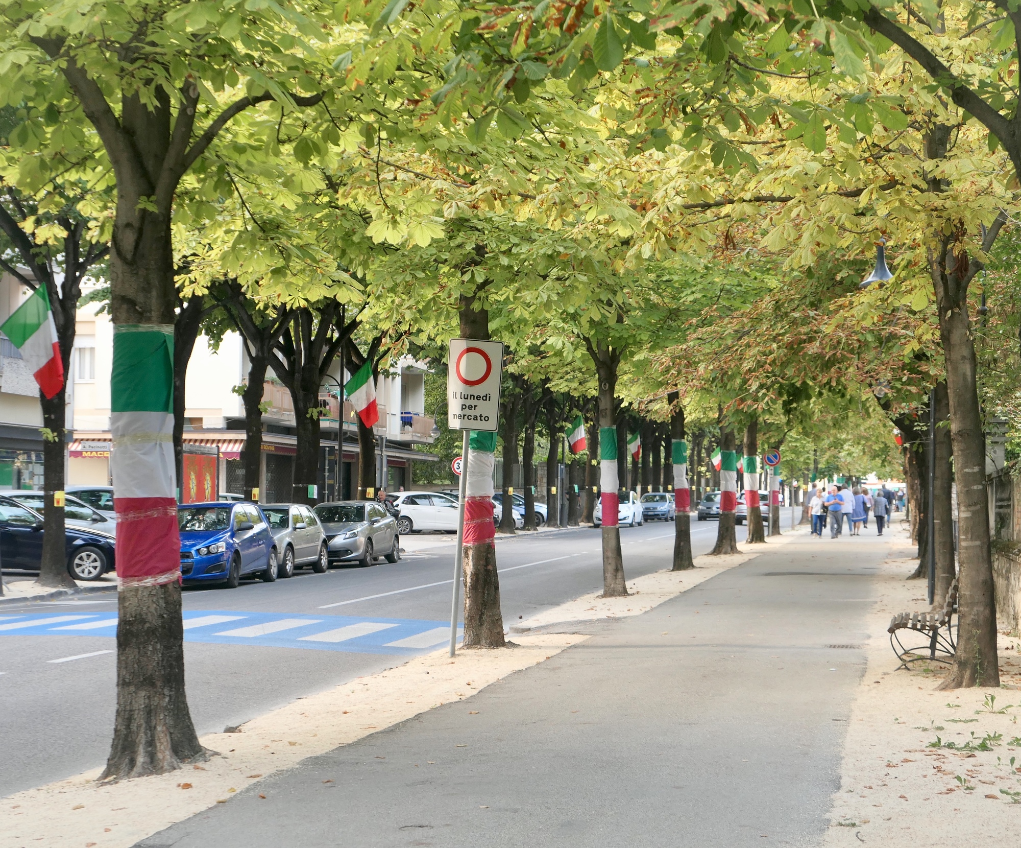 The main road through Vittorio Veneto is adorned with Italy’s colors. Next month is the hundredth anniversary of the Battle of Vittorio Veneto, the decicive victory that ended the First World War on the Italian front.