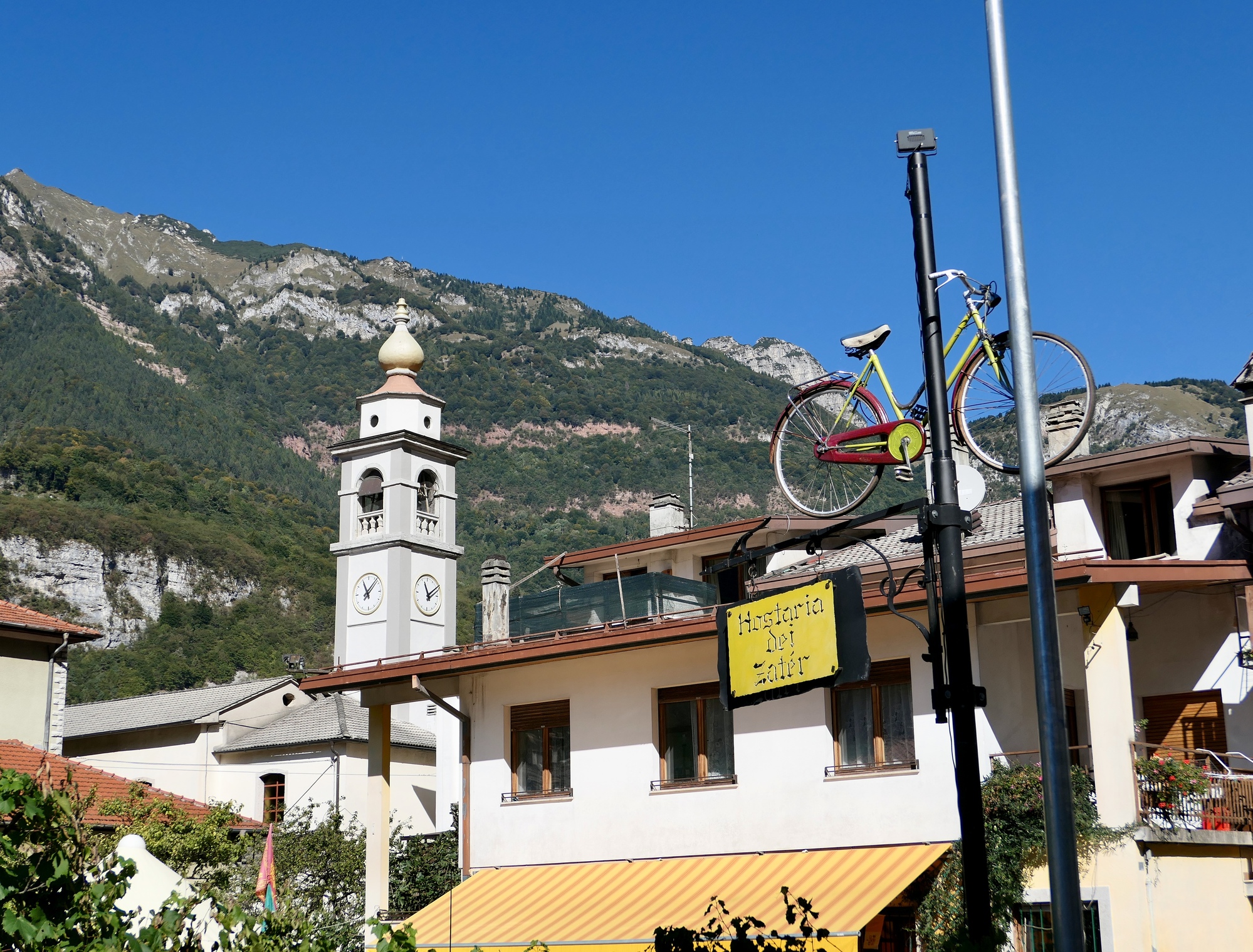 I’ve lost track of where this is, but perhaps it’s in Pieve. This is the town where the route branches. One goes northwest to Cortina d’Ampezzo, and takes the Venice-Munich bike route with it. We continue northeast up the Piave, leaving the bike route and in exchange getting a few miles of narrow, shoulderless busy highway.