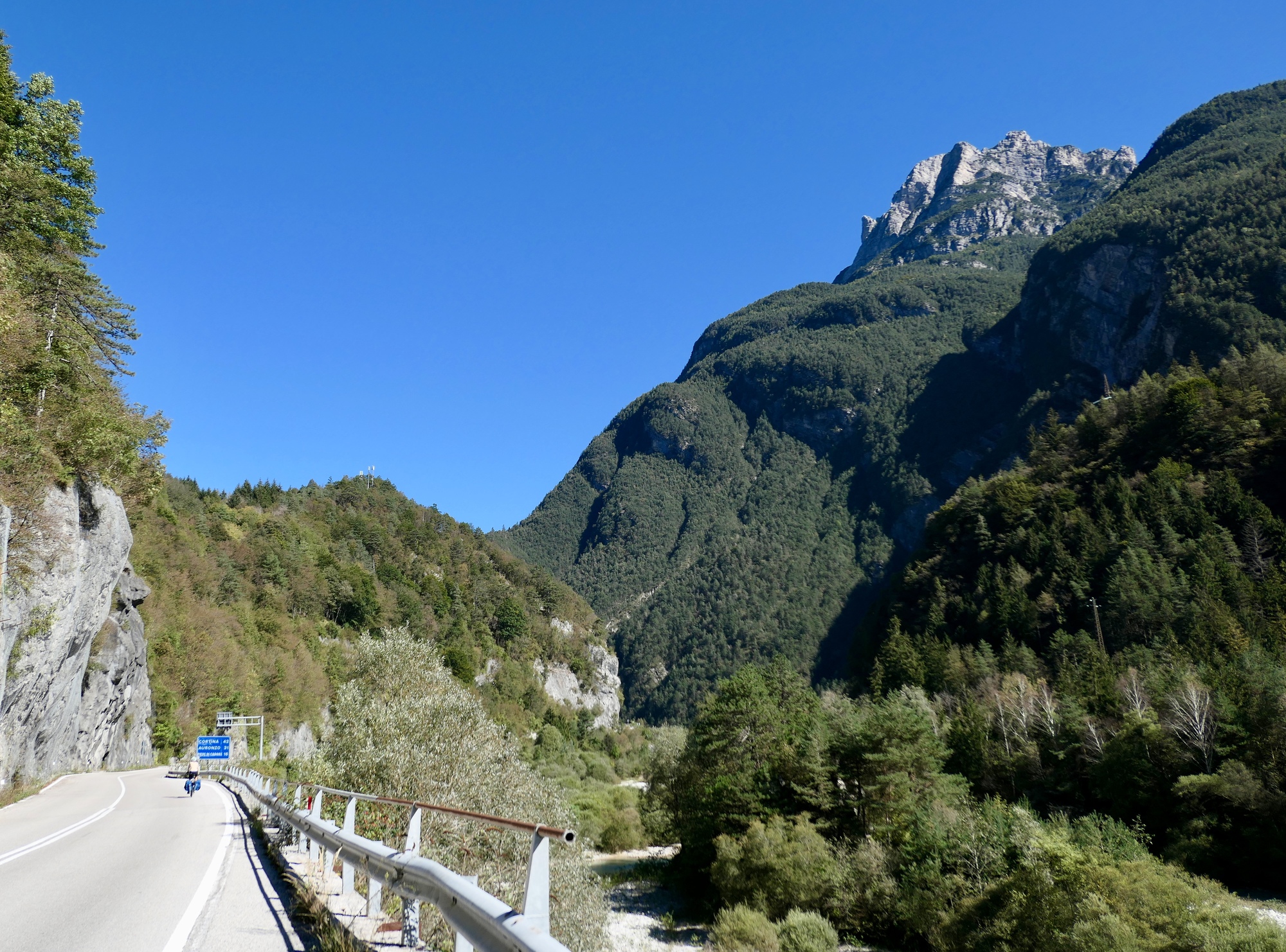 Looking back at Perarolo di Cadore after crossing a large tributary of the Piave. We’re at the base of the day’s only sustained climb - the usual thousand feet in three or four miles.