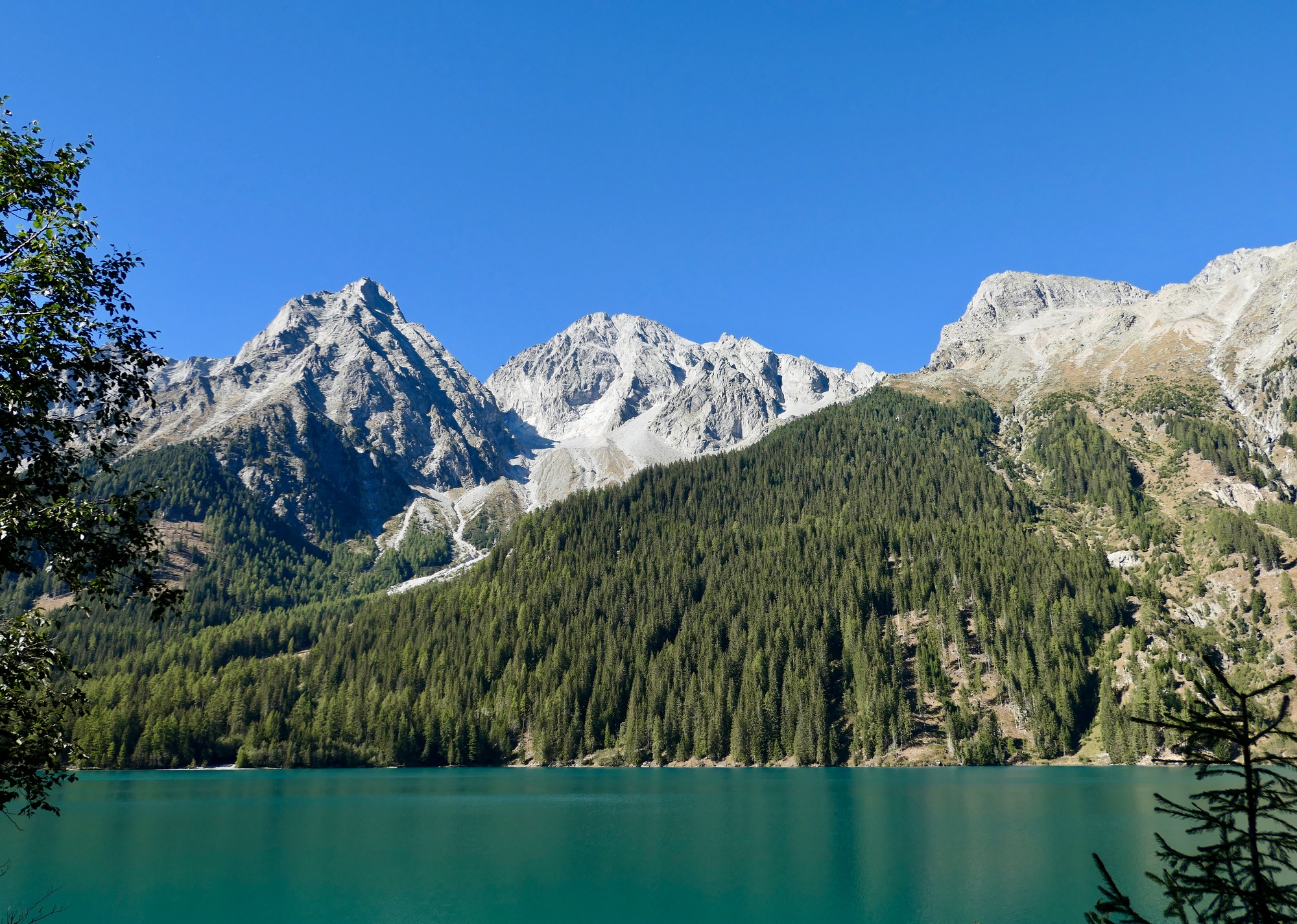 The pass is too far for us today, or we won’t make it back to the hotel before dark. When we come to a level patch and a lovely alpine lake, we feel like we’ve found the natural place to turn back. Anterselva Lake itself surprises us, because there is significant development alongside it and many people are walking around. It seems so remote for so much activity. Later, we learn that it’s a place of significance. The development is a major biathlon center, and in many years is the venue for the biathlon world championships.