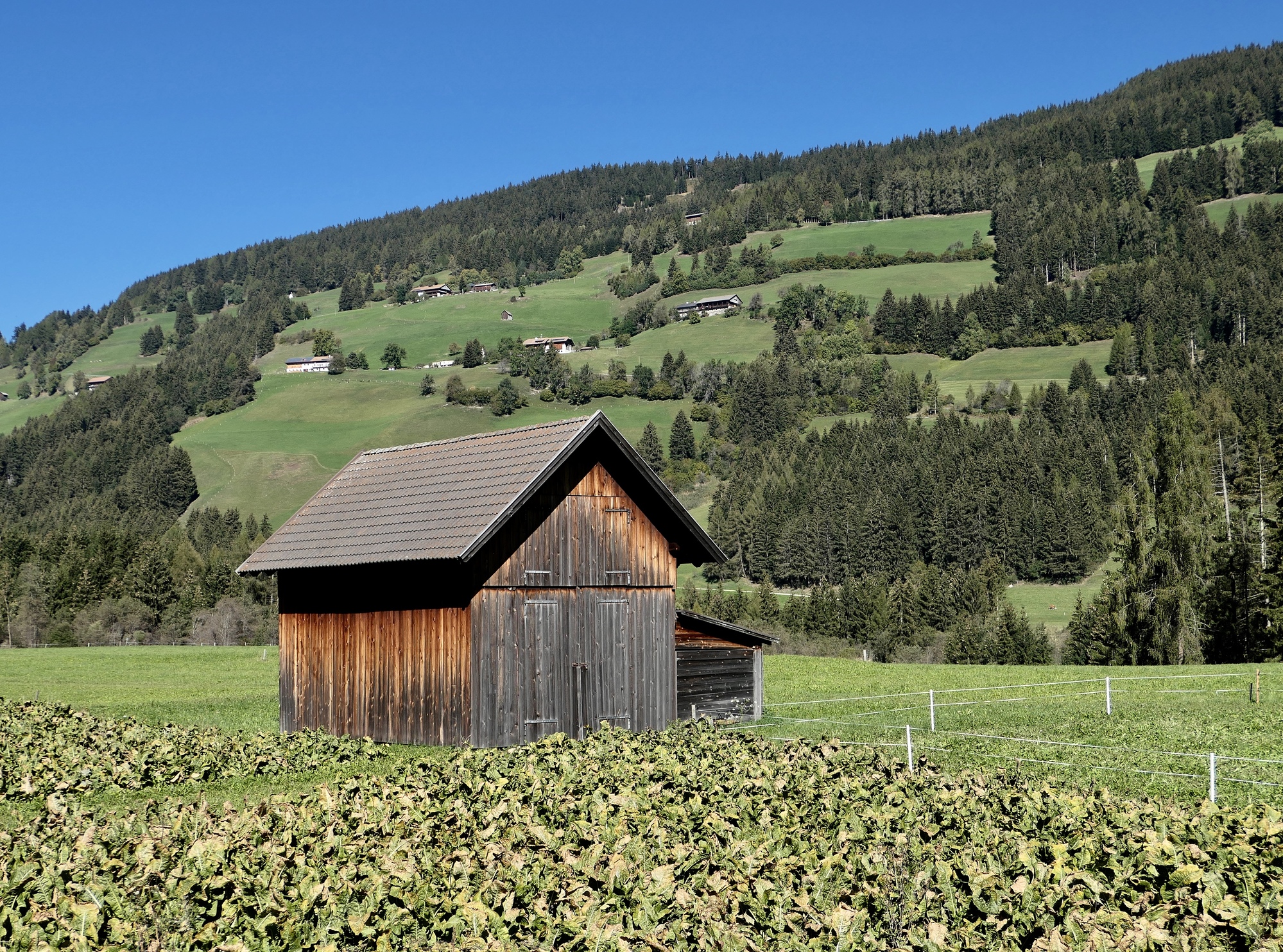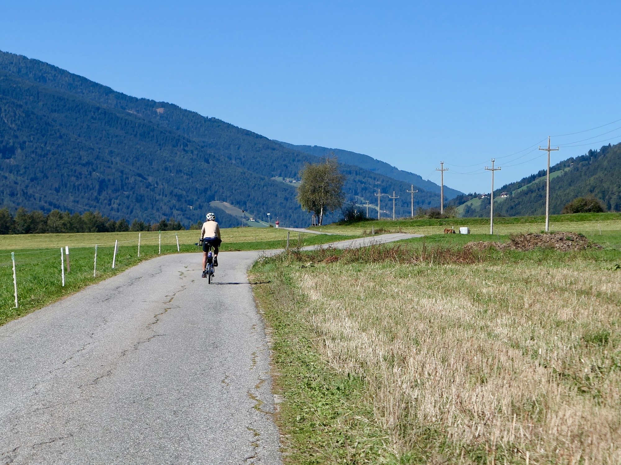 Dobbiaco sits at the high point in the long, east/west Puster Valley. It’s at the watershed - to the east the Drau River runs to Lienz and eventually on to Slovenia; and to the west the Rienz flows to Bressanone and eventually merges into the Adige River. For today’s ride, we’ve chosen an out and back to the northwest. For the first ten miles we follow the Dobbiaco-Brunico bike path west down the Rienz, at first little more than a stream, until reaching the Anterselva valley. This is really beautiful country, and so different from where we were just a day or two ago. We’ll revisit this route when we finally leave Dobbiaco, and continue on downriver to Brunico and then Bressanone. We find the bike route easy to follow, well marked and quiet. A substantial portion of it is unpaved, but its hard, clayish surface is easy to cycle on with our wider 1-1/2” tires.