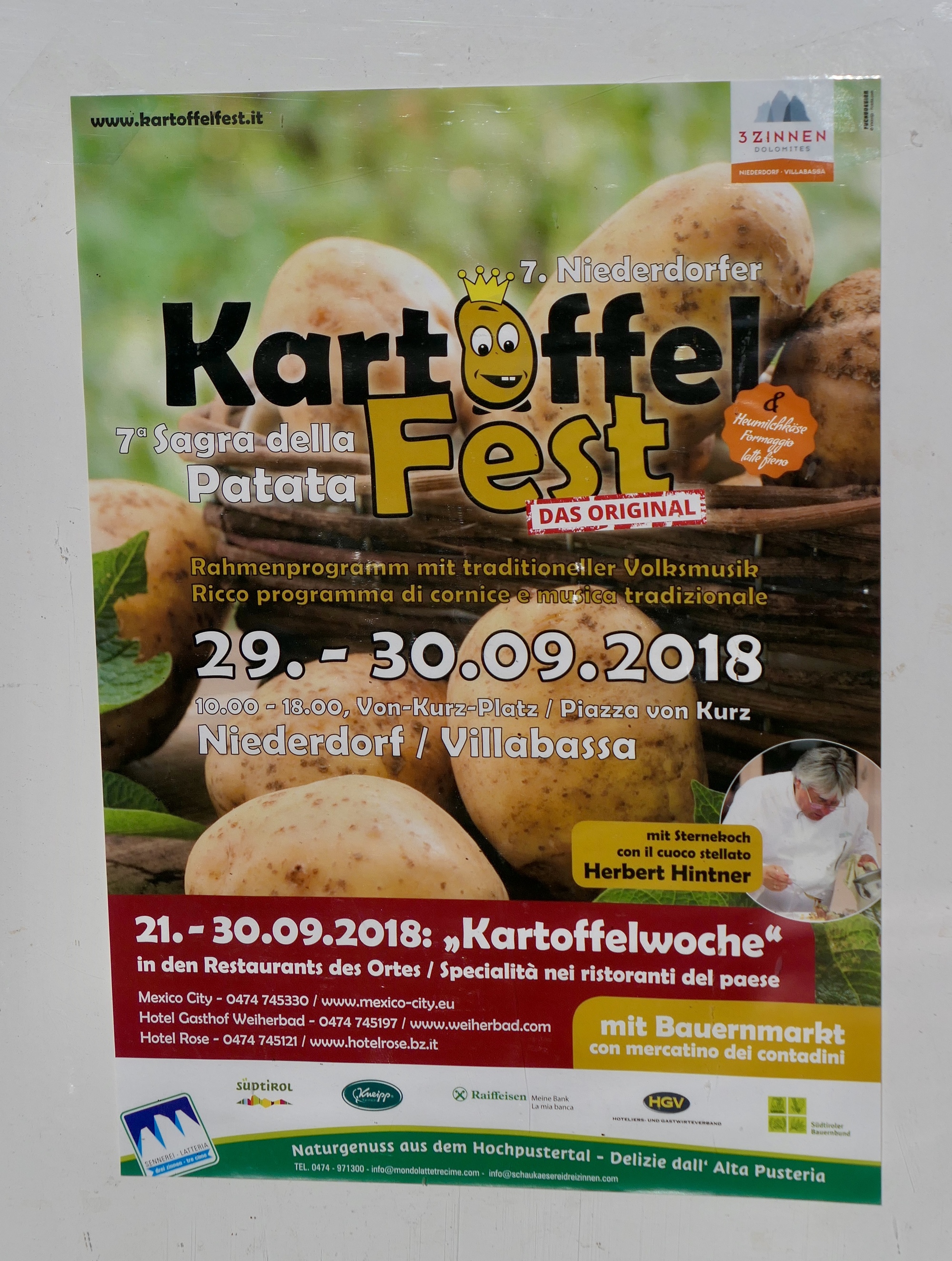We begin following the same route we rode west on two days ago, before turning north up the Anterselva. It’s the same fine ride for twelve miles, but even better because there’s some added excitement: the Kartoffelfest (potato festival) is on this weekend in the neighboring village of Niederdorf. We stop by to share in the excitement a bit, buy some bread, cheese and prosciutto for the day’s lunch, and listening to Elvis croon Don’t Be Cruel over the PA system.