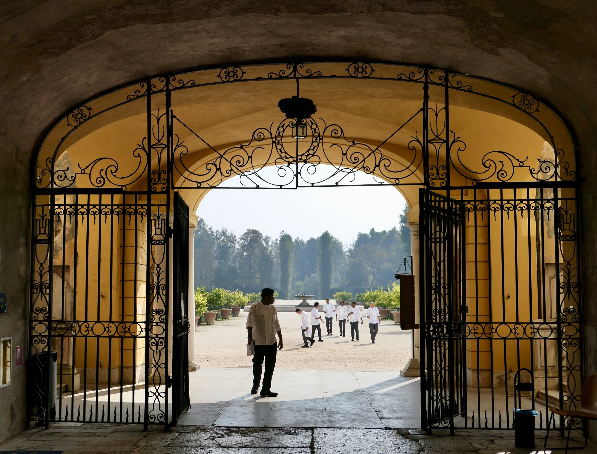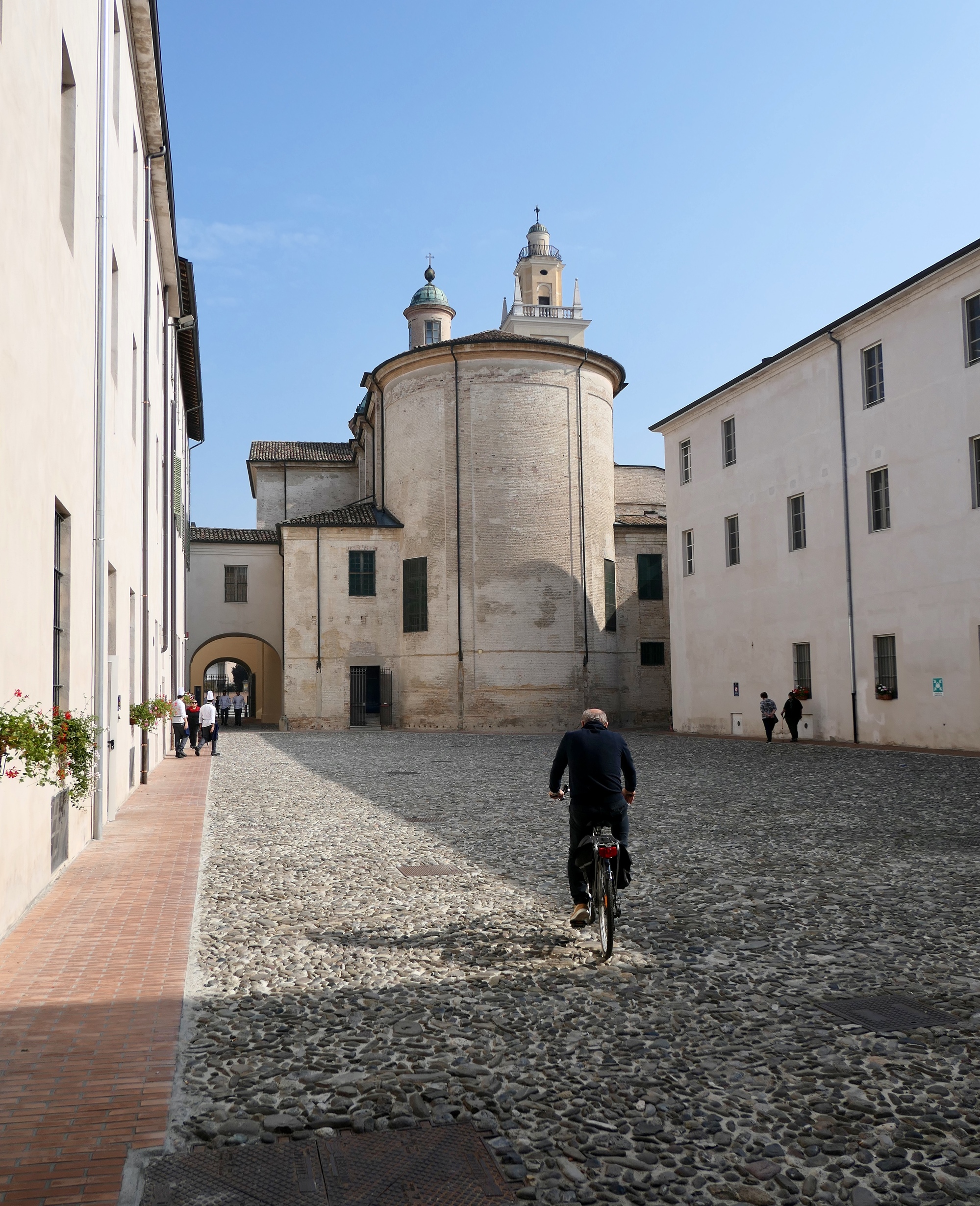 Until we come to Colorno, a small town we’d never heard of and I hadn’t even known was on our route. Colorno, as it turns out, is an important site - the location of an imperial palace, referred to as the Versailles of Parma. It’s expansive, impressive, and even more interesting because there are young chefs scurrying everywhere. The palace is now the home of ALMA, the famed international Italian Cuisine school. As usual, the Wikipedia article gives a better description of he palace and its history than I would.