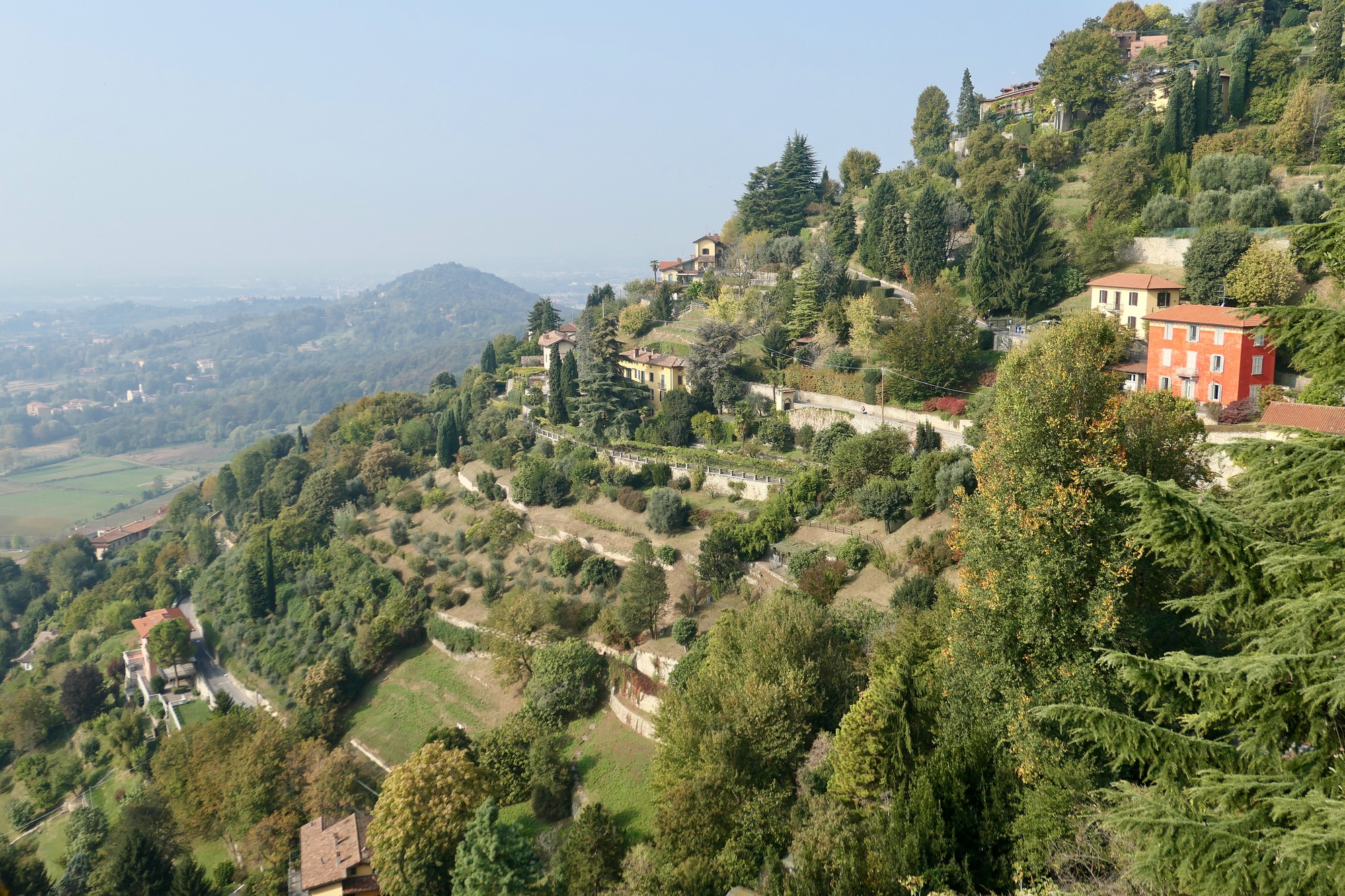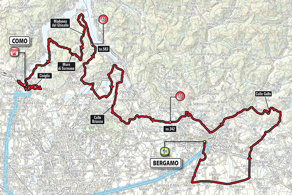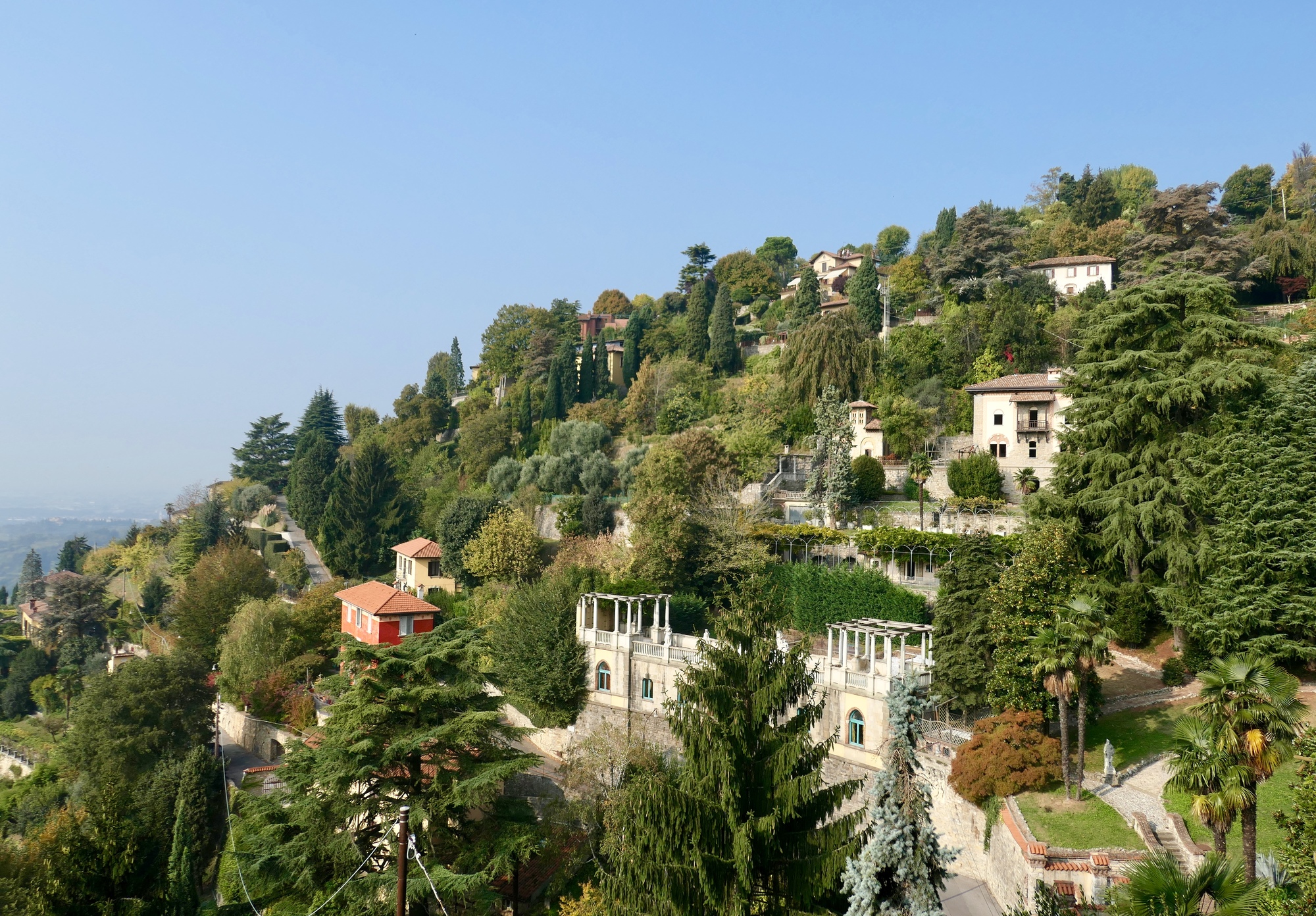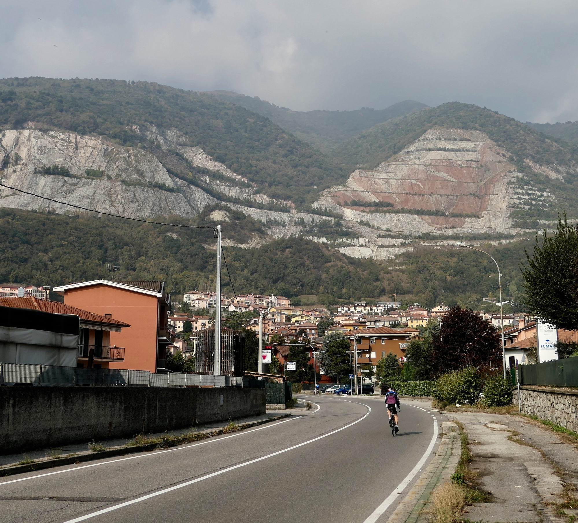 I didn’t figure out what this was until the evening. If I’d known, the whole day would have made more sense. The big surprise this morning was that the hill above Bergamo was crazy with cyclists. We must have seen five hundred of them in the first few miles of the ride. It’s Saturday, and we thought this was just normal weekend cycling activity here and were highly impressed. Actually though, it was surely associated with the race, which began in Bergamo this year. And, I’ll bet that the team of cyclists I saw yesterday in Piazza Vecchia were up here for the race too. Maybe it was one of the teams entering the race, out on a warmup run.
