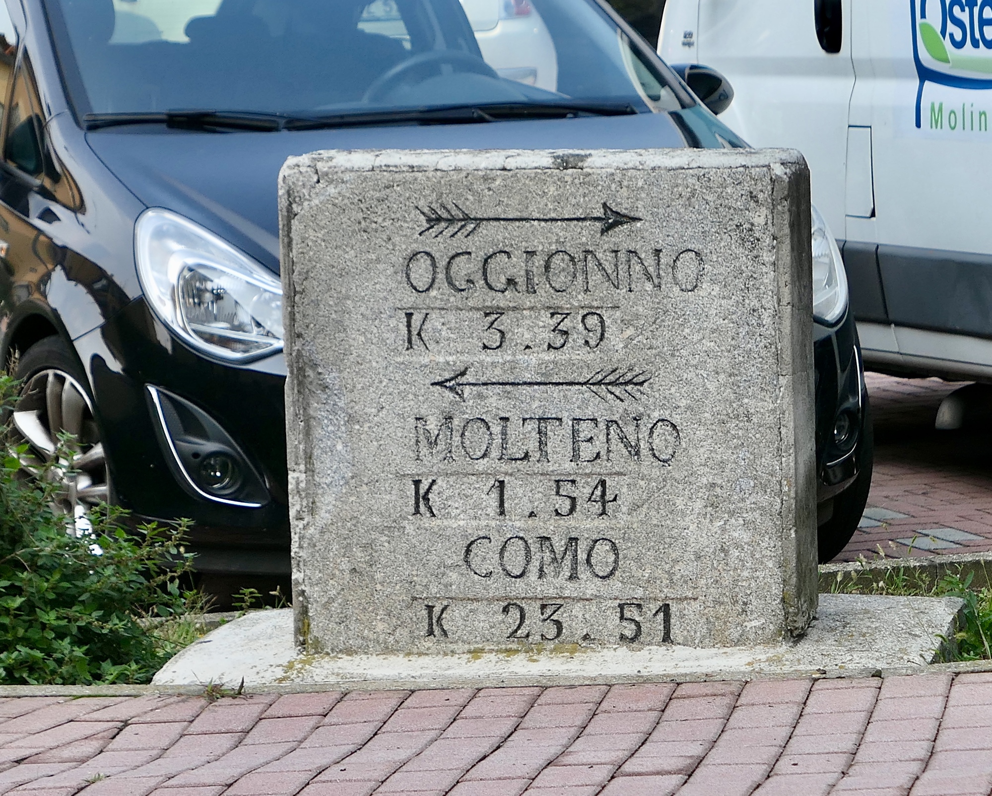 The bad thing about this is that we often don’t really know what we are looking at, and miss out on things we didn’t know to look for. Today was a case in point. Midway through the ride, we crossed paths with the 1918 Giro di Lombardia, a one day race that is one of the high points on the professional cycling calendar. We knew something was going on, because spectators were lining the street and traffic control police were about. Soon, a pack of half a dozen bicyclists blew by at great speed, fortunately just a minute after we parked our bikes and got off the road. Then, nothing for a few minutes, although something was obviously still happening because no one was going anywhere. Then, some motorcycles with lights flashing; then another pod of racers; and then some team cars careening down the road after them. Then, nothing for several minutes. Then, many more motorcycles; and a huge peloton; and many more team cars. Then a dozen ambulances. Then a steady jam of normal traffic that didn’t abate for twenty minutes - the cars that had been held up until the race passed by.