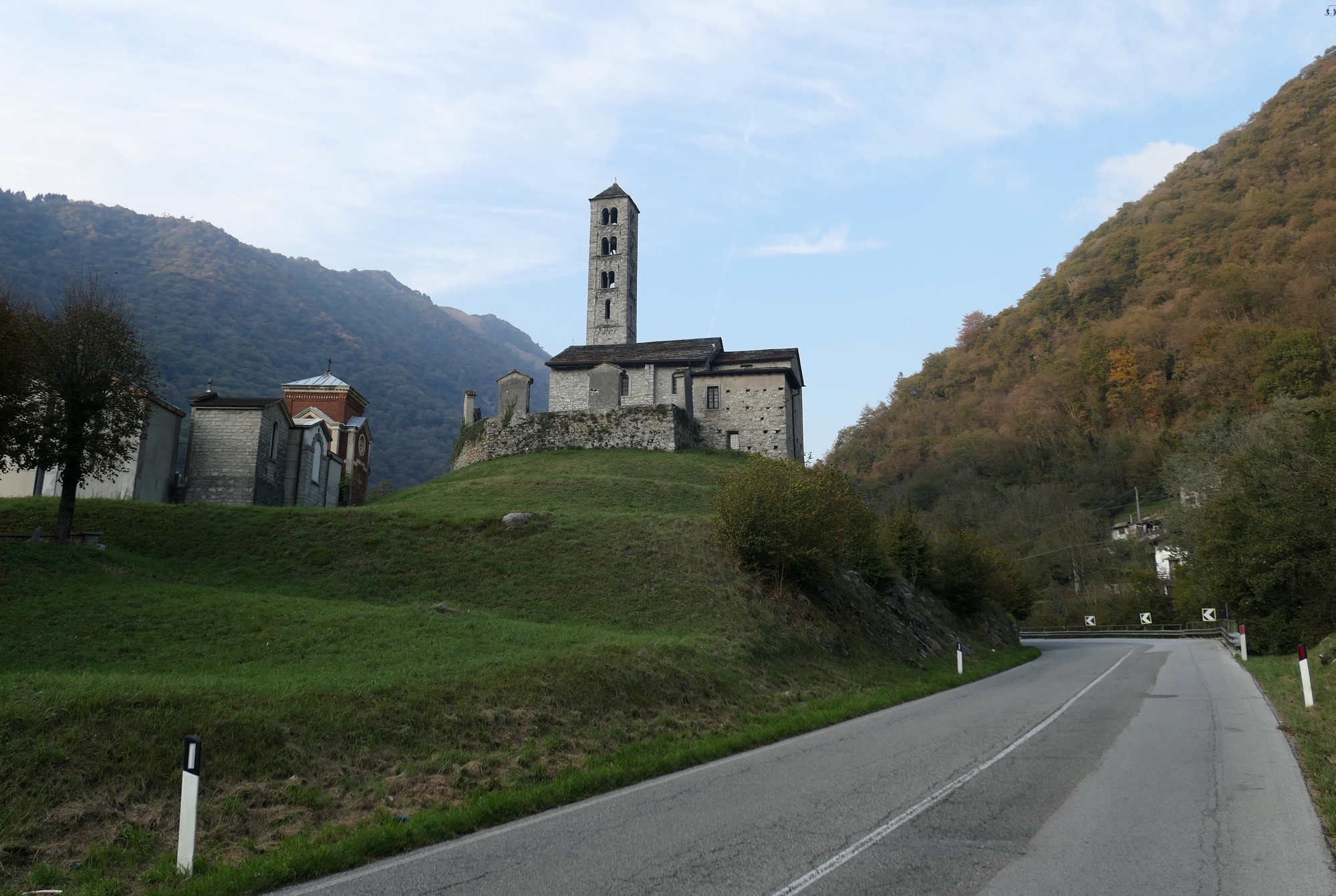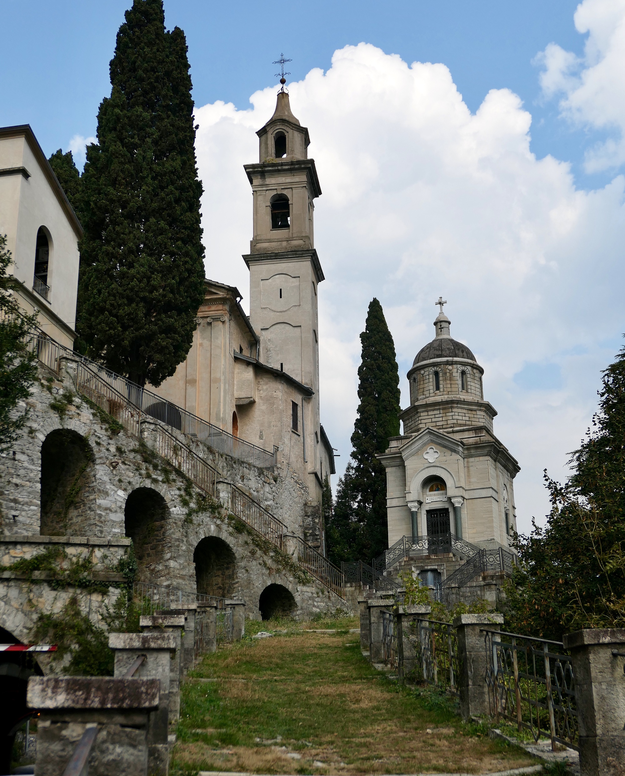 The beautiful Church of the Madonna, at Brienno, stands at one of the nices parts of the ride. For a few miles we’re on the remains of the old highway, while the main road tunnels through a cliff. Our road tunnels almost beneath the church, which is dramatic seen from both directions.