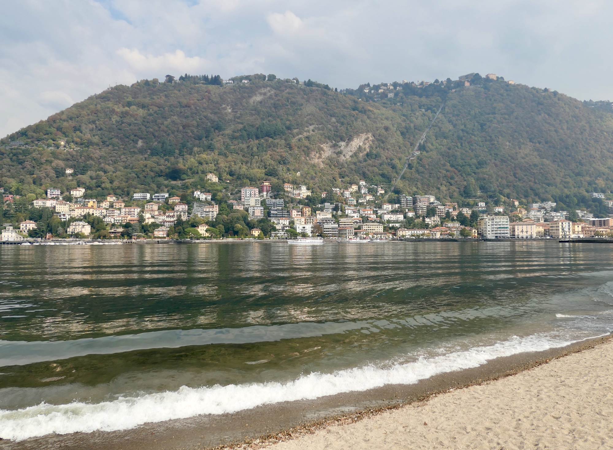 In Como we stop at a supermarket and pick up lunch materials, and then take them over to the attractive lakeside park where we sit on the wall, taking in the warmth of the sun, the fine views, and of course the lunch itself.