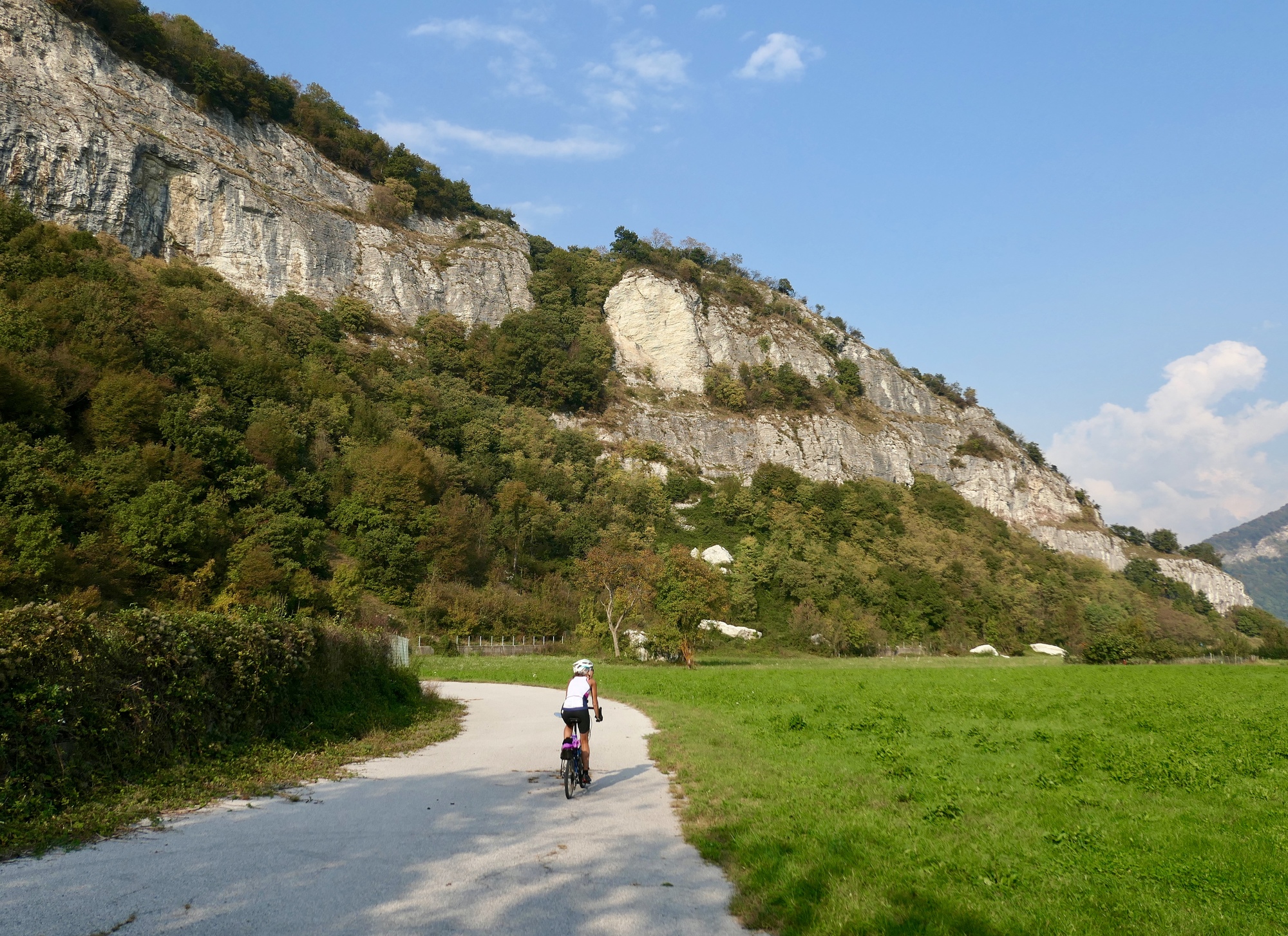 Our lunch spot, sitting on the wall at the lakeshore park in Como. After this we leave the lake and head for the hills.