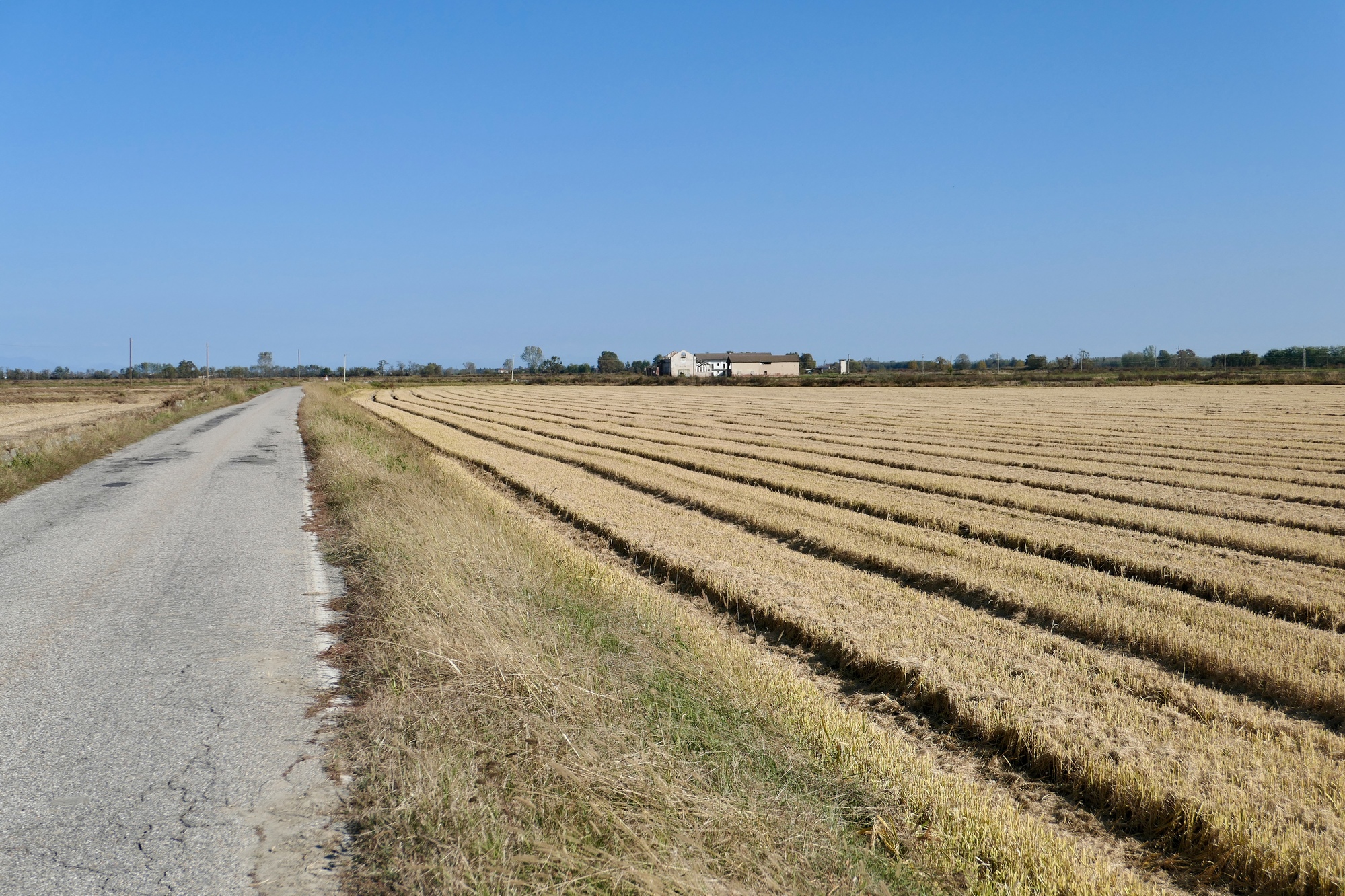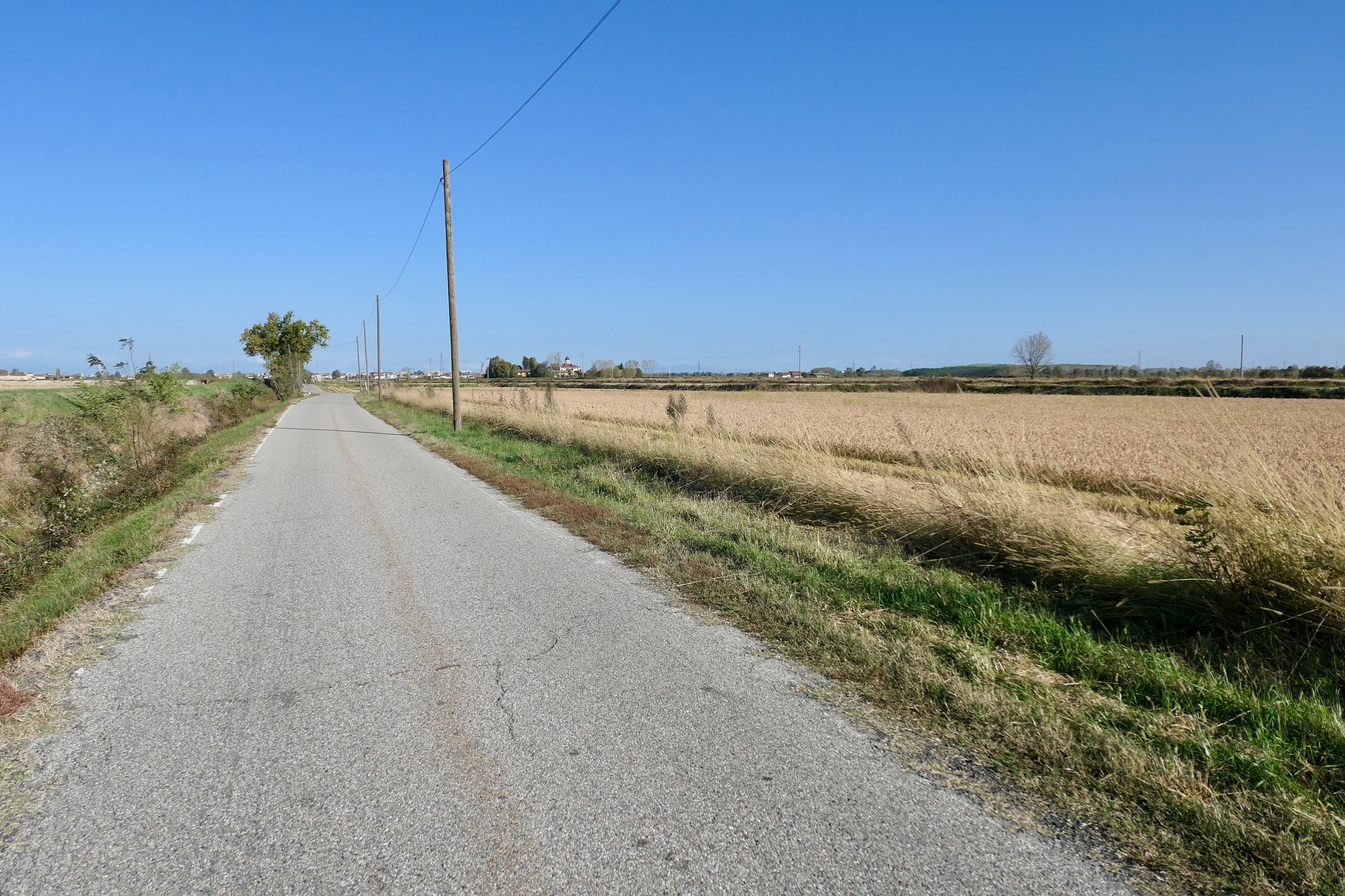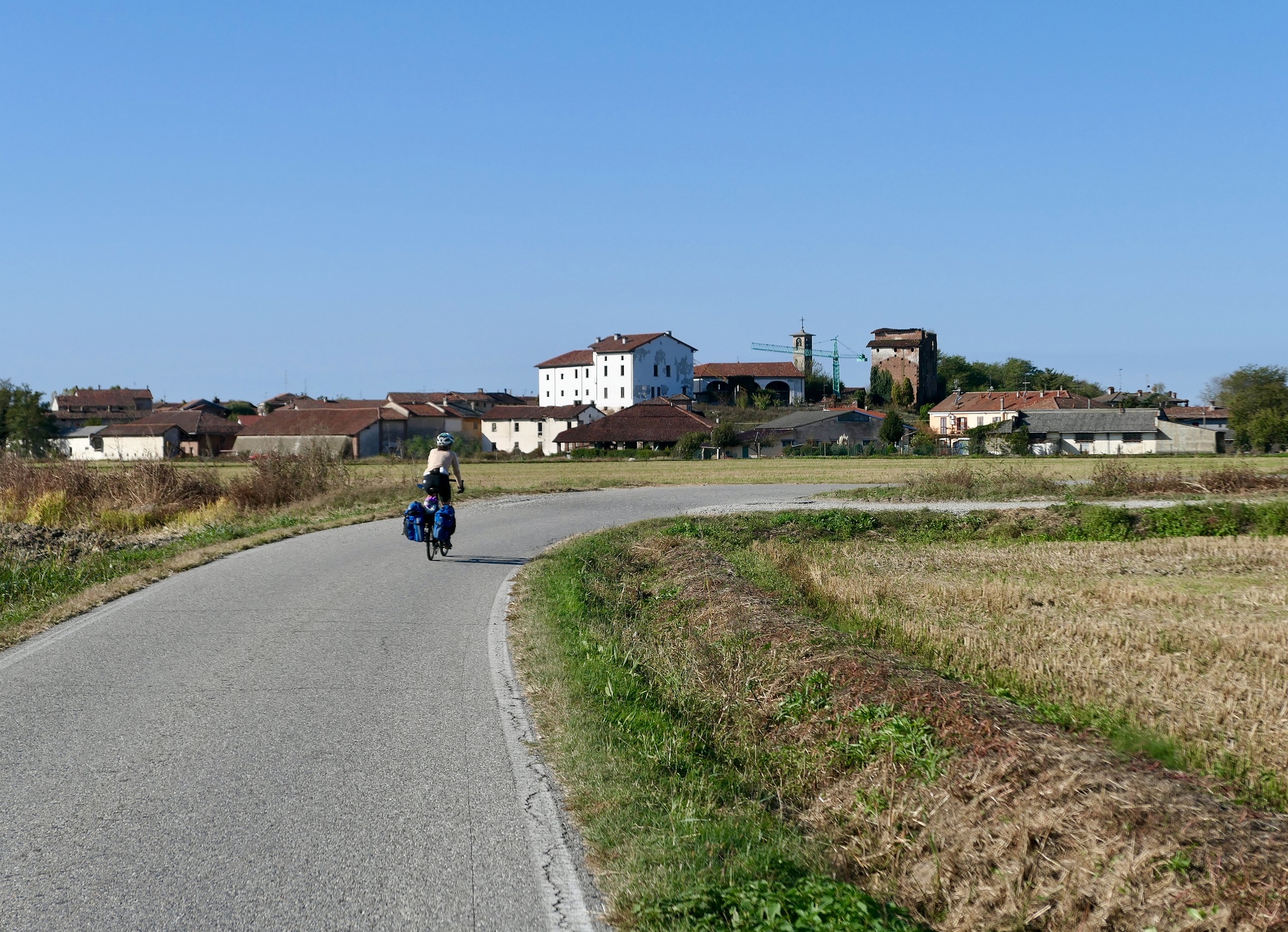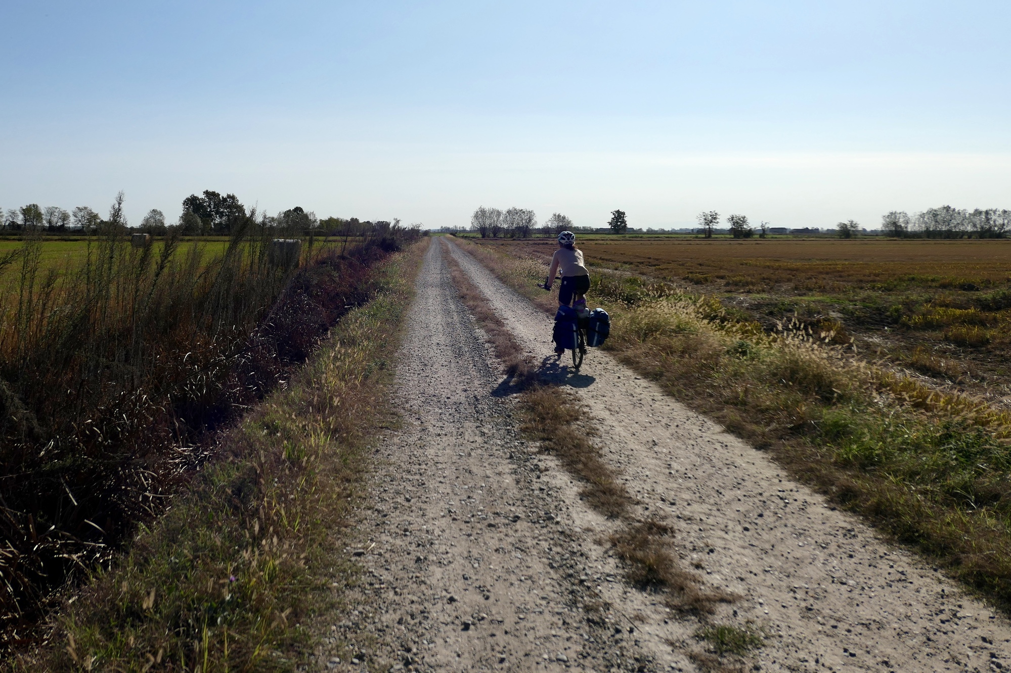 The southern part of the day’s ride parallel’s the Sesia River, which we never see until we cross it because the land is so flat. The plain is networked with irrigation channels though, which we often rode beside.