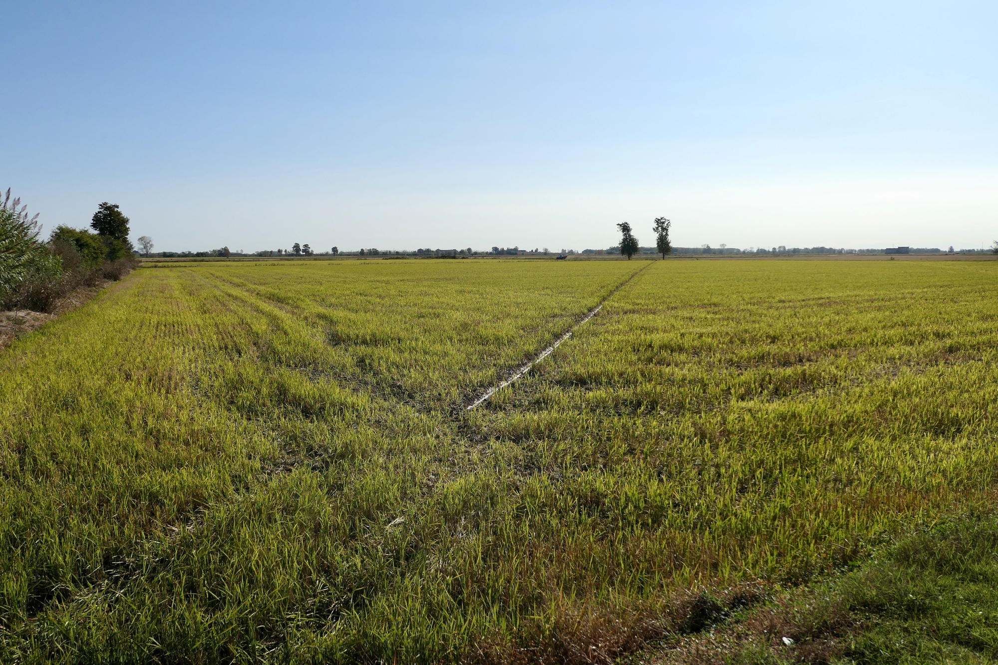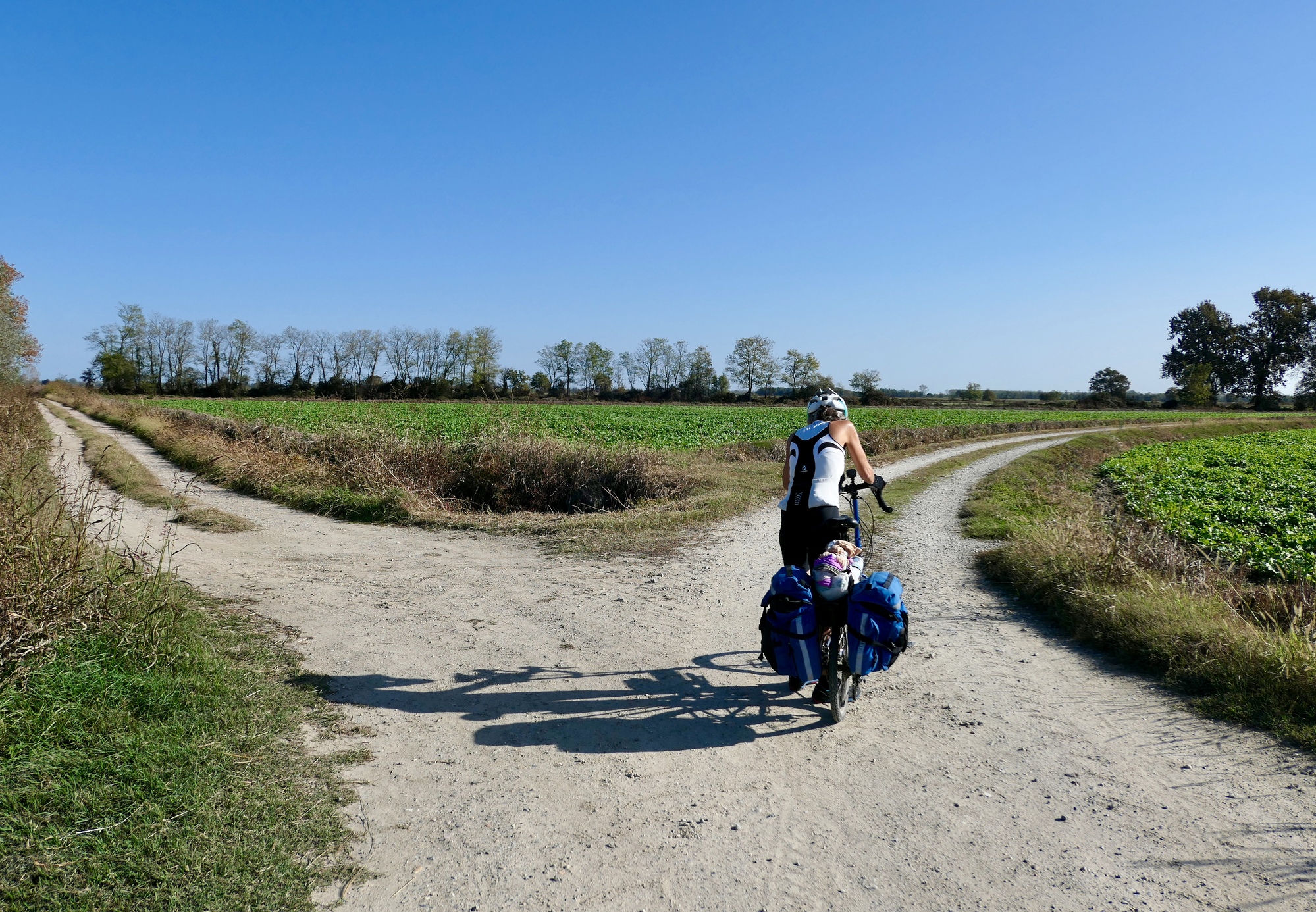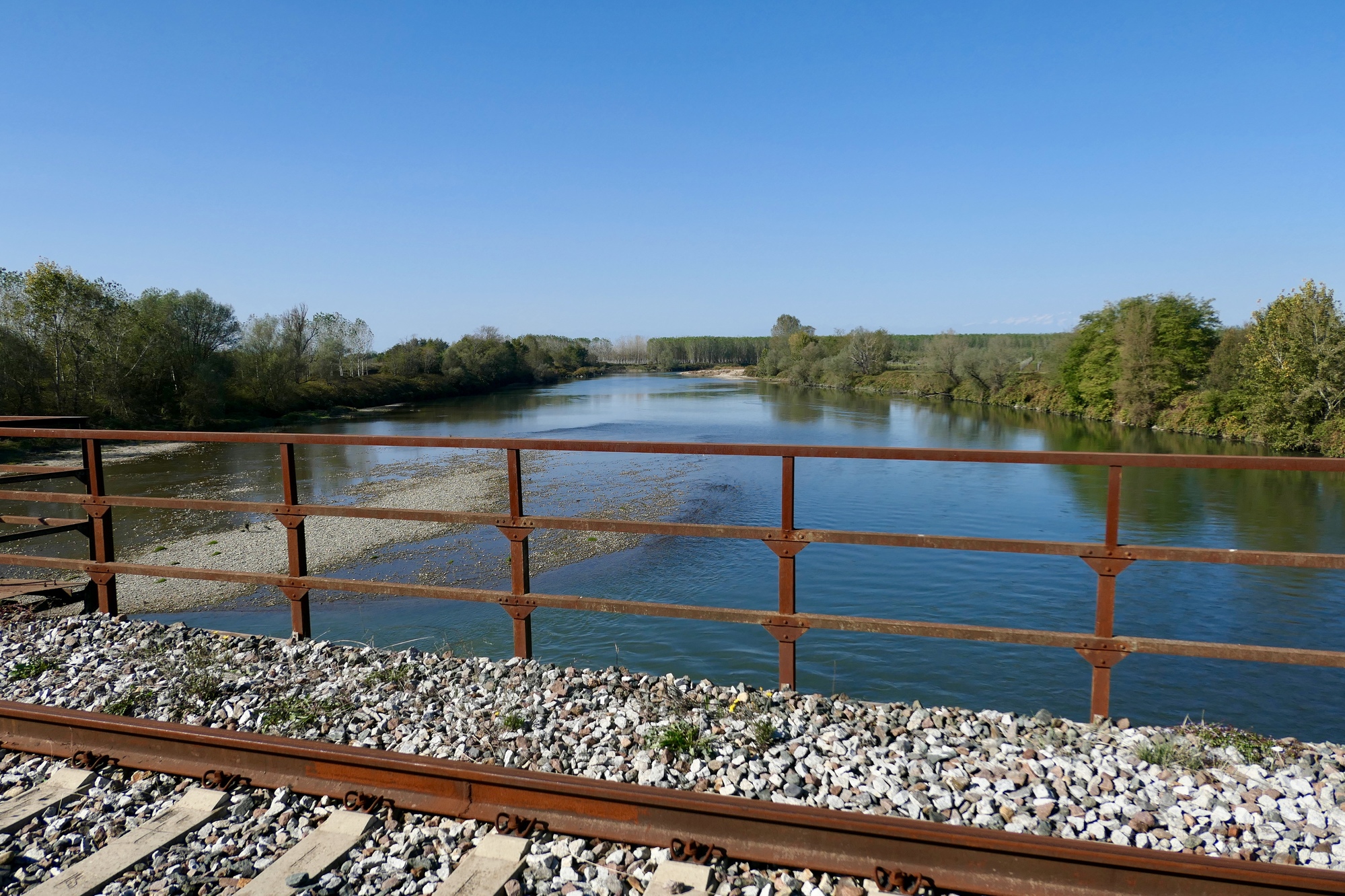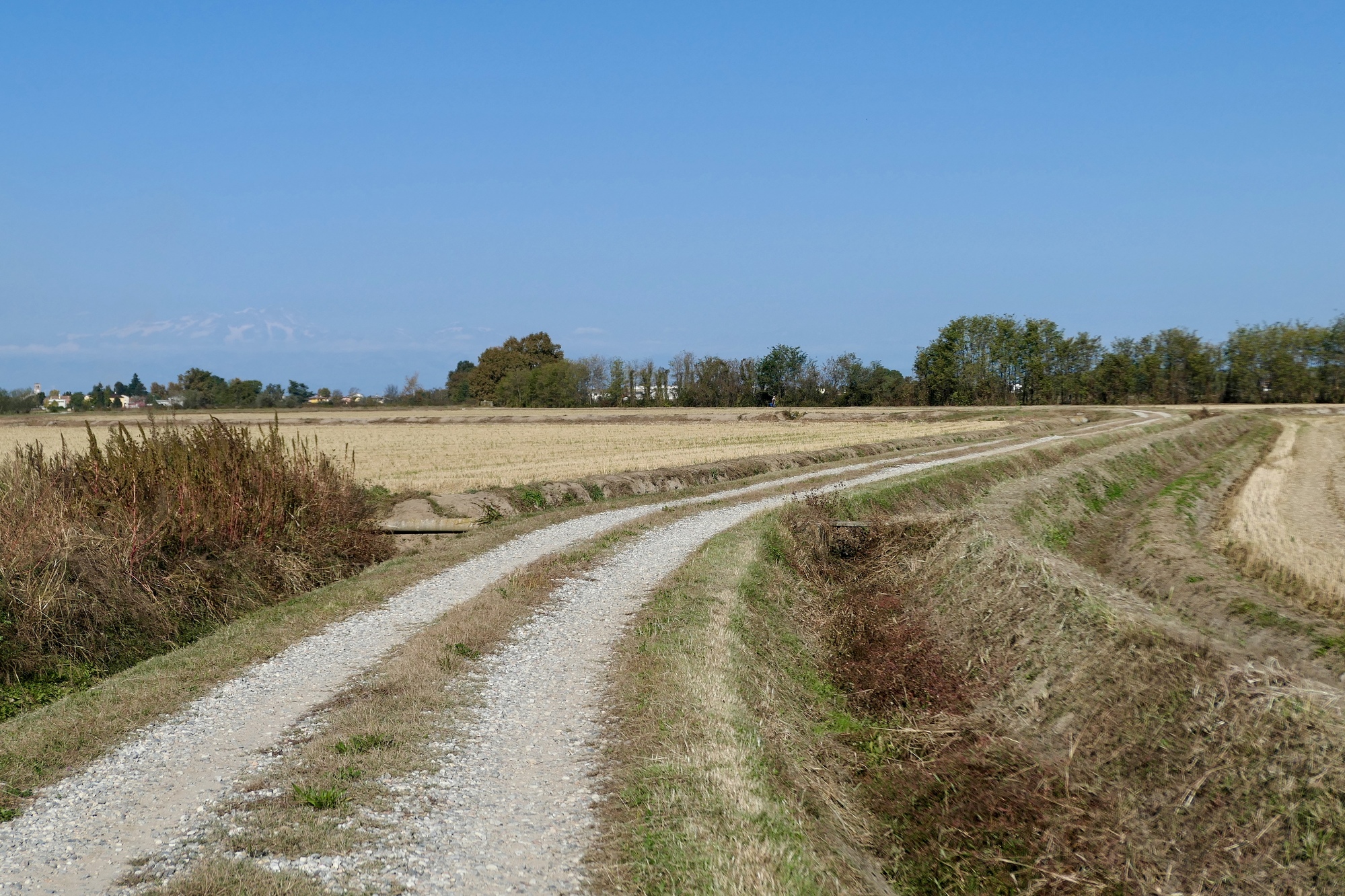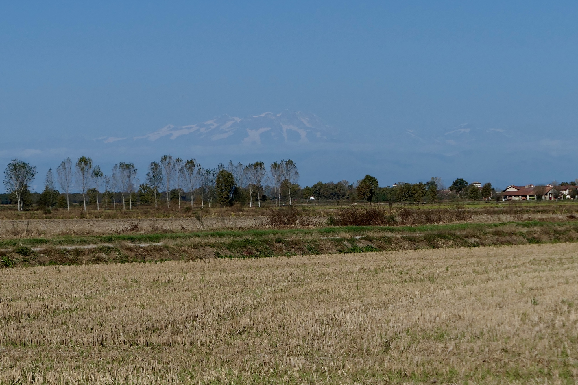 The southern part of the day’s ride parallel’s the Sesia River, which we never see until we cross it because the land is so flat. The plain is networked with irrigation channels though, which we often rode beside.