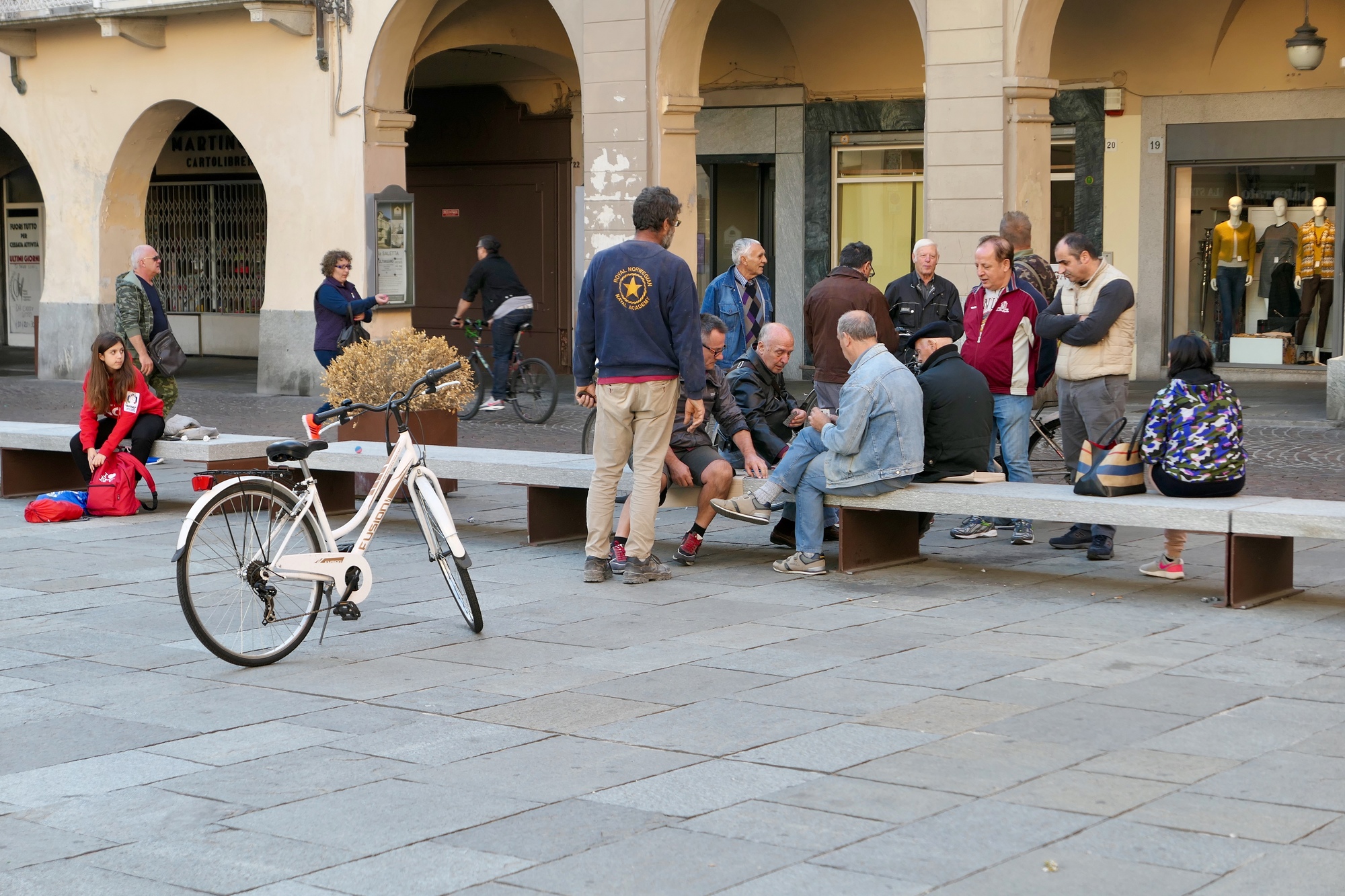 Mostly though it just looks like an authentic working town, and probably a bit less prosperous than most places we’ve stayed in Italy so far. I don’t think we saw anyone else here that looked obviously like a tourist. It was appealing and refreshing to walk through the small central piazza and just see signs of people going about their lives - codgers lined up in the sun, card players, shoppers returning home with their wares by bike.