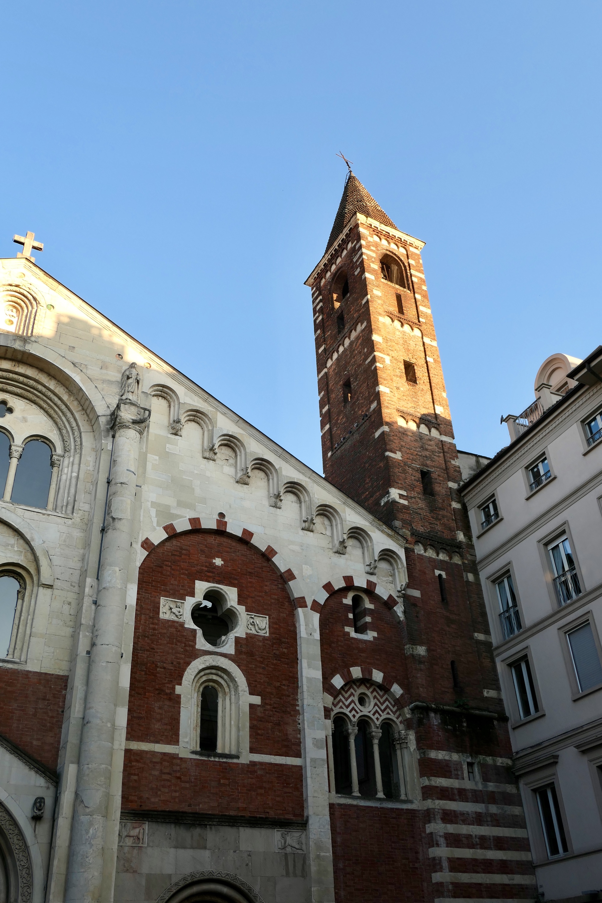 In the Casale Monferrato cathedral. We would like to have entered and walked around, but a service was underway. We’ll try to return in the morning for a better look before leaving town.