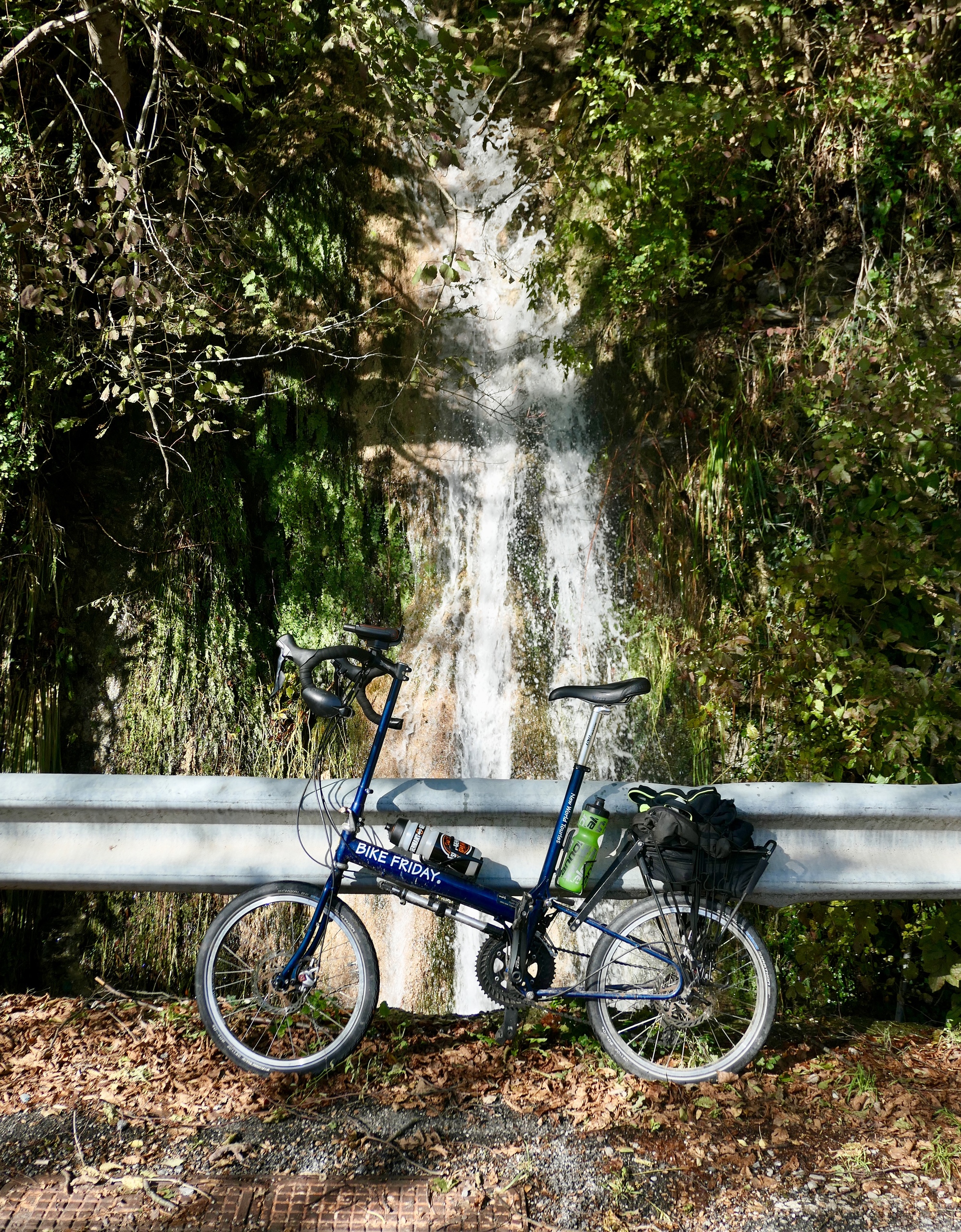 It’s really a lovely ride, and an eye opener for me. I’m surprised at how quickly we escaped the city and found ourselves in the rich, rugged hills of Liguria. I especially enjoy the many small waterfalls we pass as we climb - probably twenty or thirty of them. They’re closely spaced, so we’re almost always within earshot of one. As the sounds of one start to fade out shins us, we hear the next one up the road. It almost feels like we’re biking along a stream.