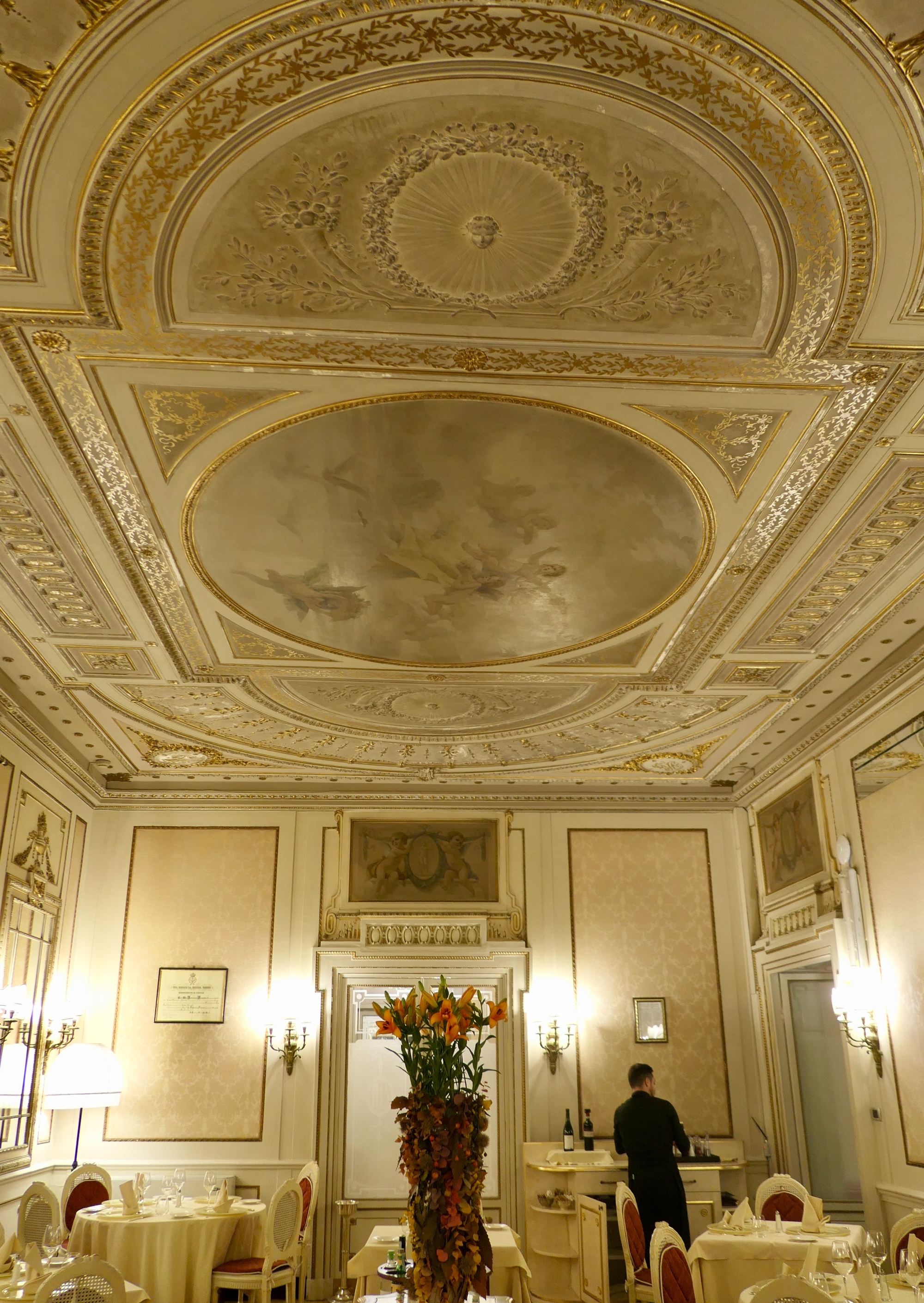 In the evening, we decide to celebrate a bit and splurge with a dinner at our palatial hotel. Rachael saw a dish on the menu that sounded irresistible, and she won’t be talked out of it: sea bass roll, with tomatoes, olives and pesto. The real star of the meal though was the appetizer - tapenade, served in an edible shell of parmesan crust.