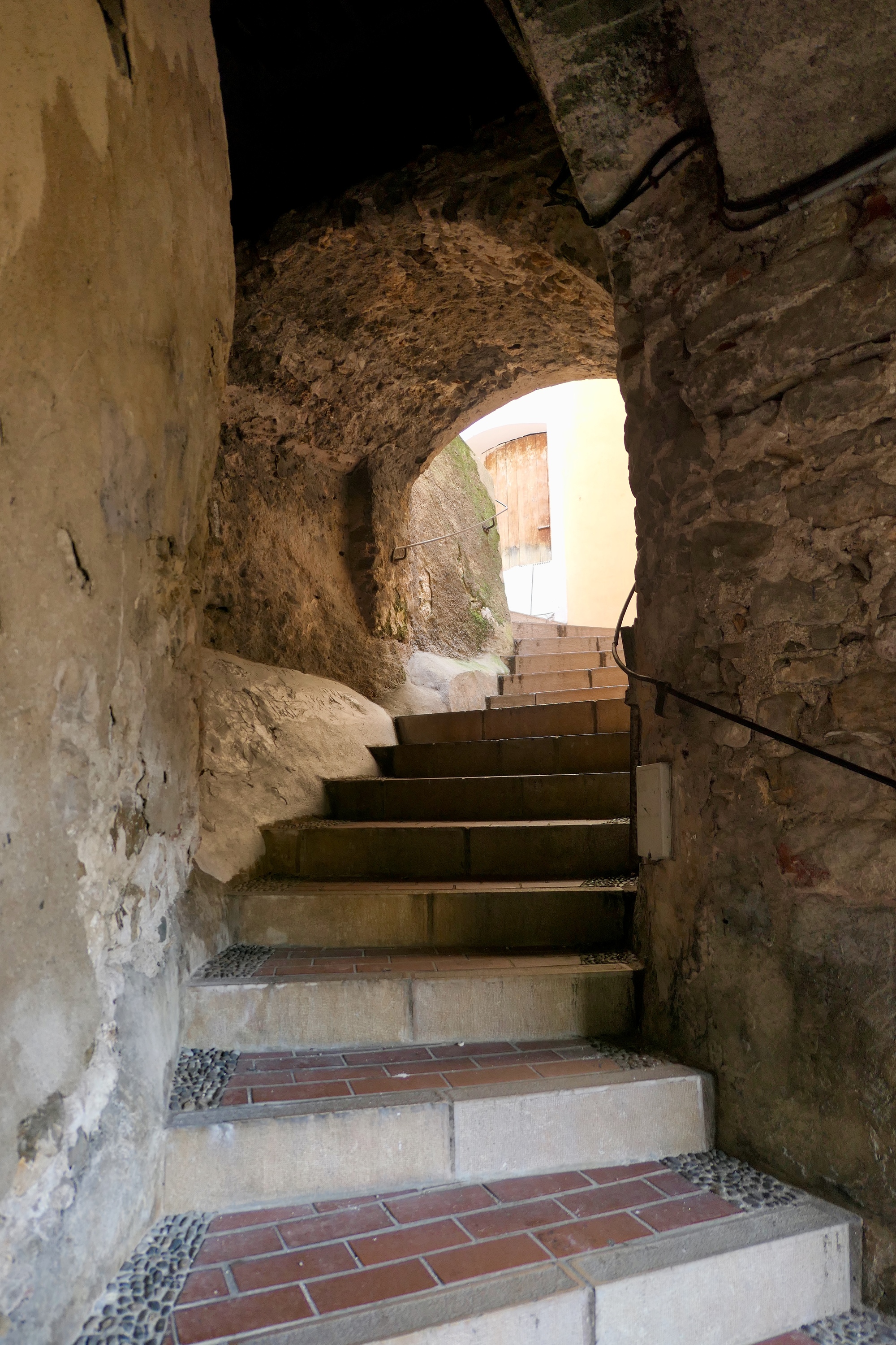 After about a half hour I reach the base of the old town. There are several avenues in, but I love the zigzag staircase that weaves up from the waterfront toward the base of the Basilica. About part way up, I break off to one of the alleys that branches off it, and let myself get lost a bit. It’s very easy to do - the passageways are as convoluted and mysterious as any place I know, with branches that dead end and others that end in narrow, low passageways to the next lane (it helps to watch for signs, and know the difference between an impasse and a traverse). It’s all much too narrow and convoluted for cars, motorcycles or even bicycles to navigate.