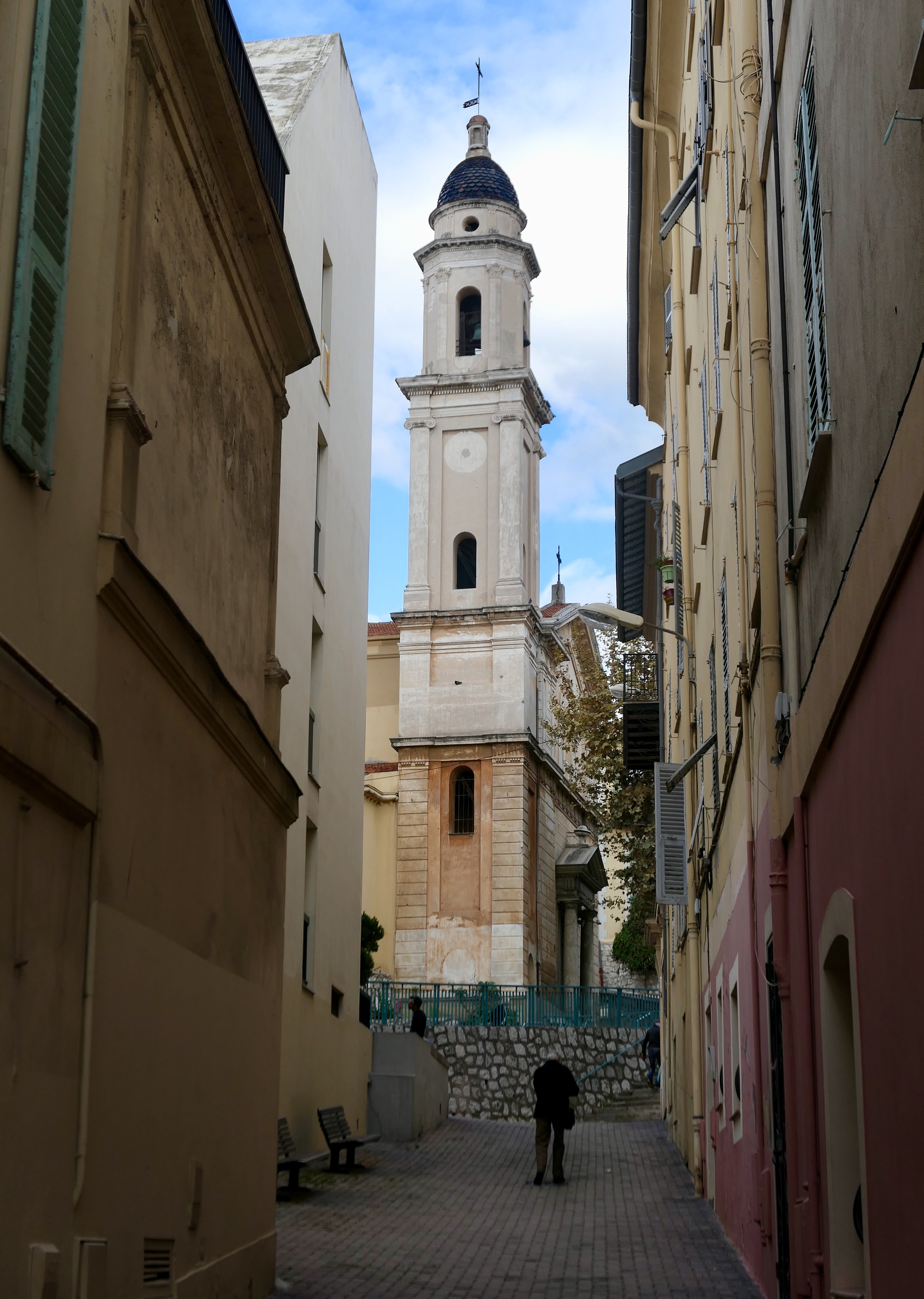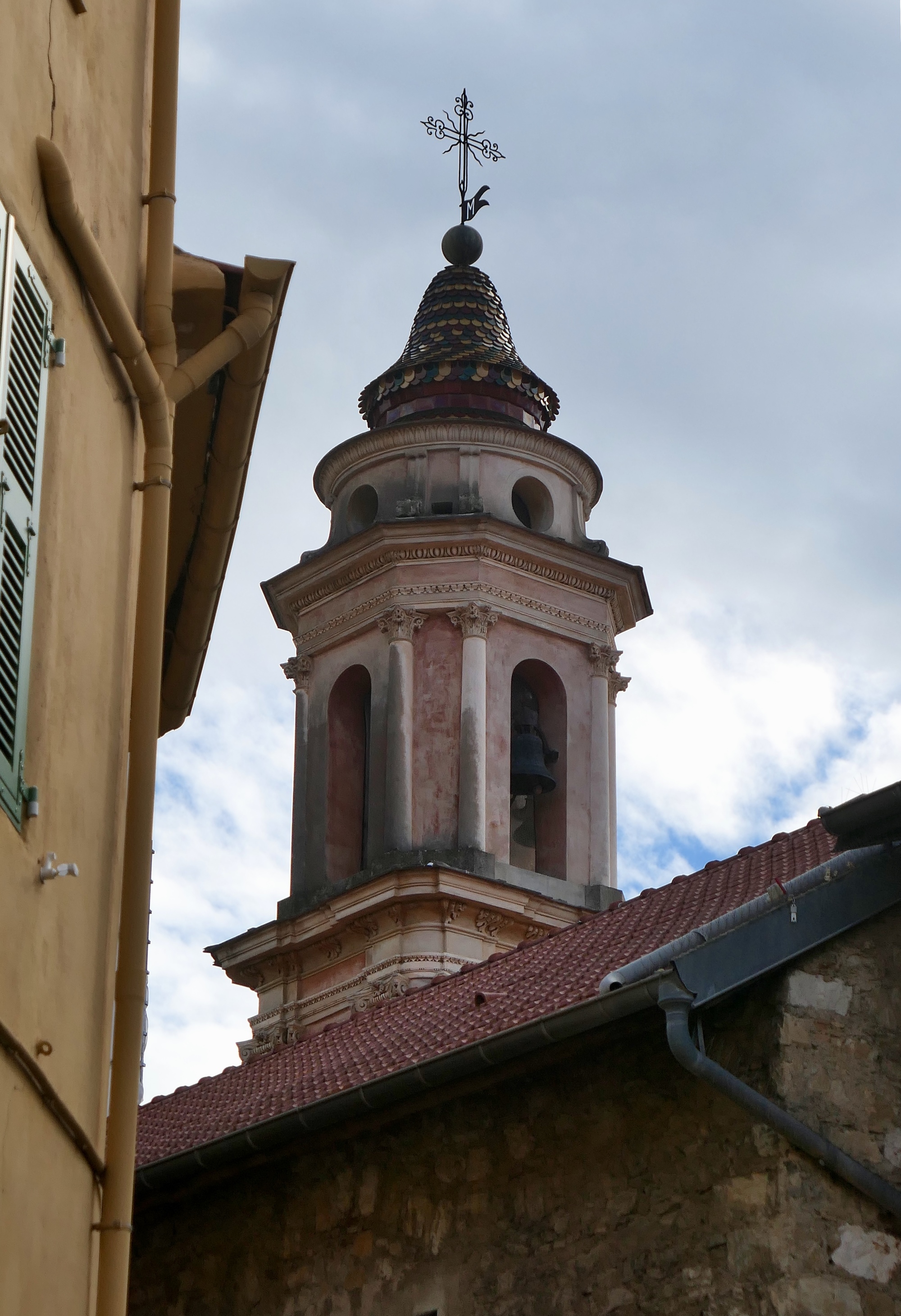 Eventually I’ve seen enough and work my way back down the hill and to the waterfront. Along the way I pass beneath the beautiful Basilica and look up wistfully. I love this structure - we had a photograph of it from our first visit here hanging on our wall for twenty five years. Now though, it’s completely wrapped in scaffolding and plastic. I was looking forward to seeing it once more, so this is a disappointment. It’s under restoration, the project not due to complete in October of next year. With luck, I’ll still get another chance some year down the road. Menton is worth a fifth visit.