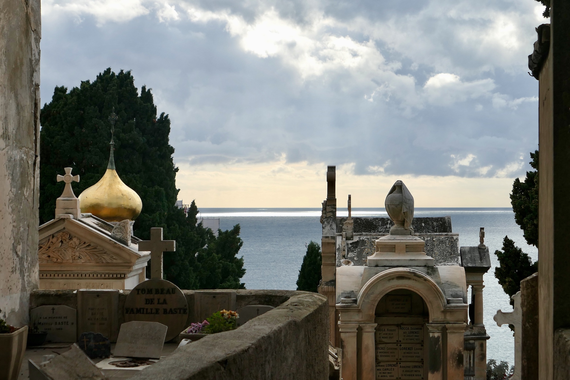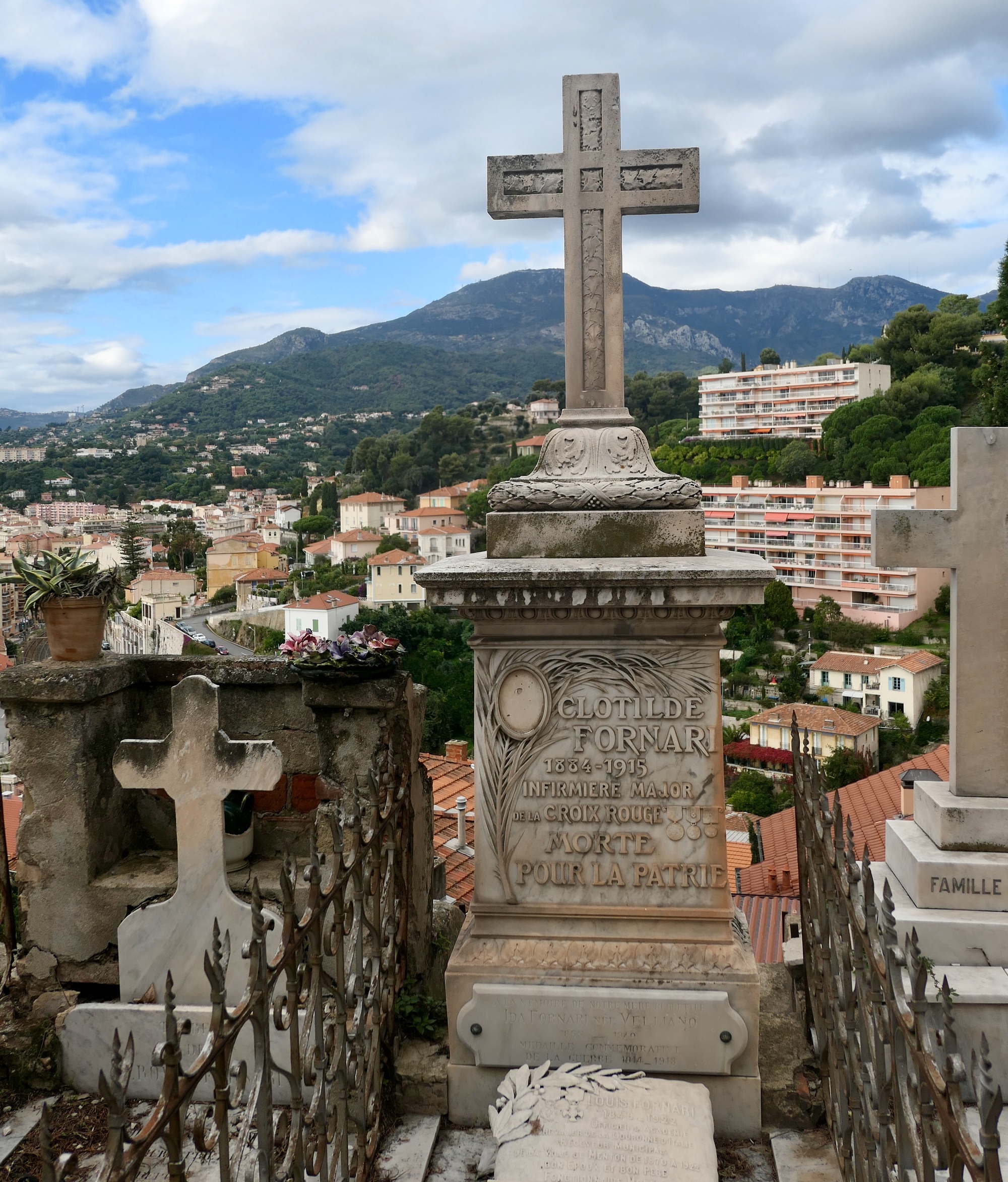 Mostly though it is the cemetery itself that is special, by what it seems to show about Menton, who passed through and ended their days here, and what life may have been like over the past two centuries. It has a very international feeling, with gravestones in many different languages and scripts - Russian, Danish, Polish, British, American, New Zealanders, an occasional Asian. Well-tended family plots housing members of the same clan over generations spanning almost two hundred years. Gravestones with exotic inscriptions describe illustrious military careers in the Hussars, in the Far East, in the Red Cross. It all is so atmospheric, historic, and quite moving.