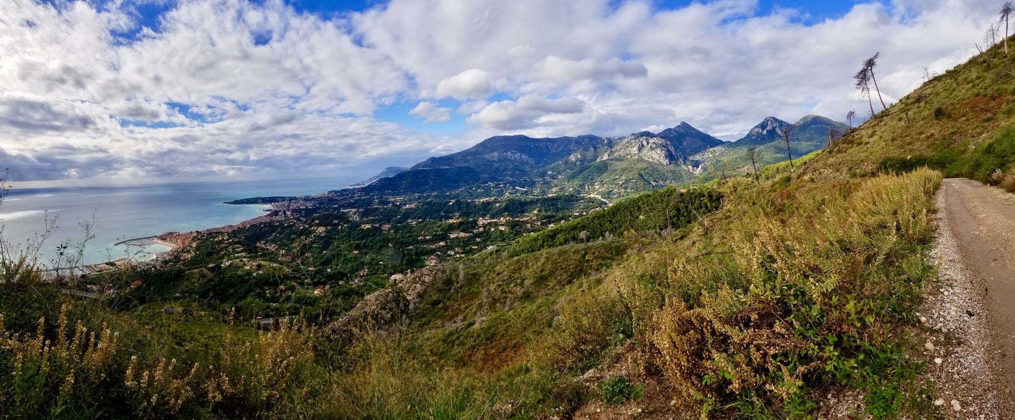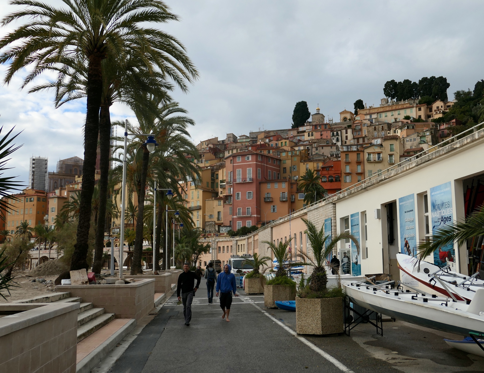 Well, this was a great day. Surprising, because it didn’t include any bicycling. We had a nice ride in mind, a pass climb up north - Menton is the Mediterranean end of the Route of the Grande Alpes that runs along the spine of the Alps from here to Geneva, so we thought we’d just bike uphill for as far as seemed wise and then turn back. Looking out our window at the solidly overcast sky and then at the day’s weather report though, we talked ourselves out of it and spent the day on foot instead.