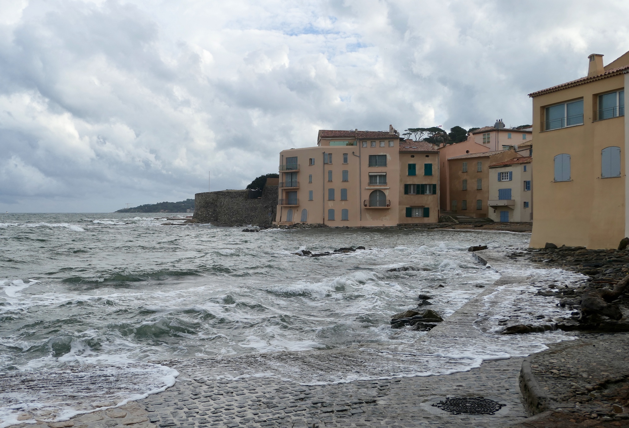 Saint-Tropez, seen from the coastal walk. The shot of the submerged walkway taken earlier in the day was taken on the opposite side of these buildings.
