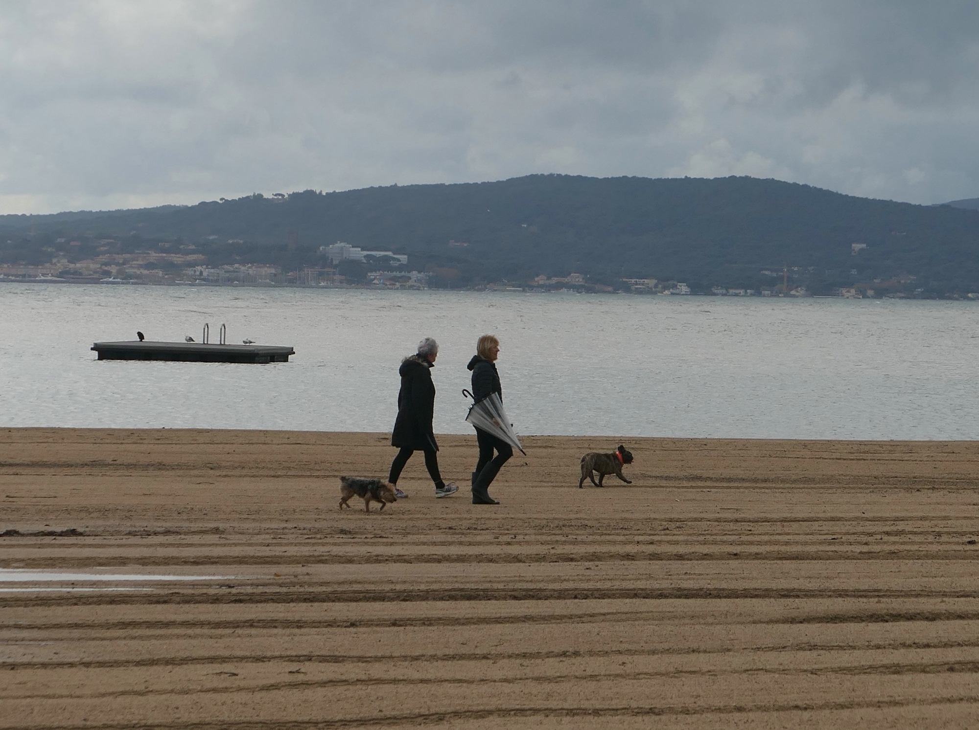 It was raining this morning, and rained hard in the evening; but surprisingly it stayed dry nearly all day today. Expecting to get wet, we left the bikes in the garage and took the short ferry across the bay to Saint-Tropez instead and spent the whole day exploring the famous village. No biking, but an excellent day nontheless. We’re changing our standards a bit now that we’re on the road for such along period. The important thing is the quality of the day, not the number of miles we fit in. This was definitely high quality.