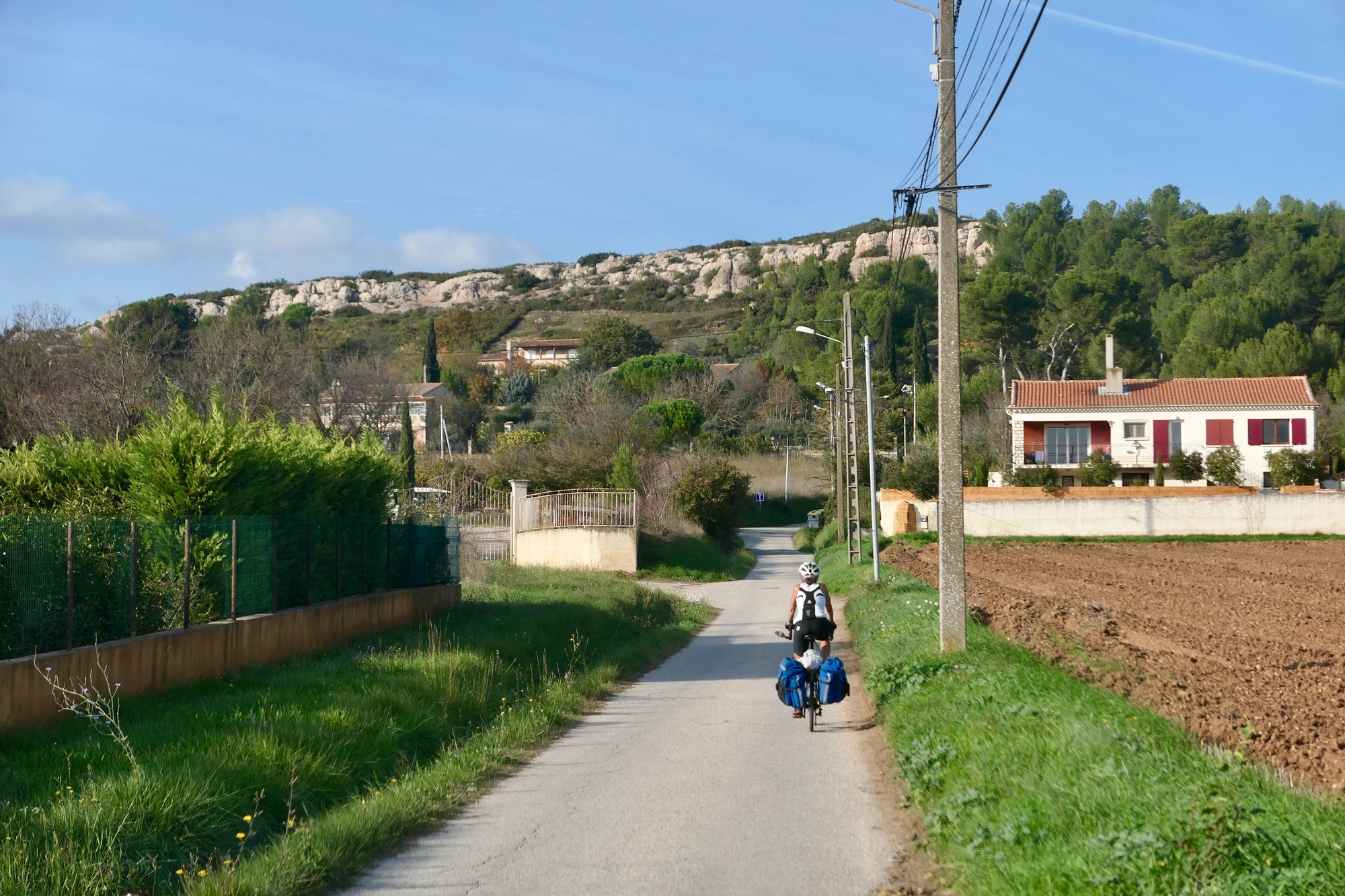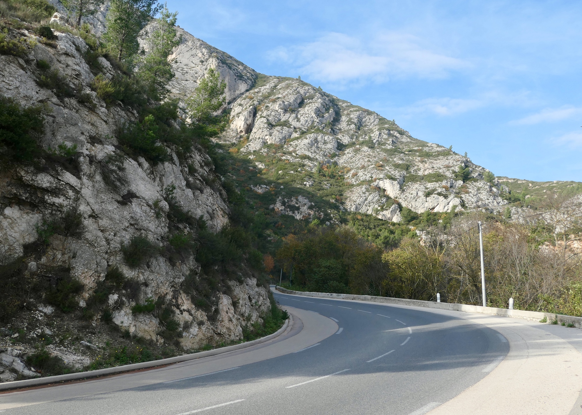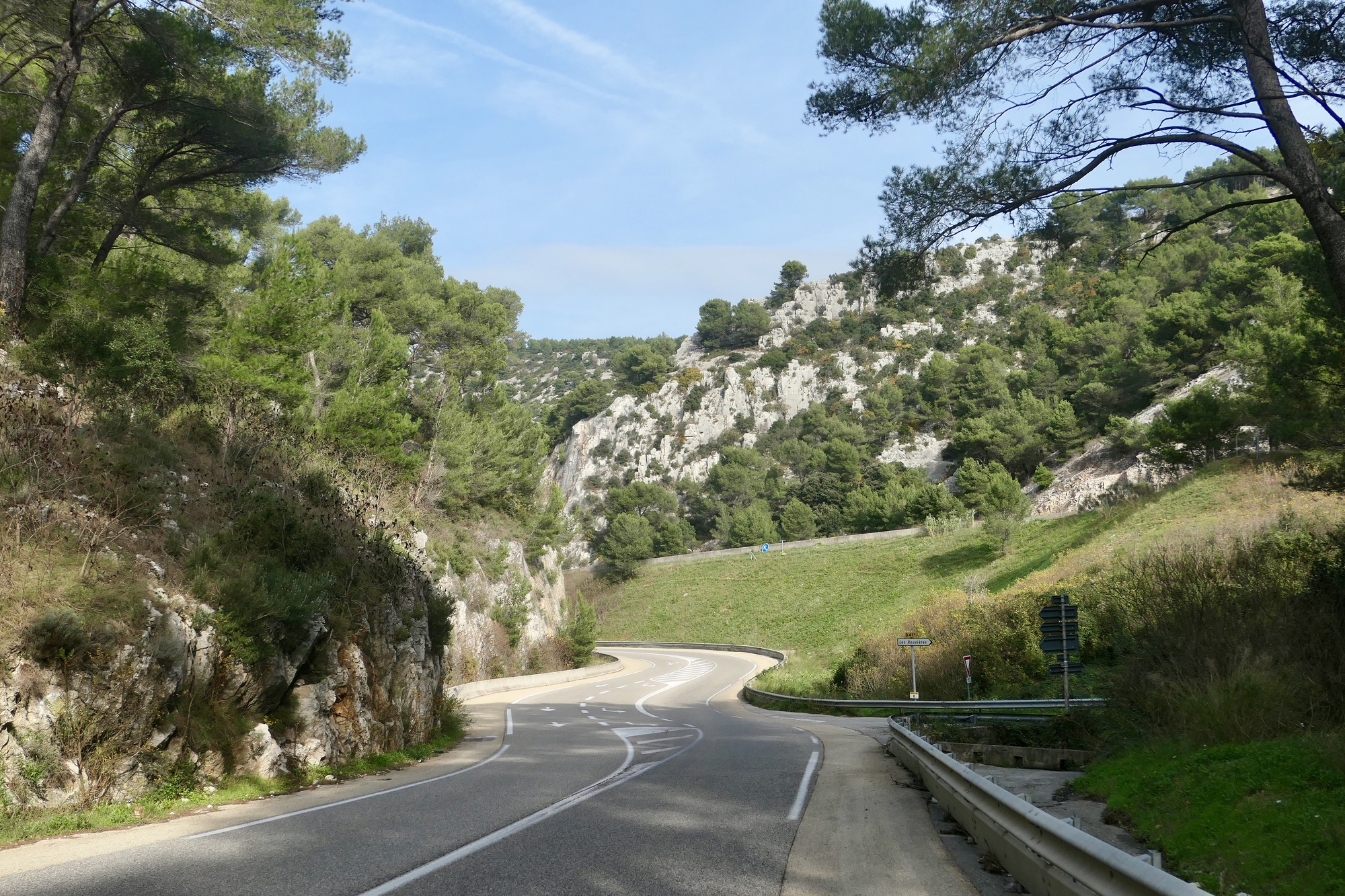 It was a 30% plunge getting into Cassis from the high route to the east, but fortunately we didn’t leave town the way we arrived. The main route climbs more gradually up a gap to the north for a few miles, before tying into the main east-west route. This is the way if you’re going west to Marseilles, or east to Le Ciotat or Toulon on the fast, safe, boring route.