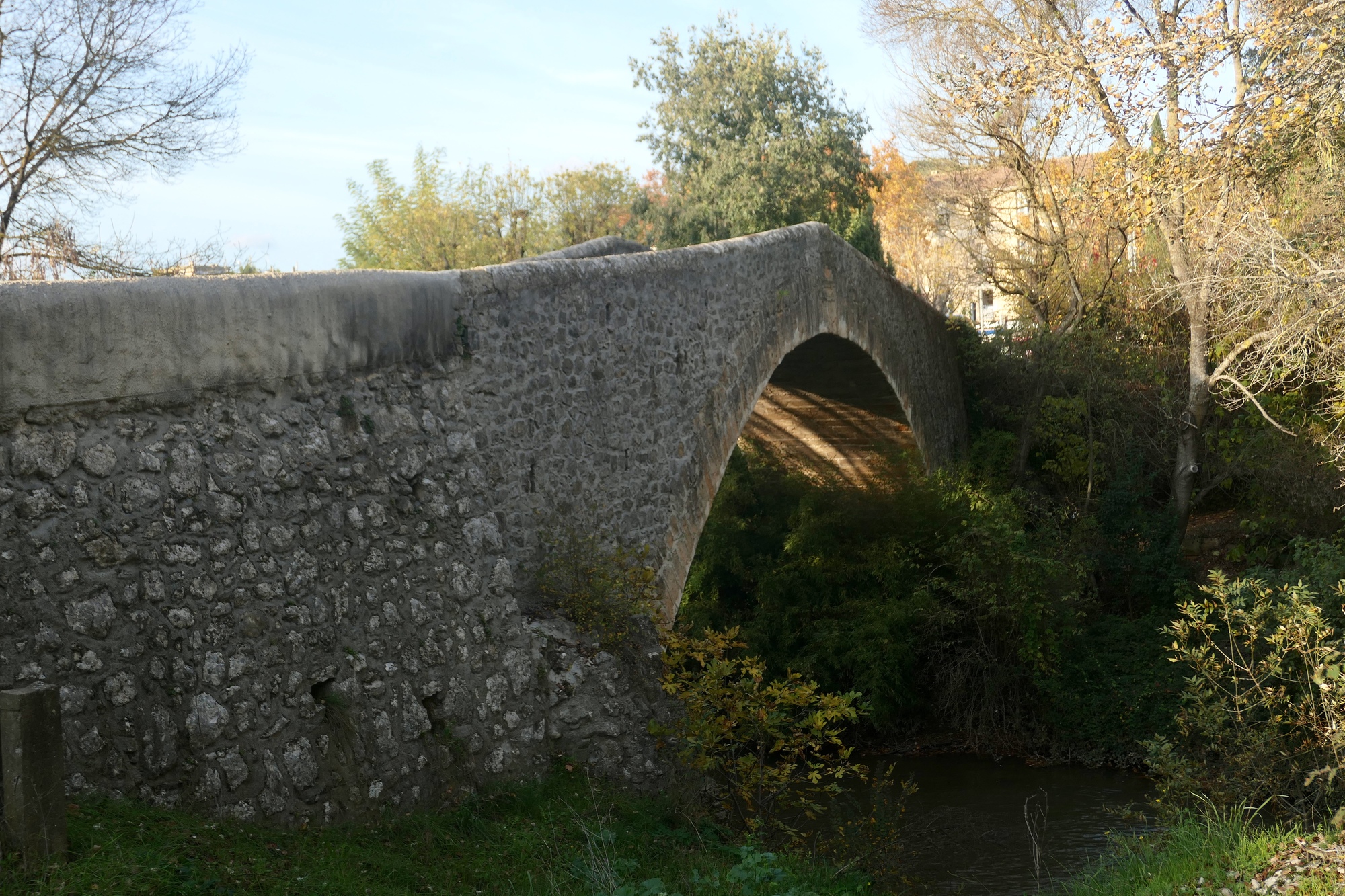 We entered Aix by crossing the Arc River at a narrow crossing south of the city. This is the Trois Sautets (three hops) Bridge, because before it was built it took three hops across the narrow river to cross it here.