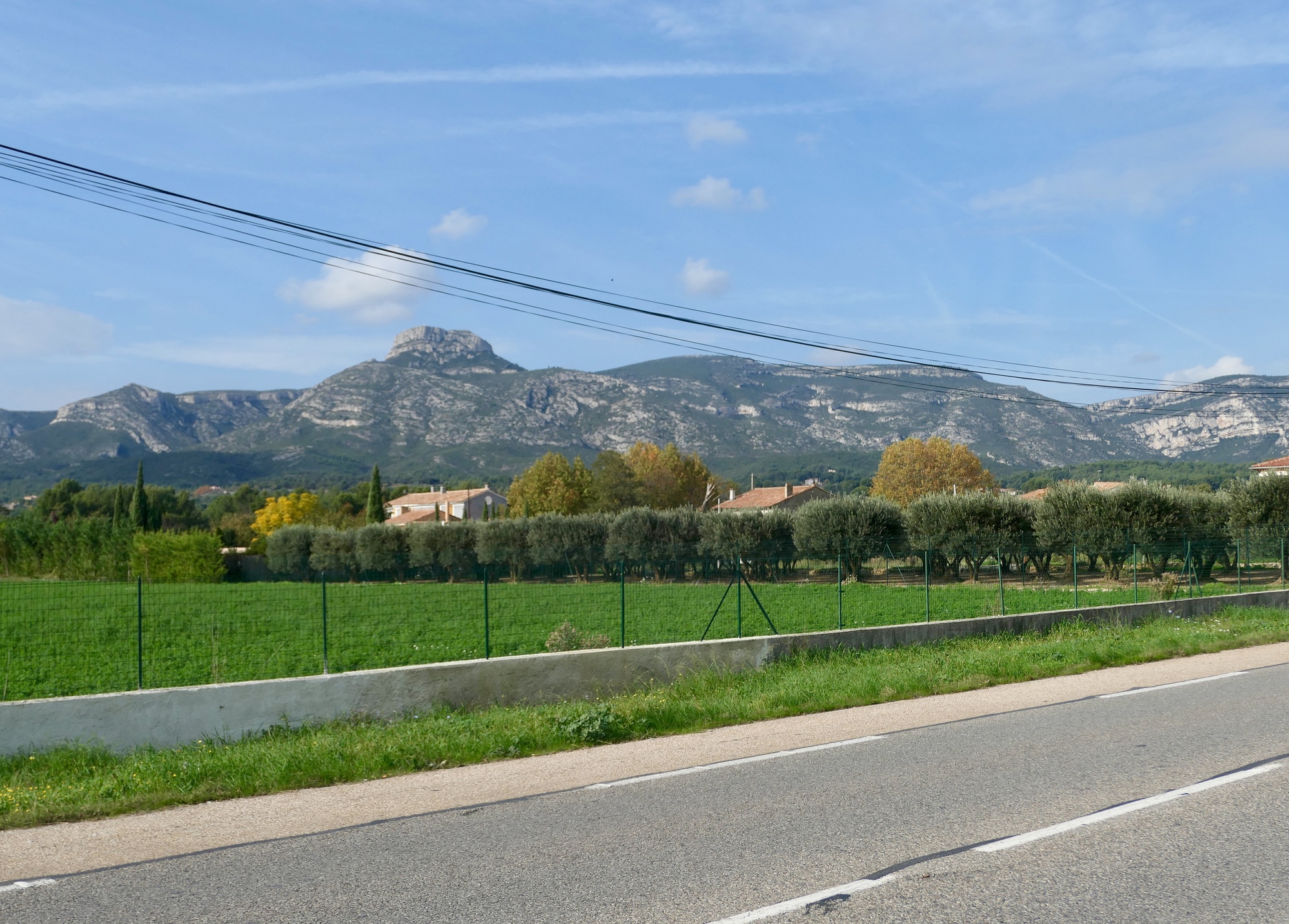 This is Mont Sainte-Victoire, the isolated ridge just east of Aix and the subject of several Cezanne paintings. We plan on biking a circuit of it tomorrow.