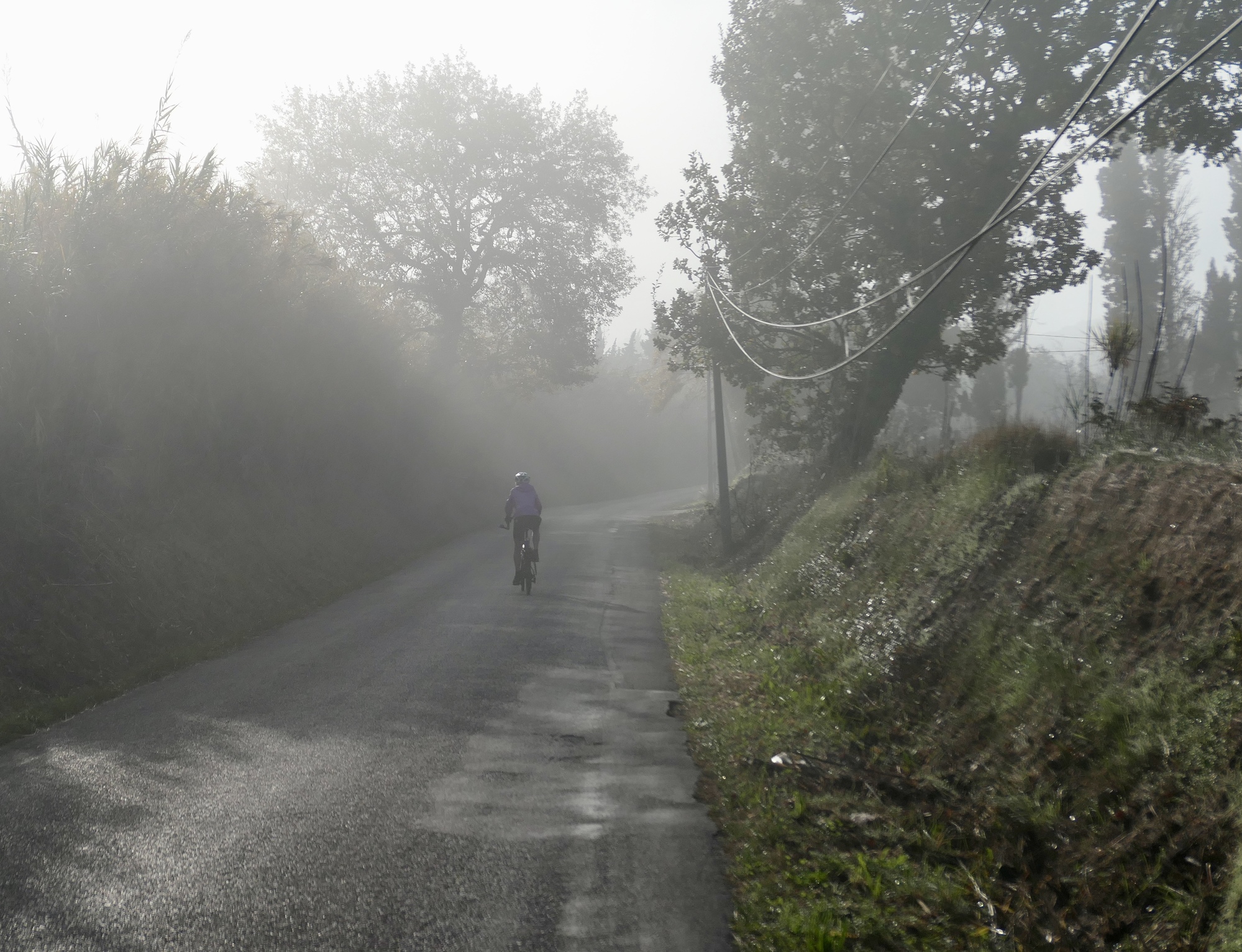 We haven’t seen conditions like this since we left Turin. It’s supposed to be fair and 65 today, but at the moment it’s damp, foggy and 48. I was sorry I hadn’t brought my warm gloves today.
