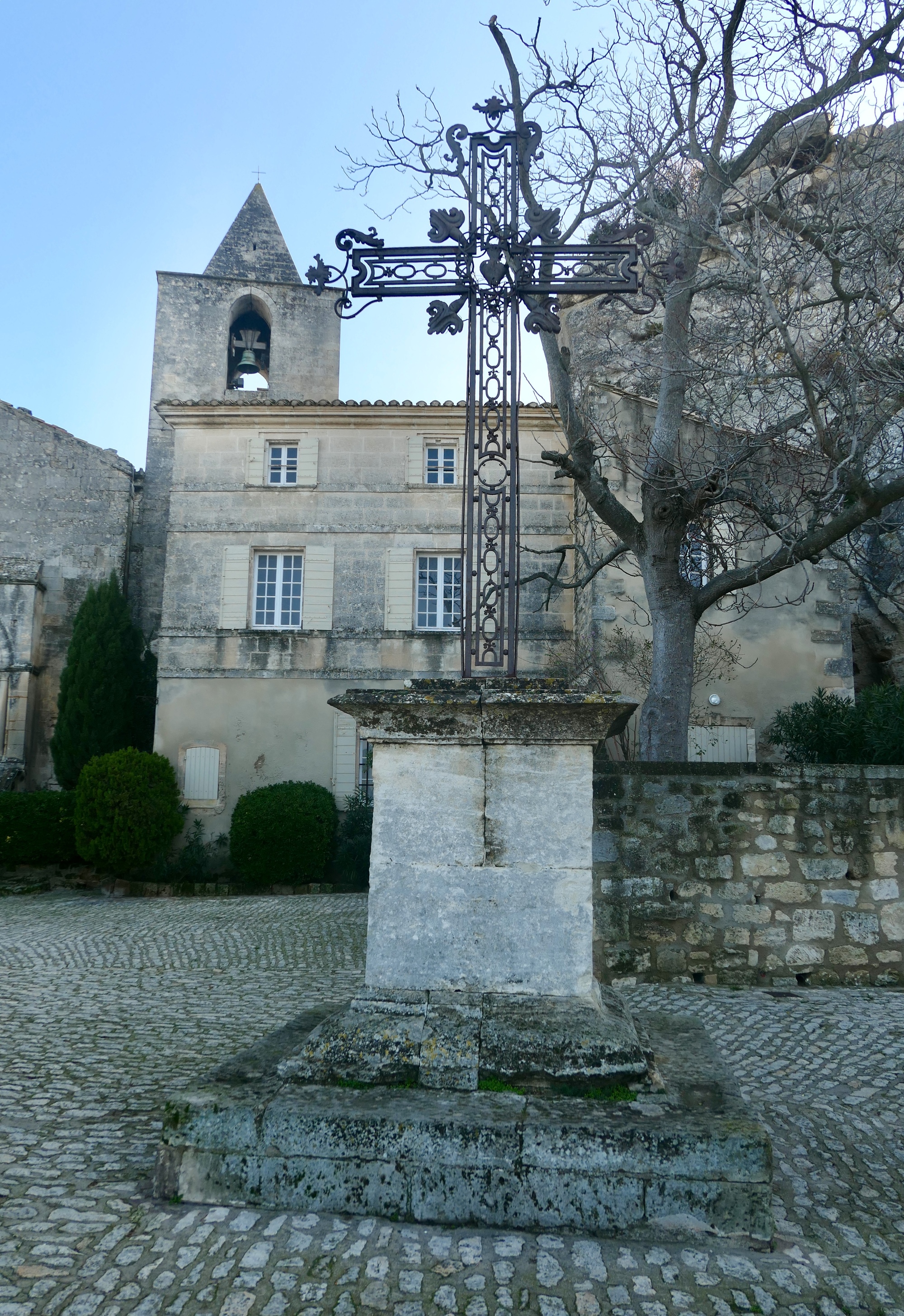 Les Baux, a ridgetop village whose origins go back almost six thousand years, is a premier tourist destination that sees over 1.5 million visitors per year. Signs of this are abundant, and we start passing paid parking spots along the road well before reaching the site. At the entrance to the village is a large parking area that today is virtually empty. Unless you like mingling with masses, this is a great time to visit.