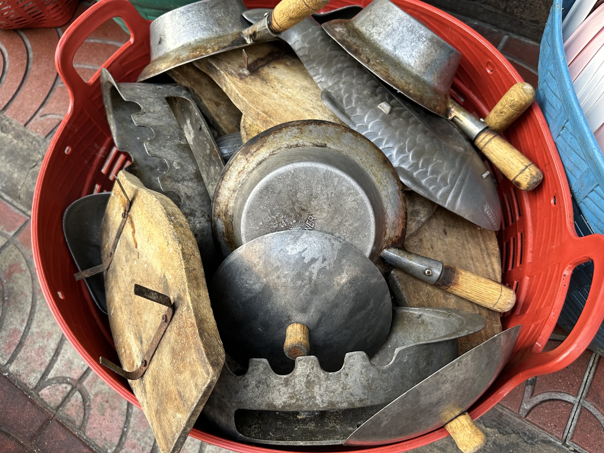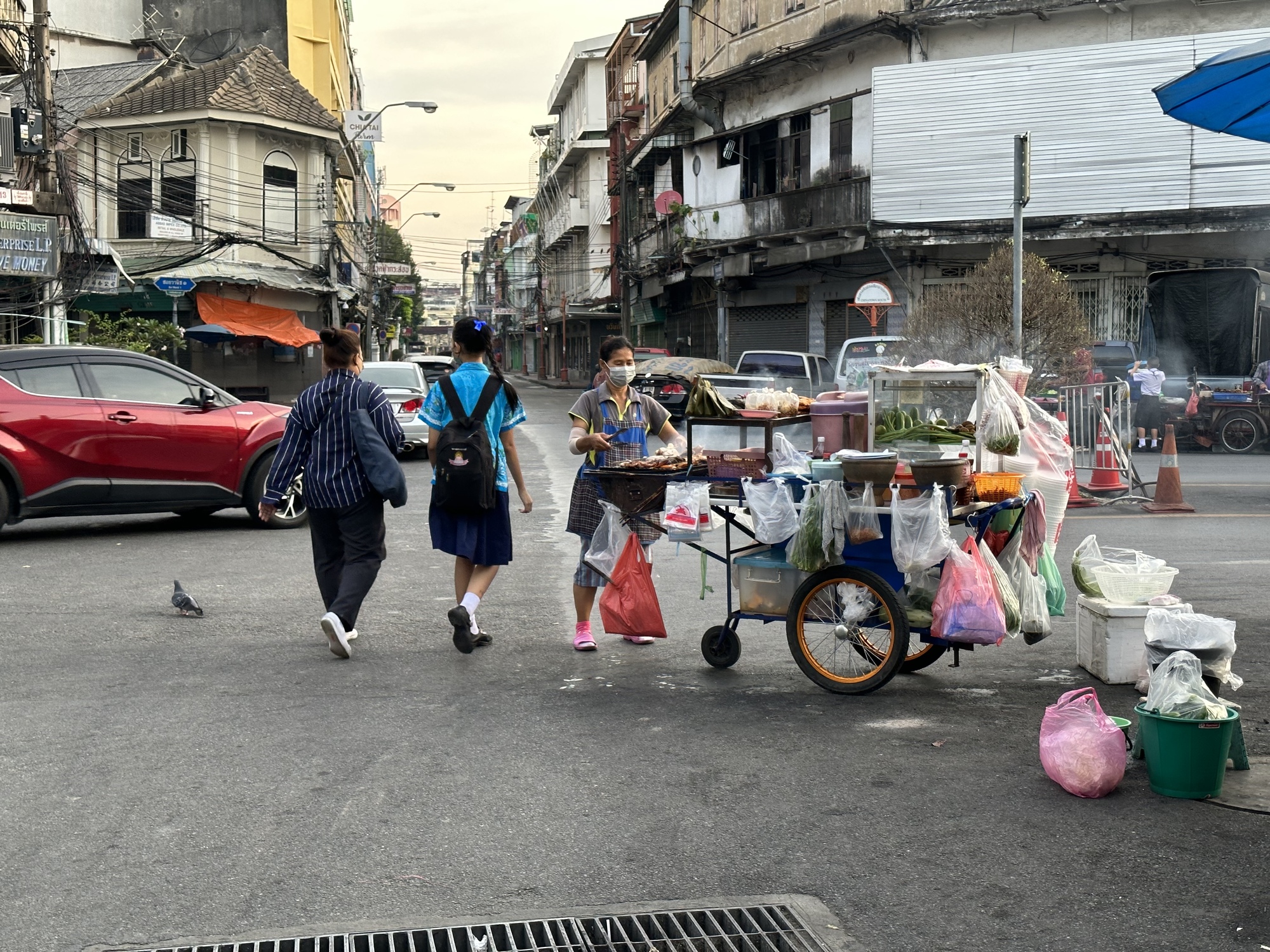 I'm very much a visual person which, for me, walking the streets of Bangkok is as if I'm inside a kaleidoscope. With each step, each turn, I'm presented with a changing pattern, sequence or combination of colors, textures, angles of objects and even concepts that my visual brain devours as an addict might. I'm fortunate Andrea has for months studied the streets and alleyways near our hotel using Google street view as well as watching Jwinthai's videos on YouTube. Without Andrea leading, I would have gotten impossibly lost, my normal good sense of direction taking a back seat to visuals.