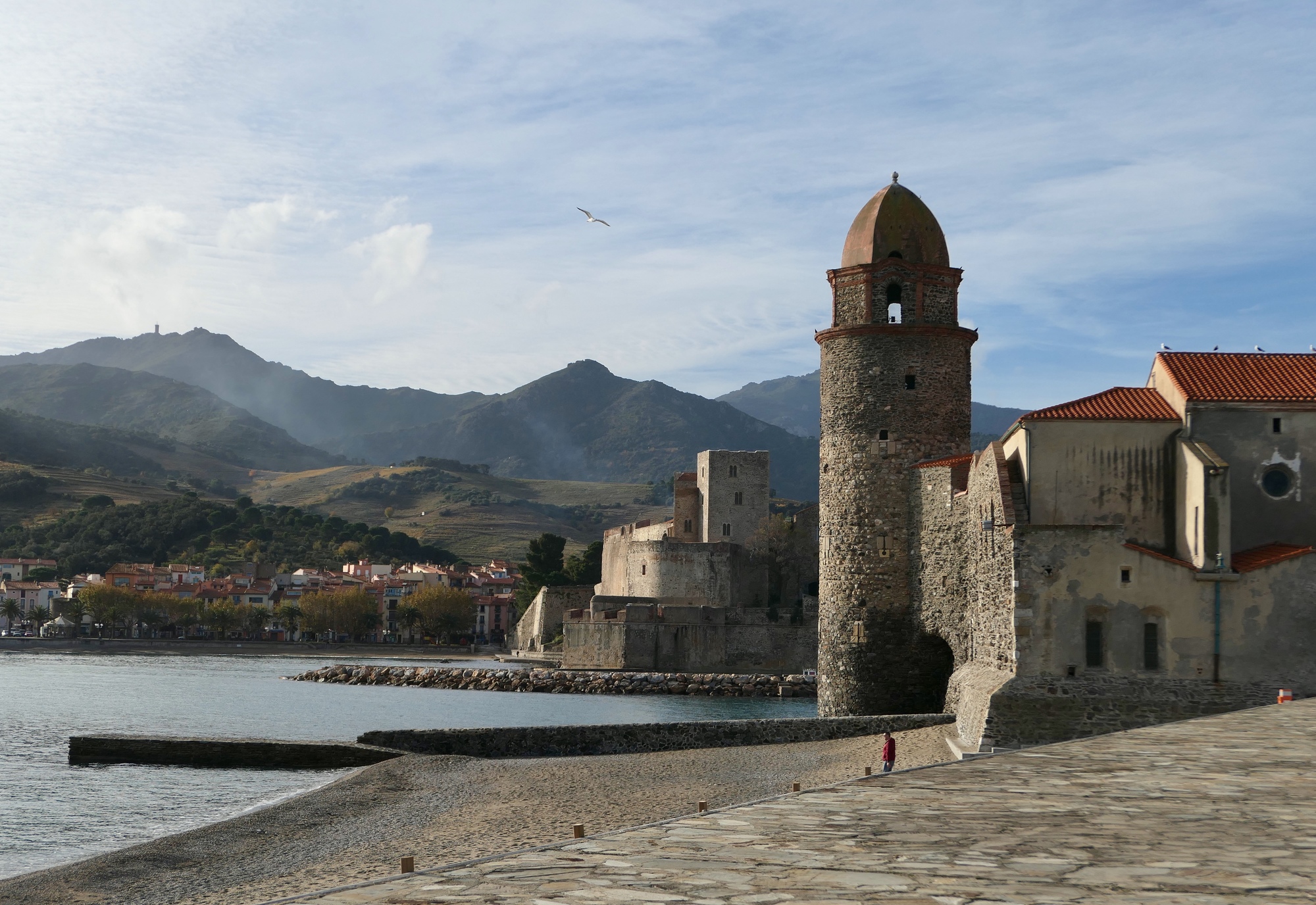 Three cormorants, and Collioure’s iconic lighthouse/bell tower. Originally erected in the 1500’s as a lighthouse, it was later converted to the bell tower of the adjacent church.