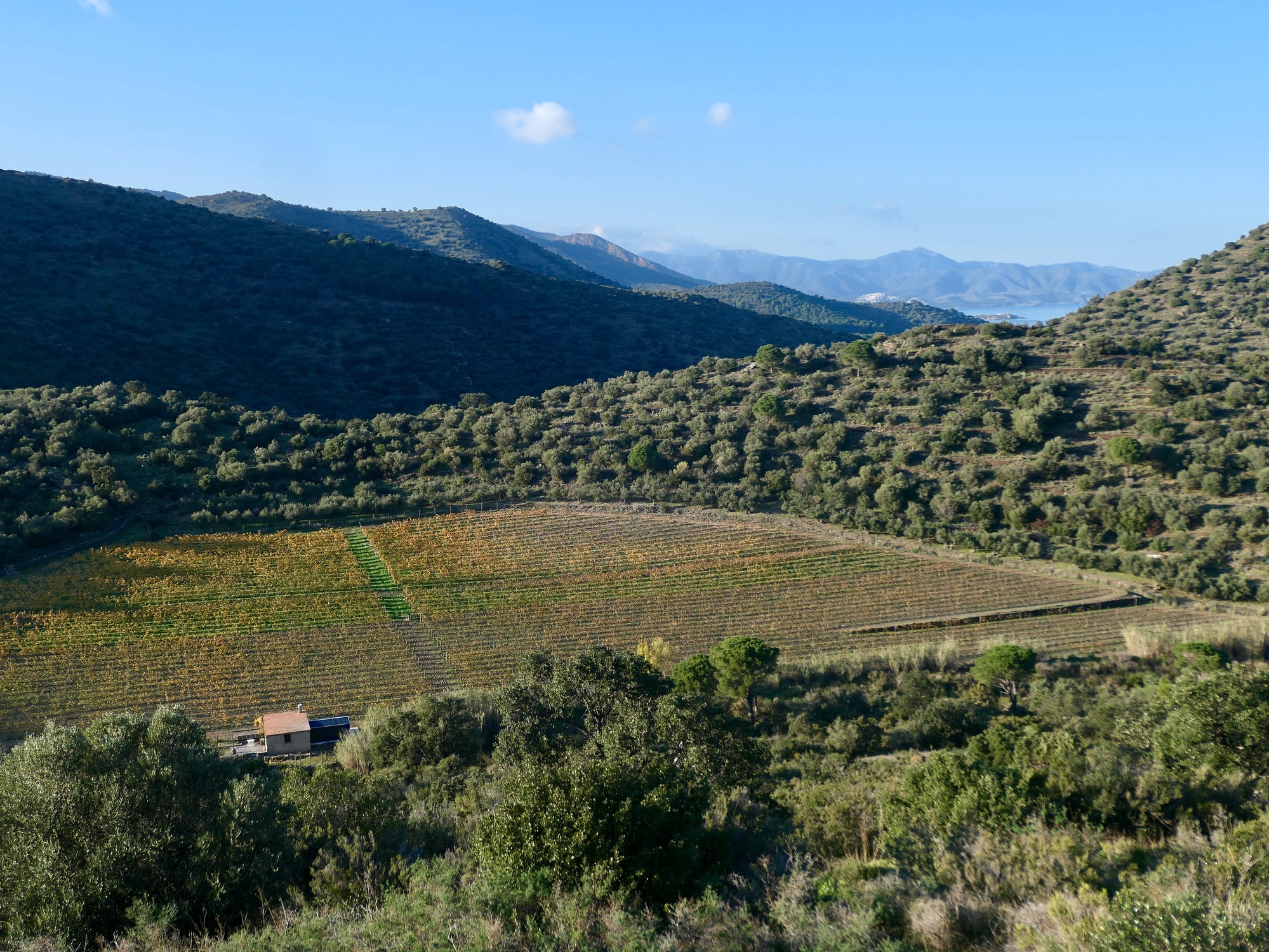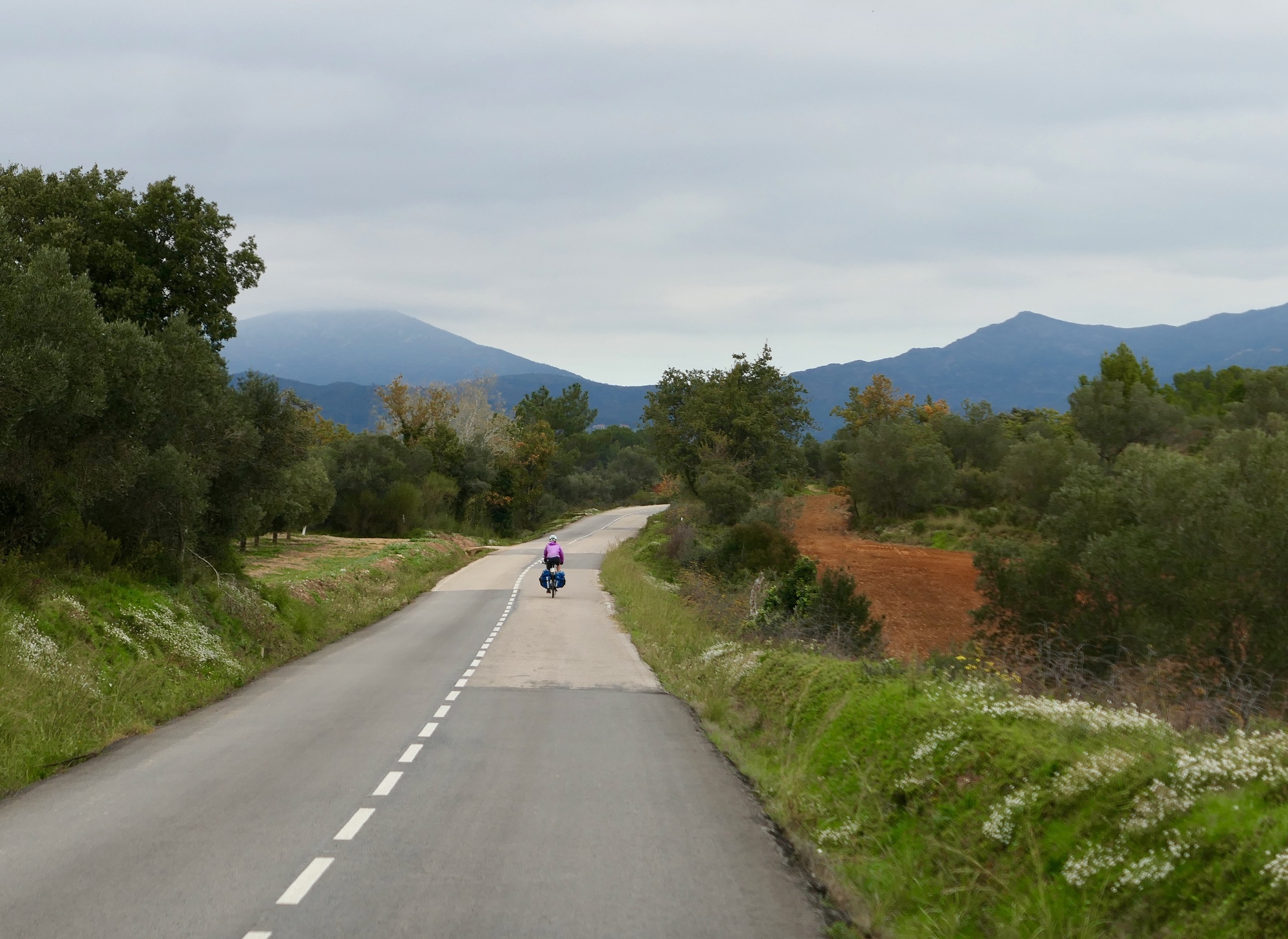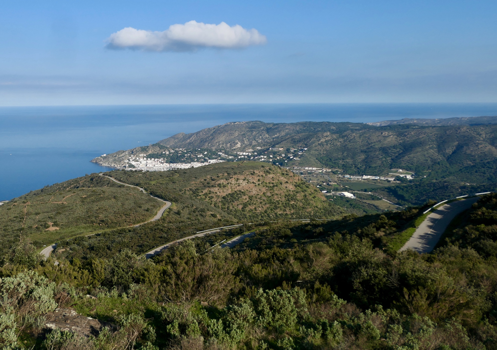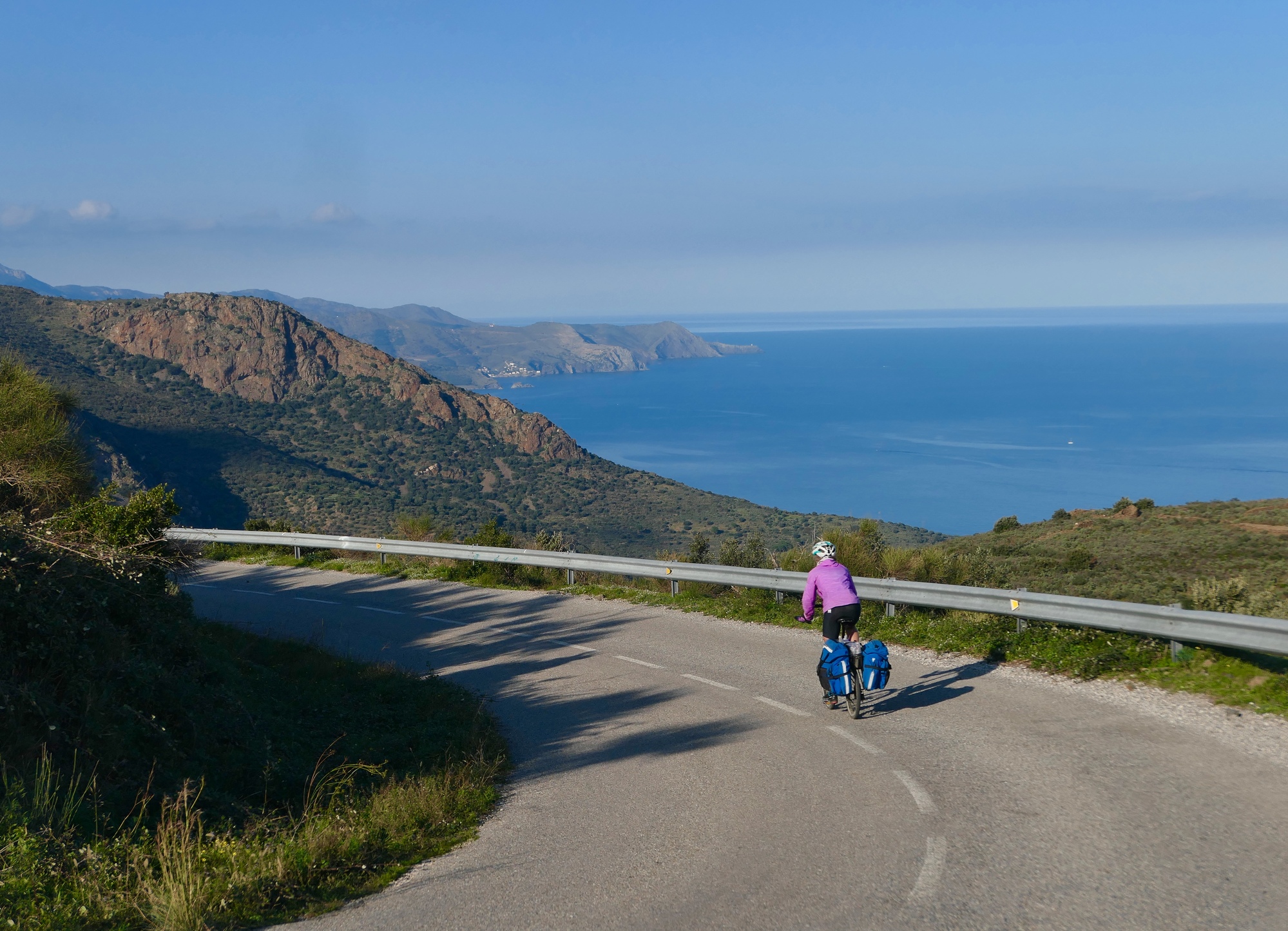 The ride today was a bit on the short side, but hillier than we’ve seen for awhile. After about twelve flattish miles on the Emporda Plain, we reach the edge of hilly, rugged Cap Creus and start climbing into the wildly beautiful Serra de Rodes. The five mile, 1,500’ climb to the summit isn’t bad, but it’s the longest sustained climb we’ve done in over a week. It exposes how badly my gears need work, and I labor up slowly, with only a few climbing gears functional - fortunately, they include the lowest one, so there’s never a question of being able to make the climb; it’s just slow.